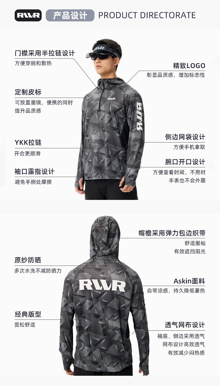 Zailu outdoor ice silk sun protection clothing men's summer breathable fishing clothing Ningye gray S S