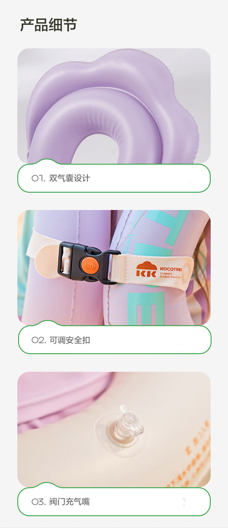 Zailu children's swimming ring double air bag armpit swimming ring children's swimming ring 610 years old swimming tanzanite purple