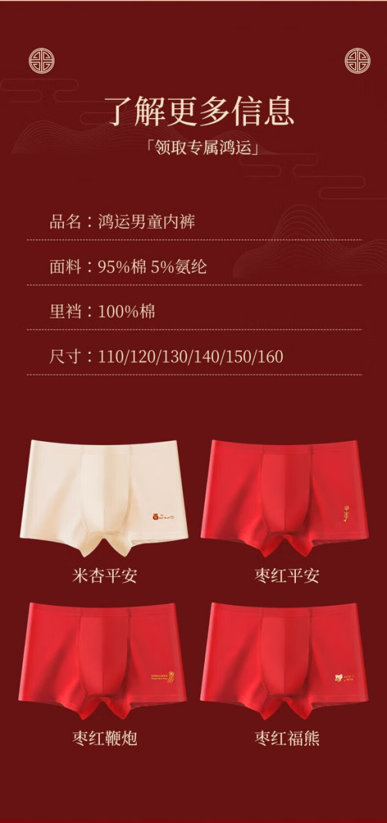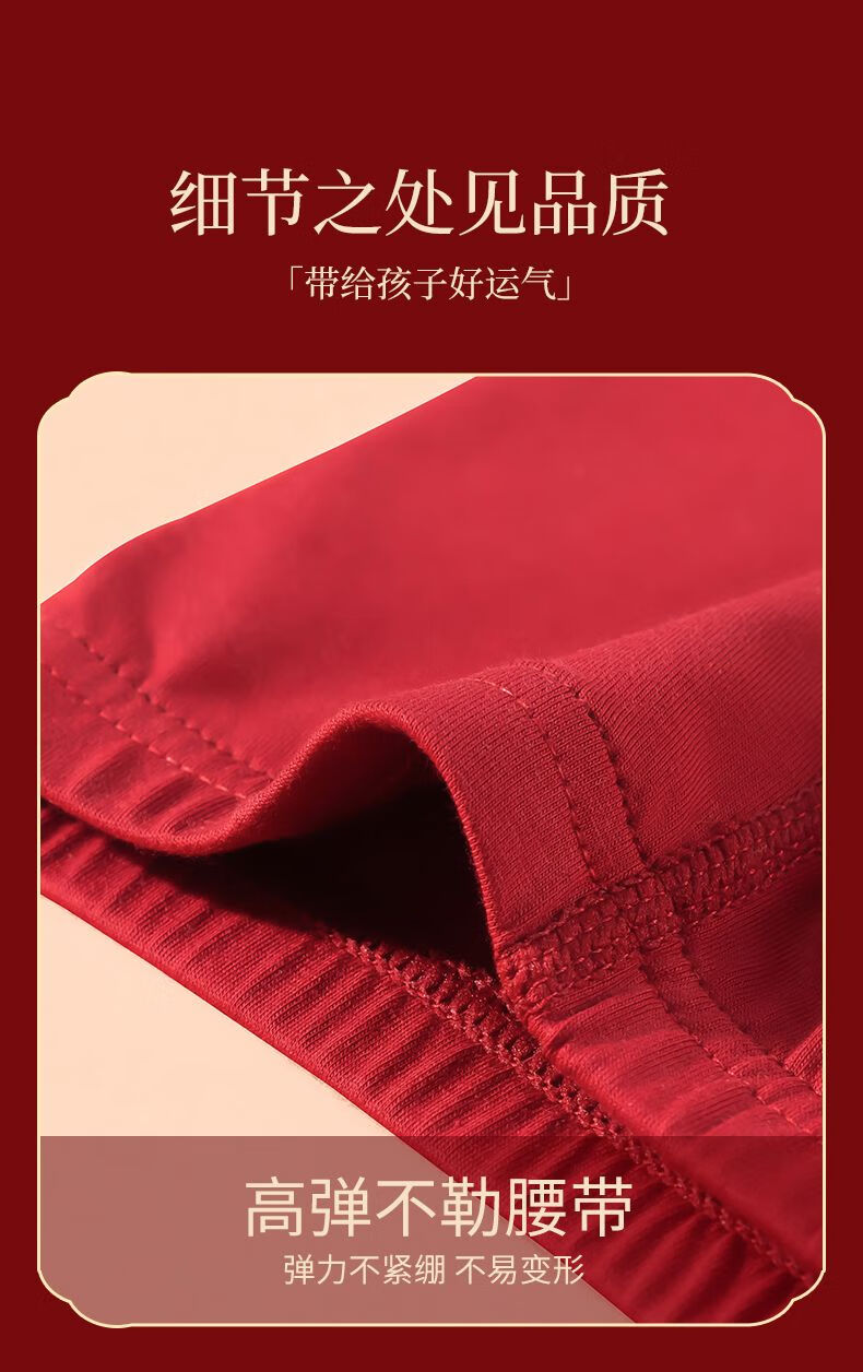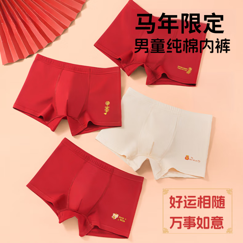 Modal zodiac year of the horse, boy's red underwear, boy's pure cotton crotch development period, big children's underwear, children's boxer briefs, four pairs of A group - zodiac year big red pants 130 XL size recommended 45-54Jin Jin is equal to 0.5 kg