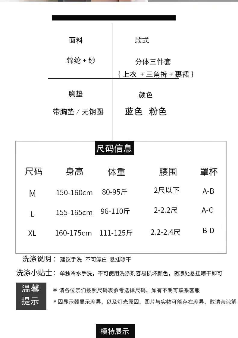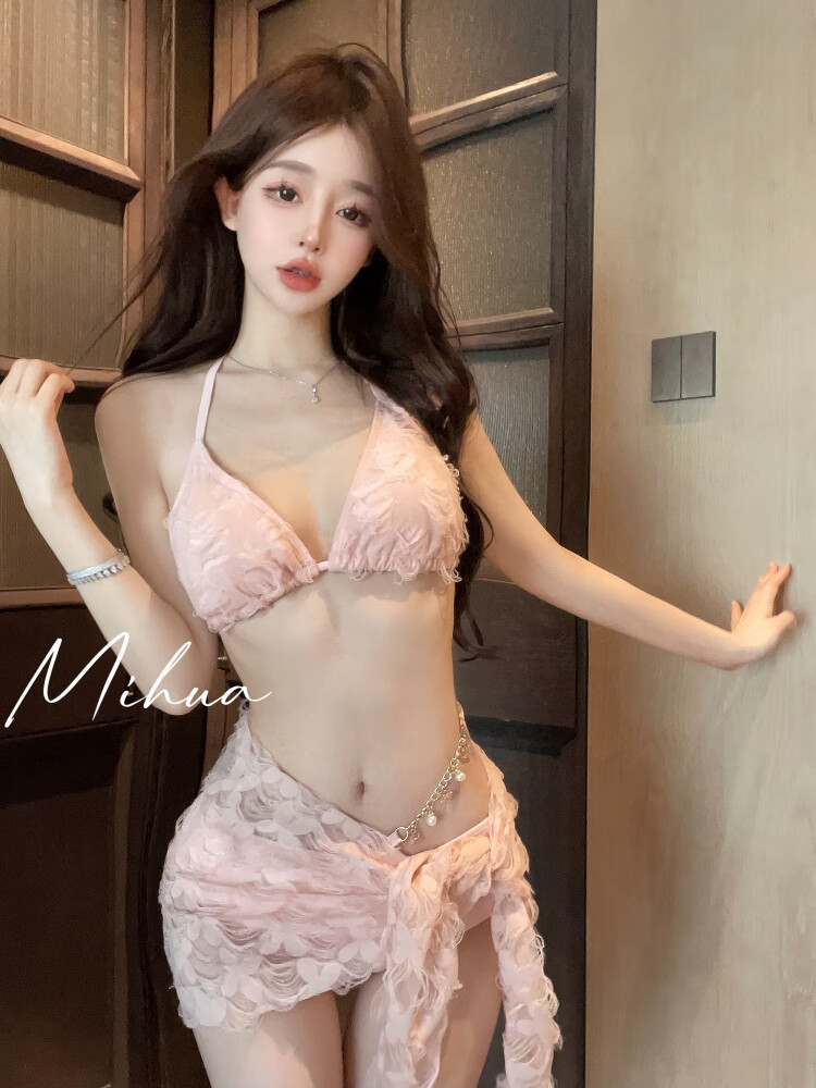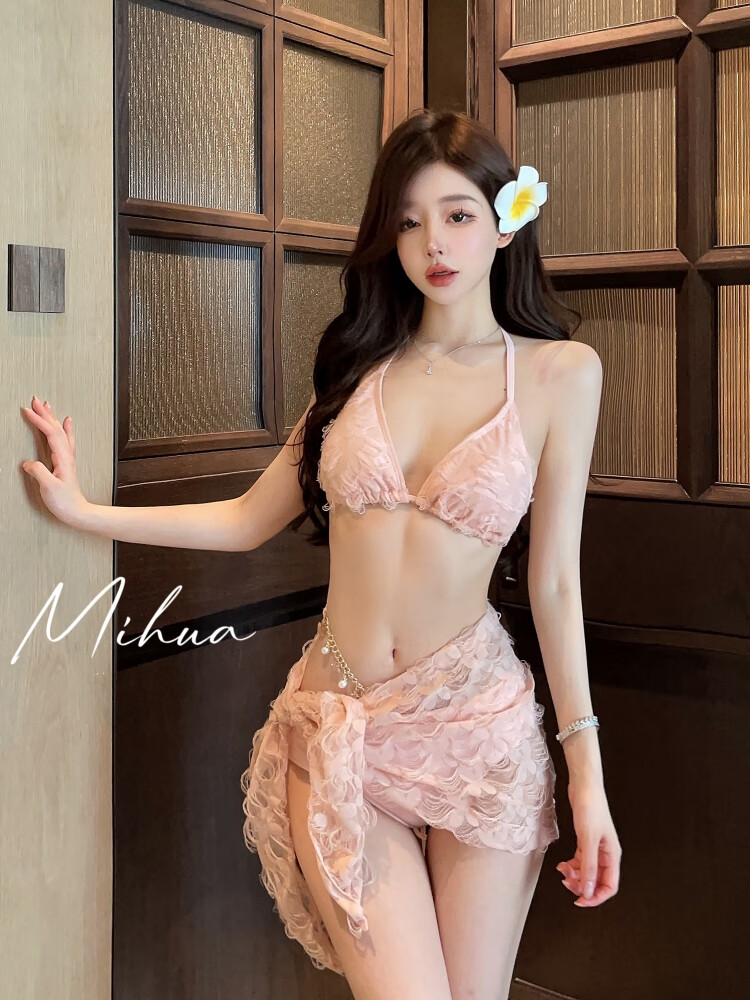 Ono Seven Days Beautiful Swimsuit Women's Bikini Three-piece Set 2025 Sexy Hot Girl Pure Desire Small Breasts Gathered for Seaside Vacation Hot Springs Flesh Pink L
