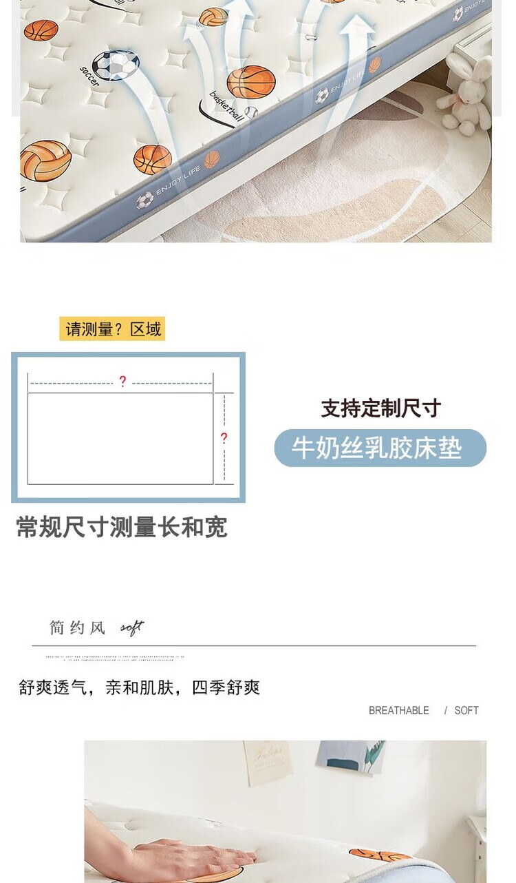 (Xinjiang) Customized children's mattress student dormitory thickened special cushion student single mattress dormitory three-dimensional skin-friendly model-6cm ball sports 80*180cm (customized will be shipped in 24 hours)