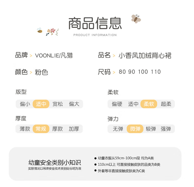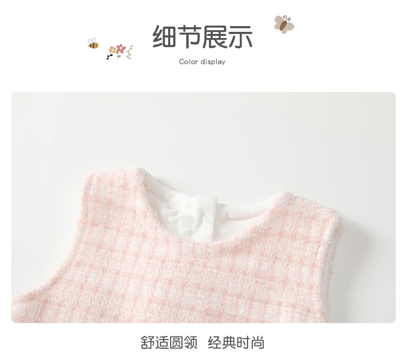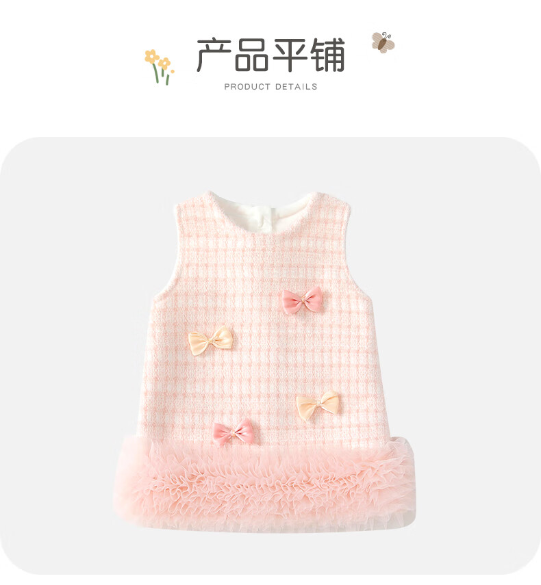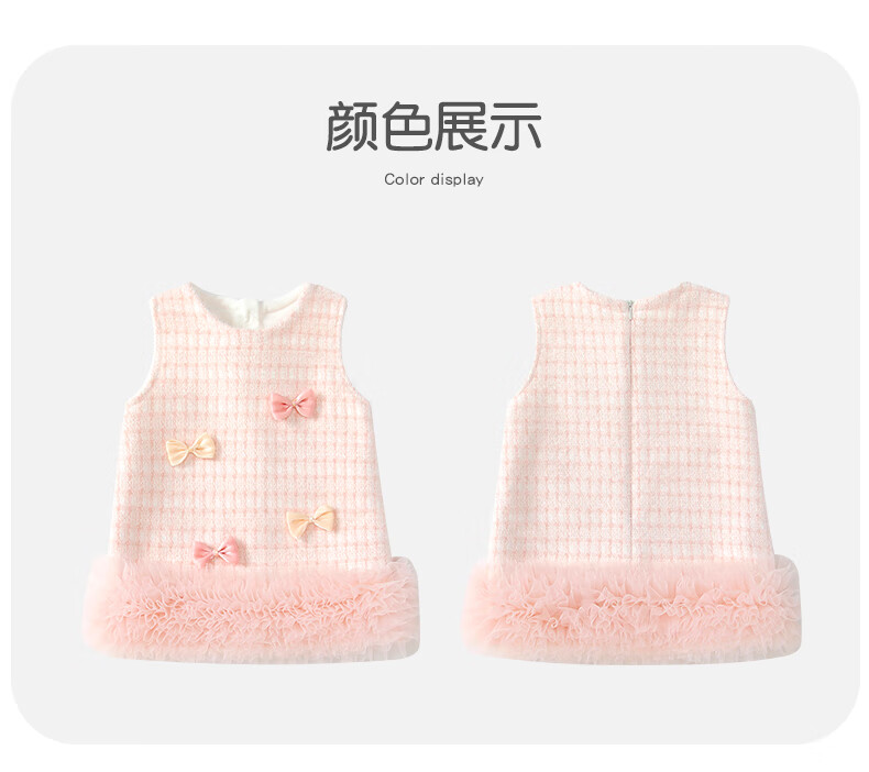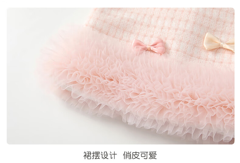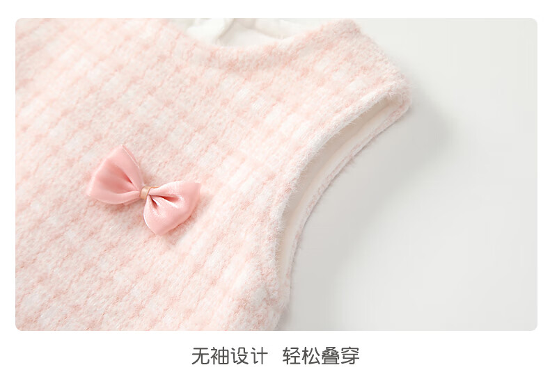 Fanlie VOONLIE girls' small fragrant dress winter style children's velvet princess vest dress one-year-old baby dress winter pink 80 cm