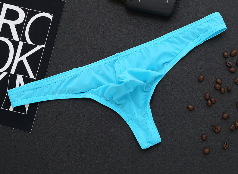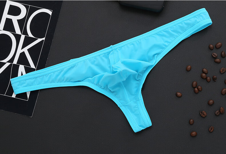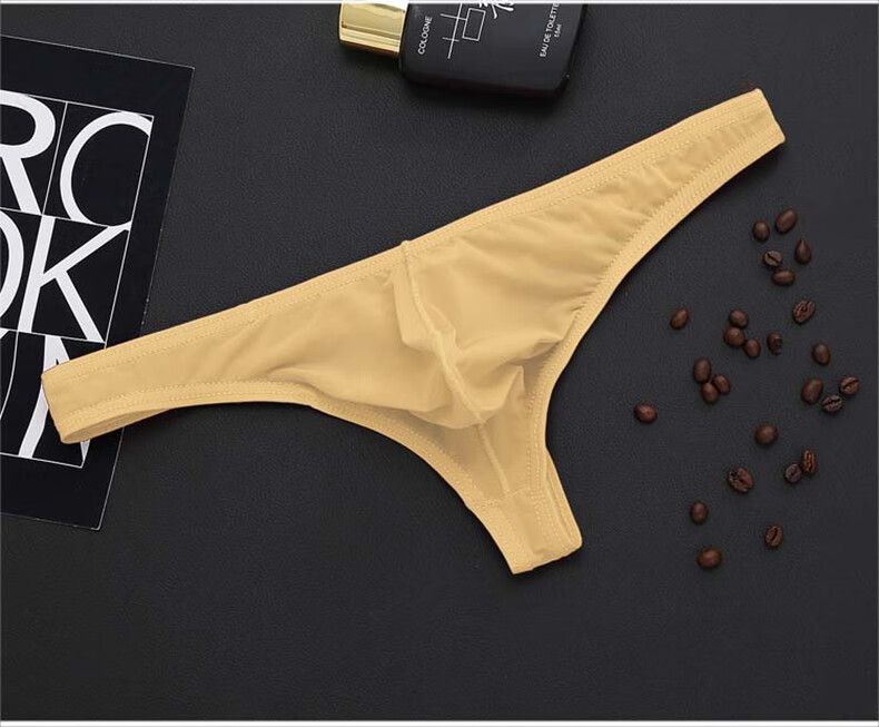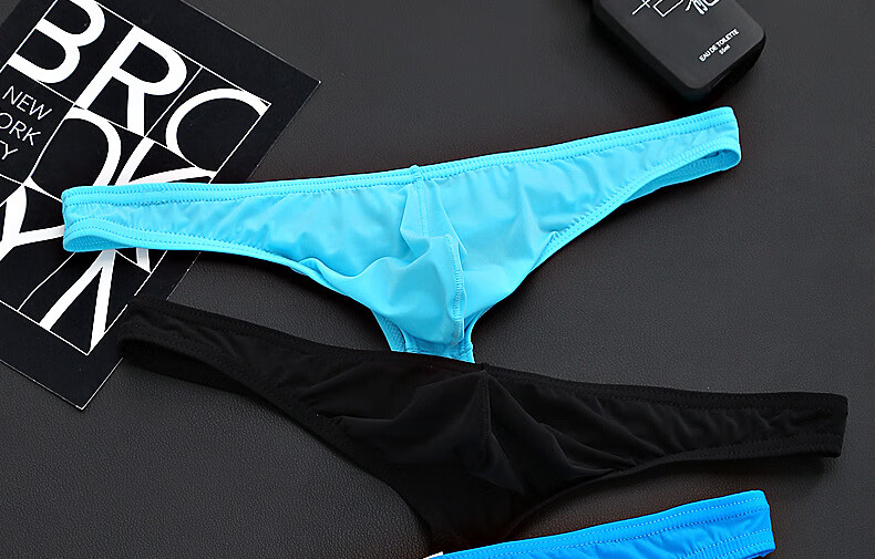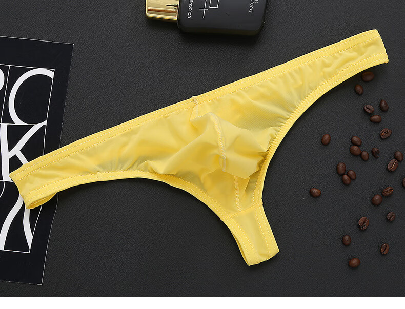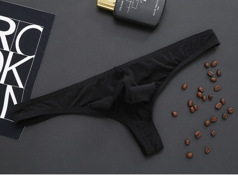 Iosn men's ice silk translucent thong thin sexy sexy underwear T bag breathable low-waist young men's pants black