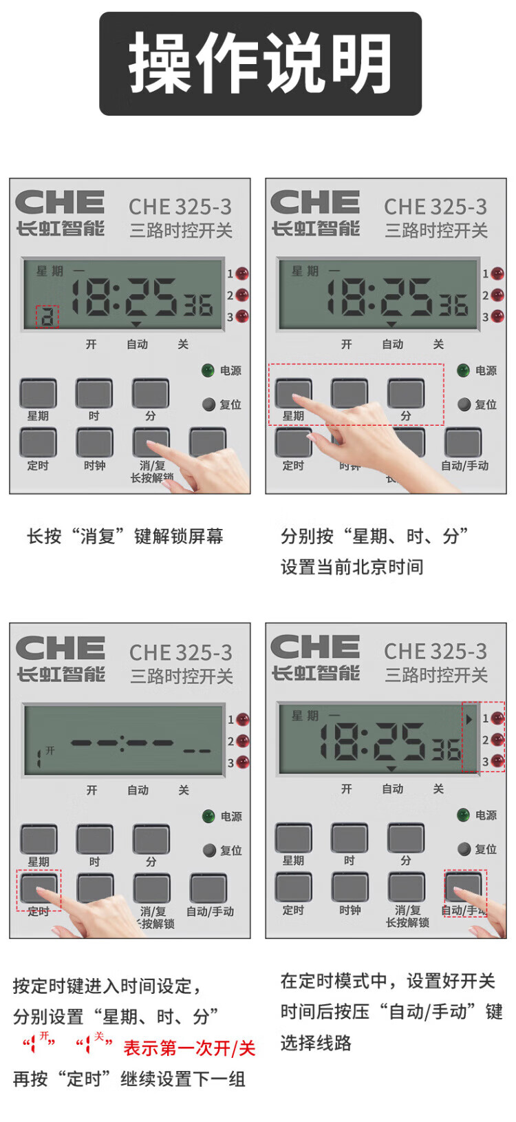 Shantou Lincun passive multi-channel output time control switch CHE325 time and space time three-way timing controller two intelligent timers 2-way time control switch 220V