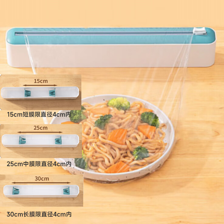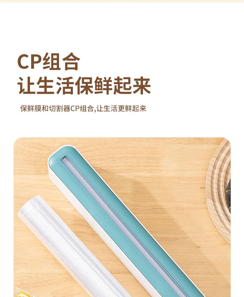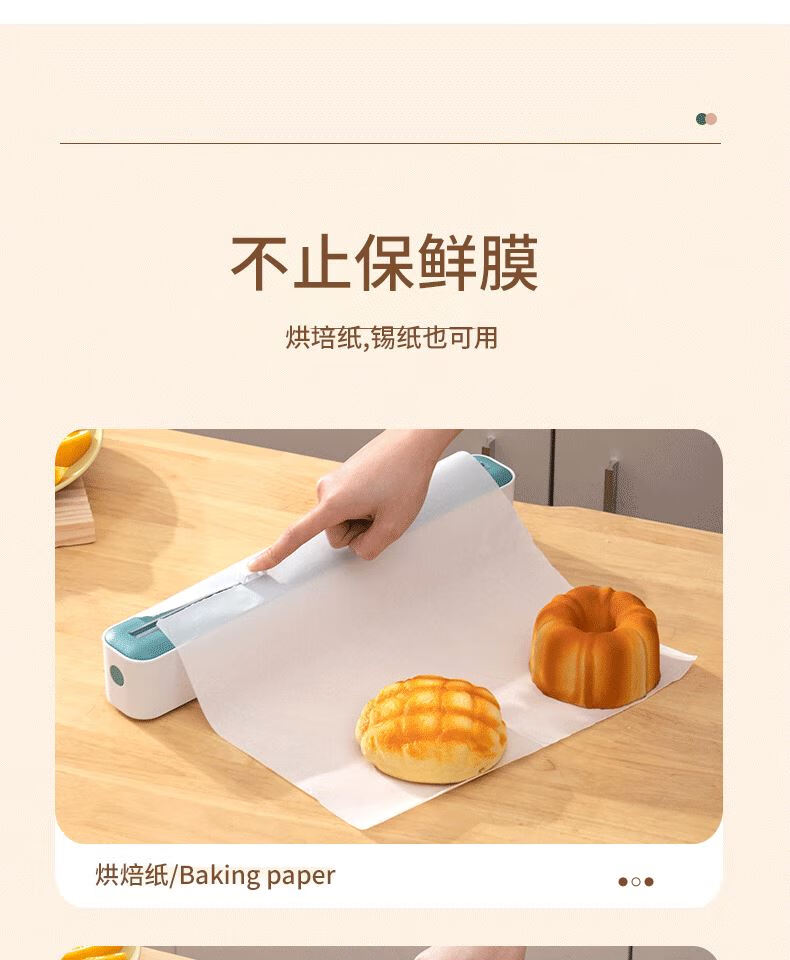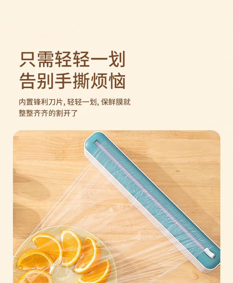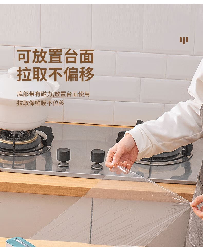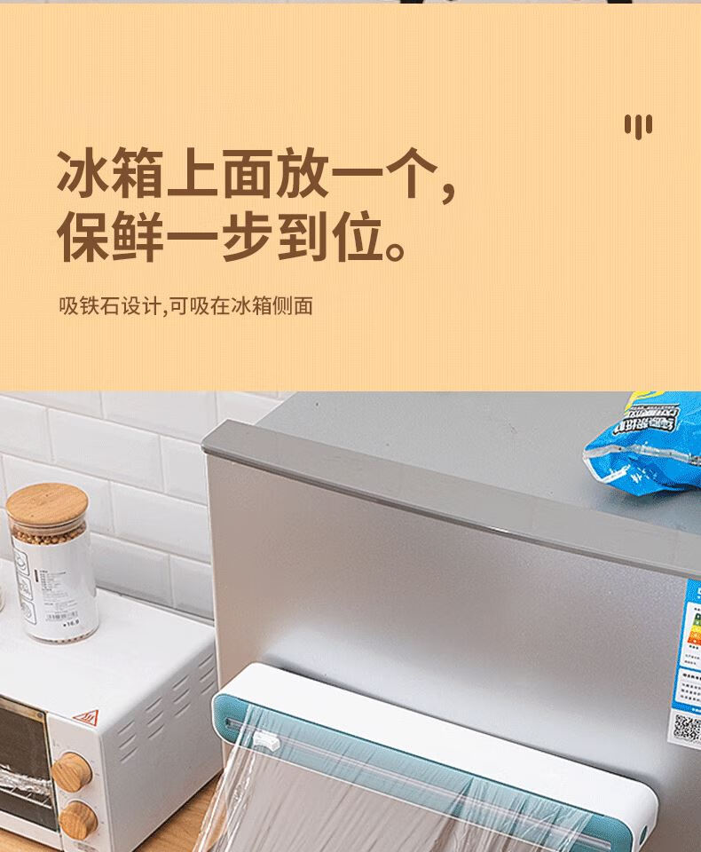 Shuke Yijia kitchen magnetic cling film cutter, household adjustable baking cling film storage and cutting box, universal magnetic suction type, free cling film*1, small milk dog - cream green, with magnetic suction 30cm