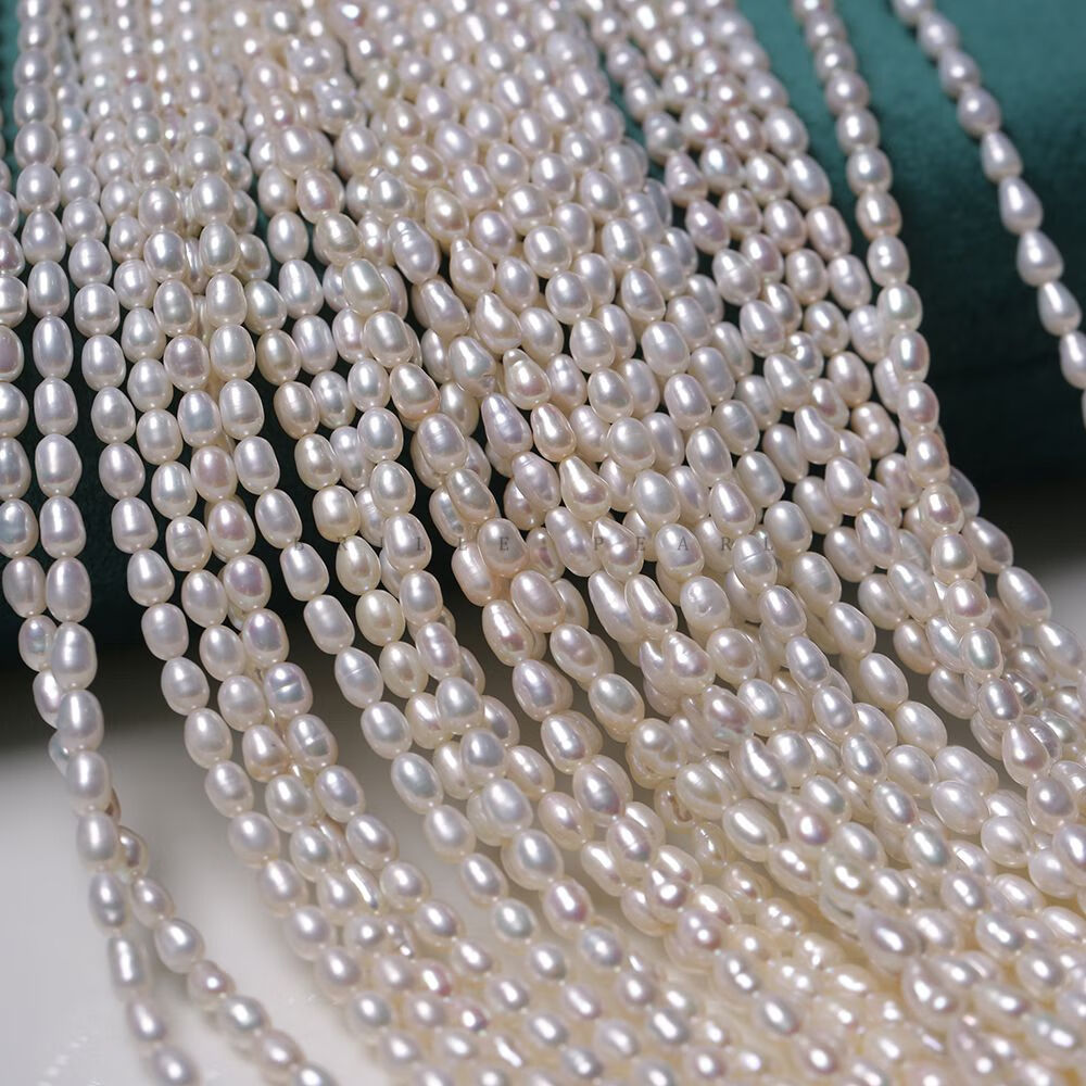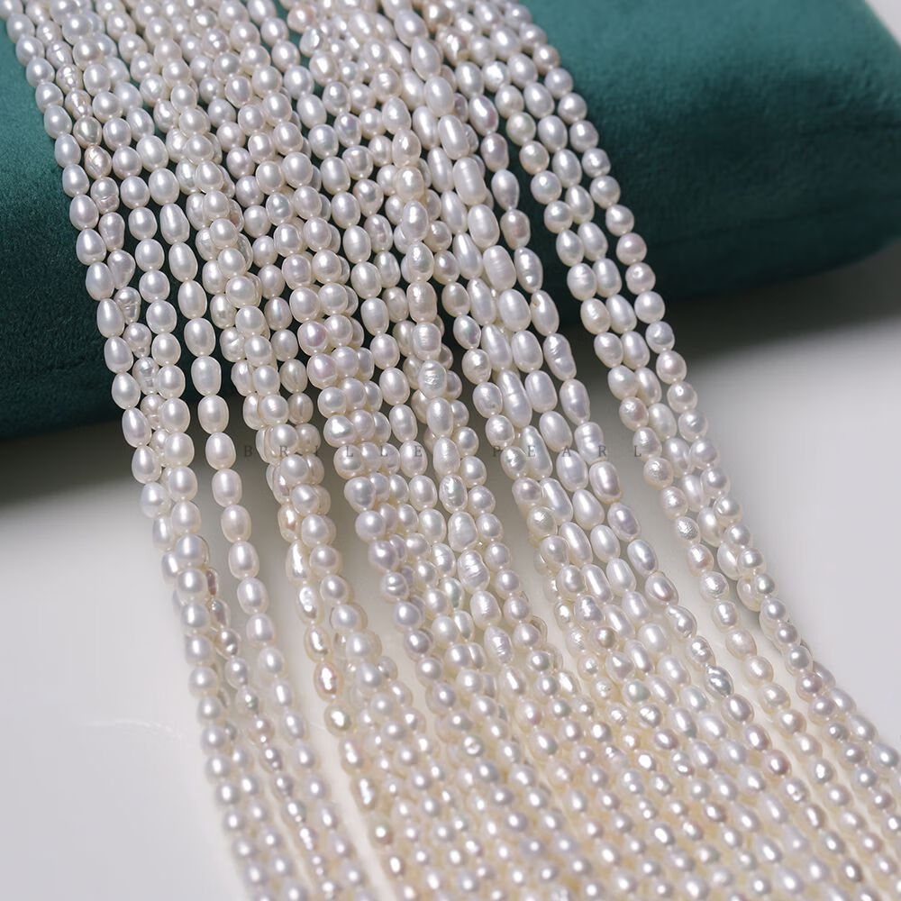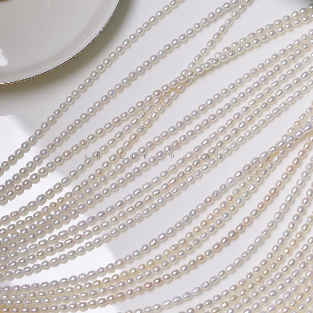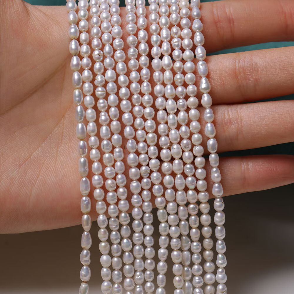Natural non-nuclear freshwater 3mm millet pearl chain baby chain semi-finished rice-shaped nearly round net chain 40cmSCR SCR23-3 points 5mm non-nuclear keshi long type 5A129r 3-3 points 5mm