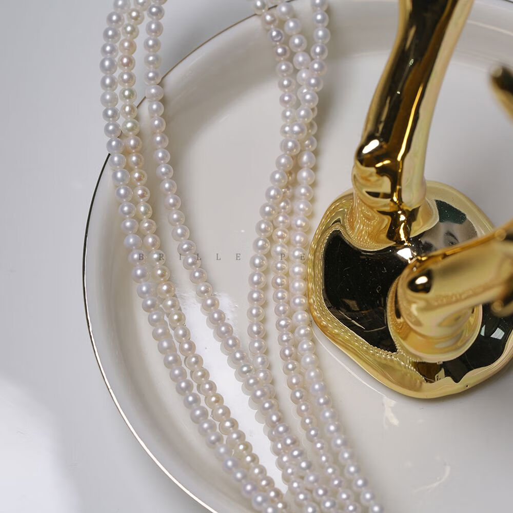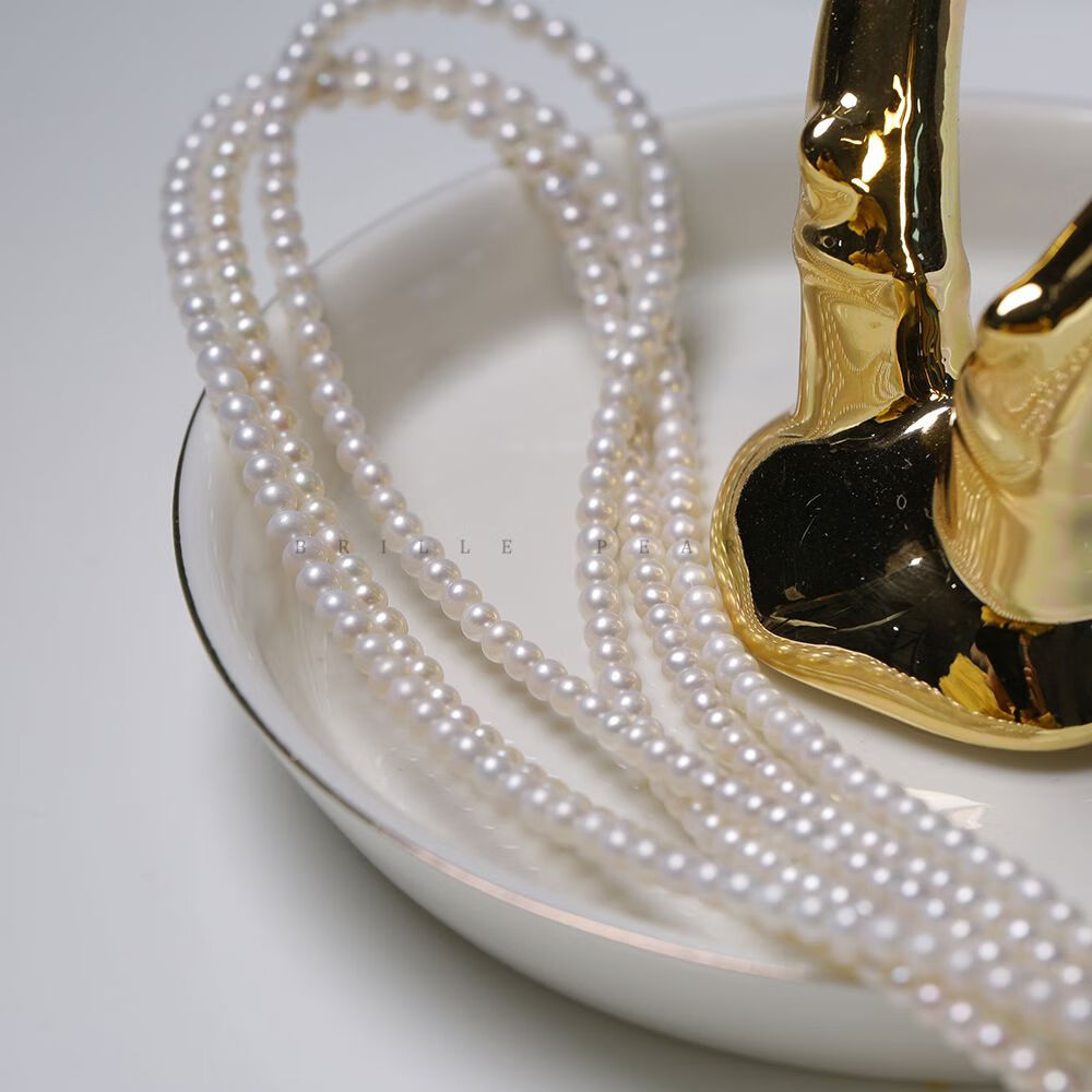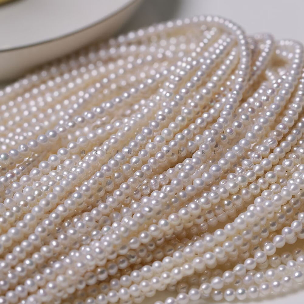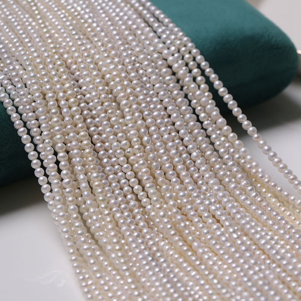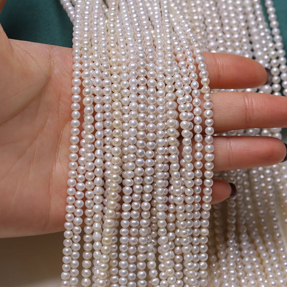 Natural non-nuclear freshwater 3mm millet pearl chain baby chain semi-finished rice-shaped nearly round net chain 40cmSCR SCR23-3 points 5mm non-nuclear keshi long type 5A129r 3-3 points 5mm