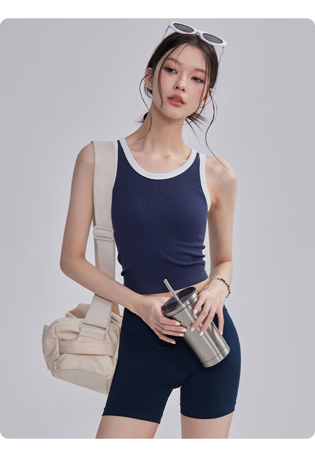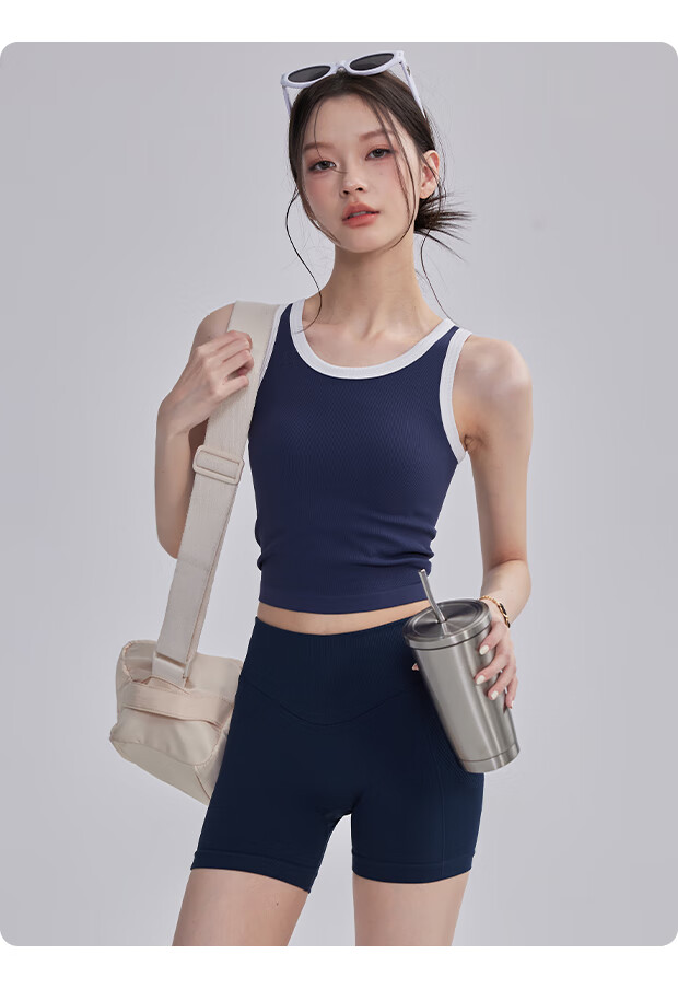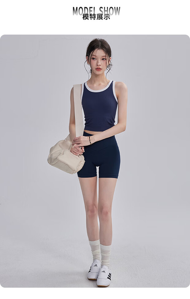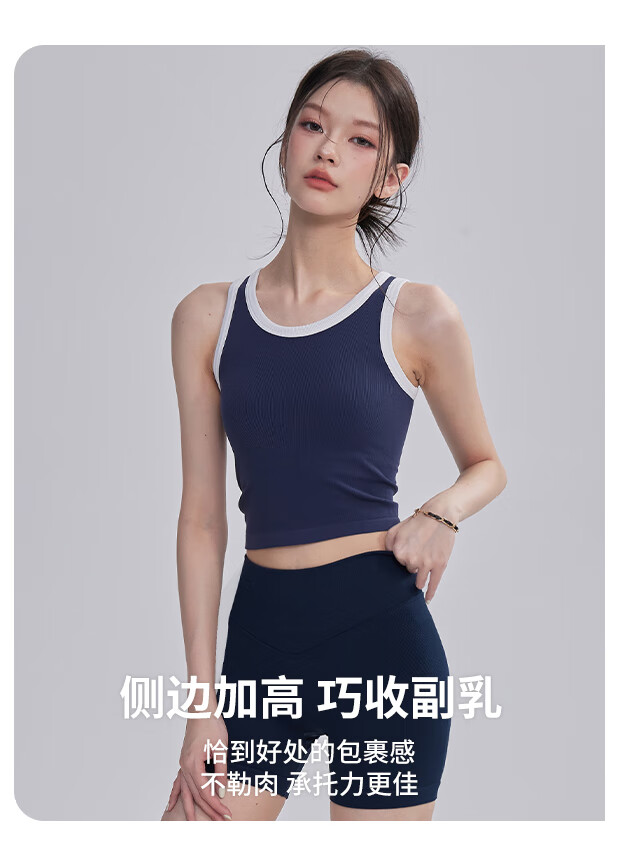 New fitness suit women's all-in-one sports vest Pilates training yoga clothing running and cycling clothing two-piece set latent pink vest S