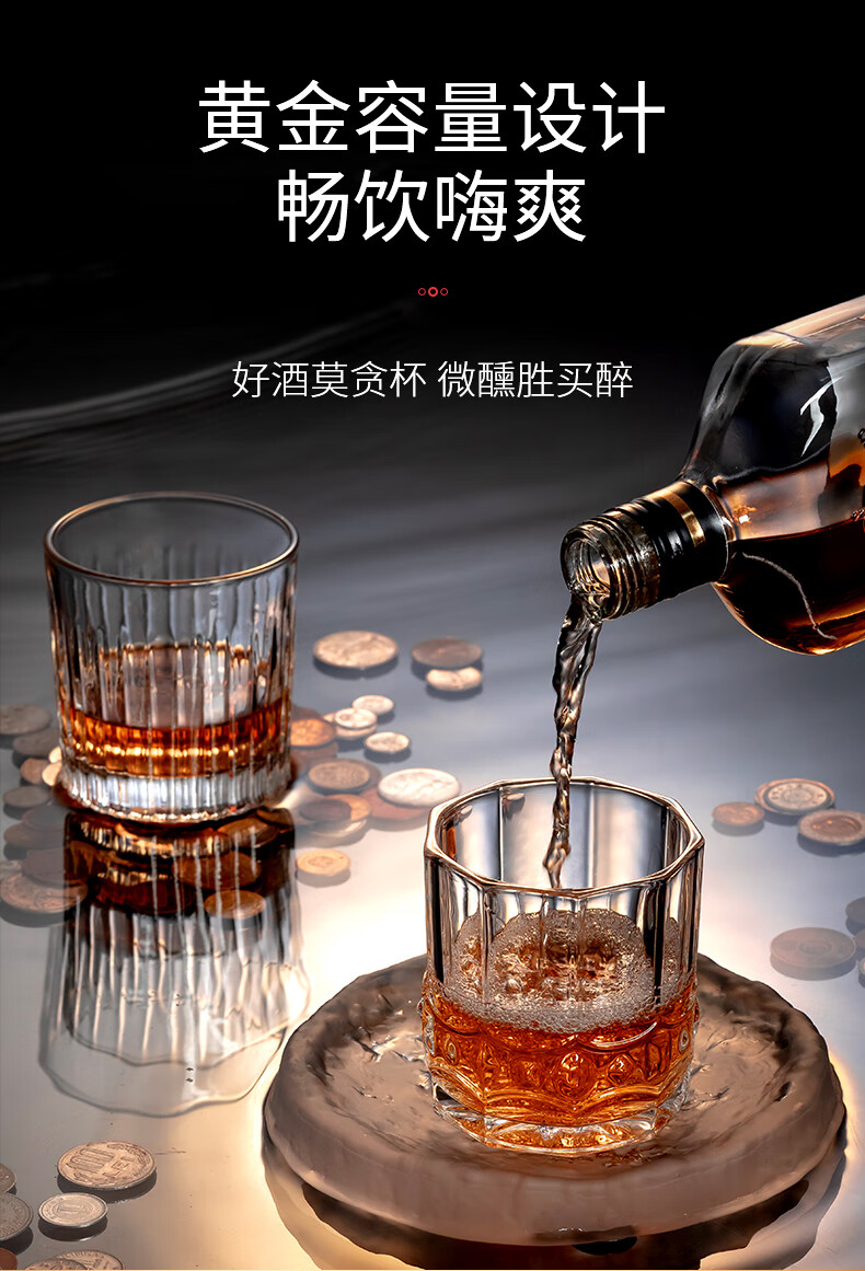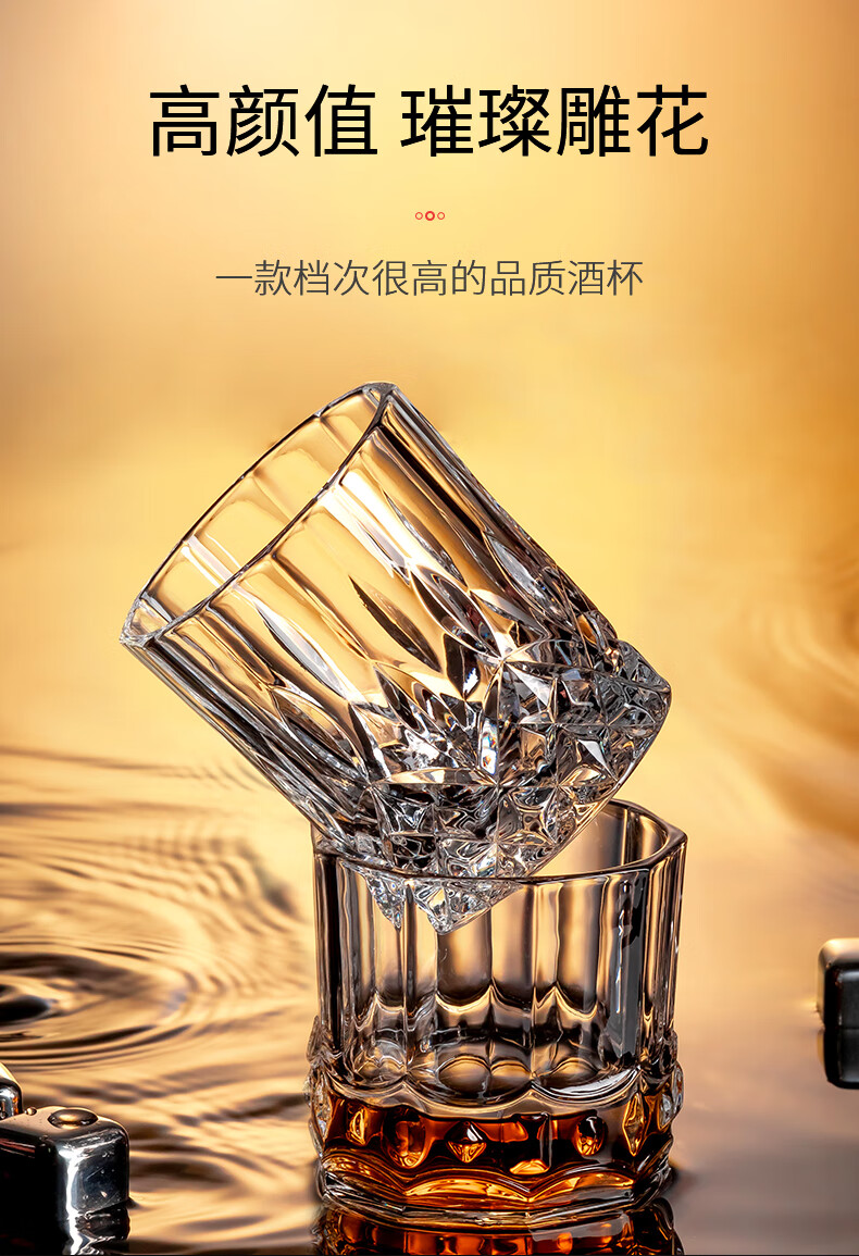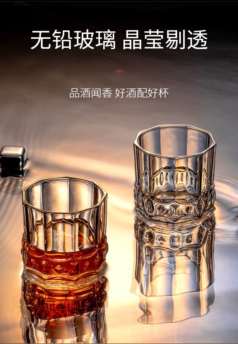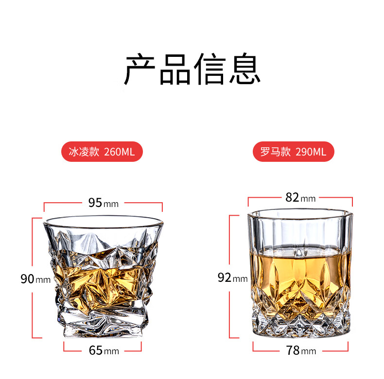 Whiskey glass, foreign wine glass, crystal glass, creative classical household beer, high-end high-end wine set, gold-painted Roman style 290ml 2 pieces