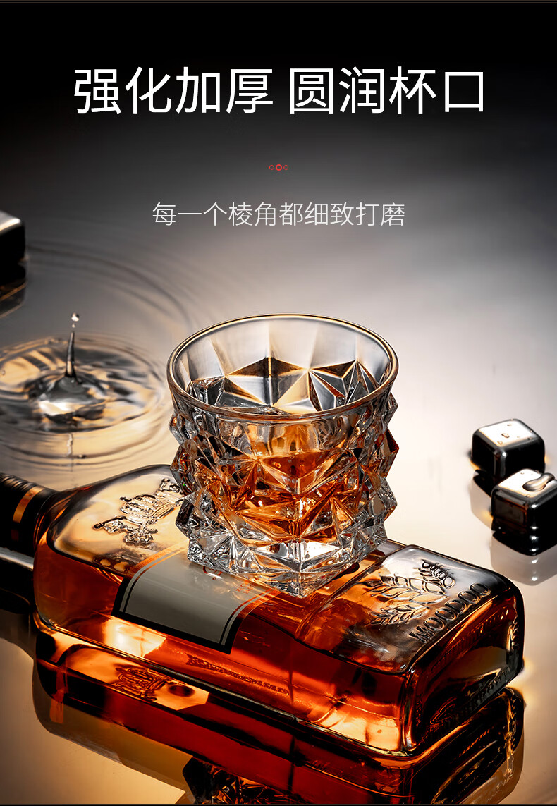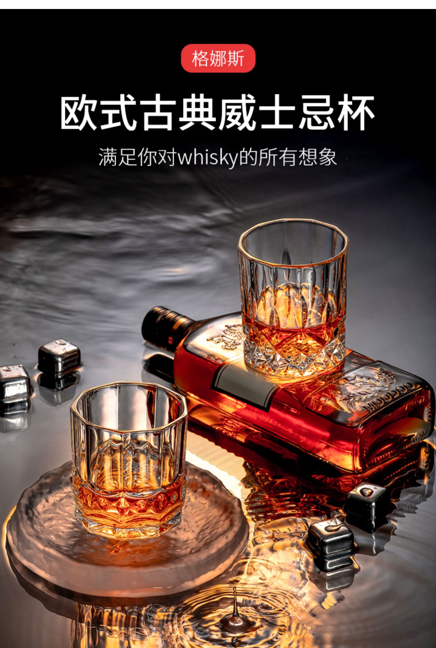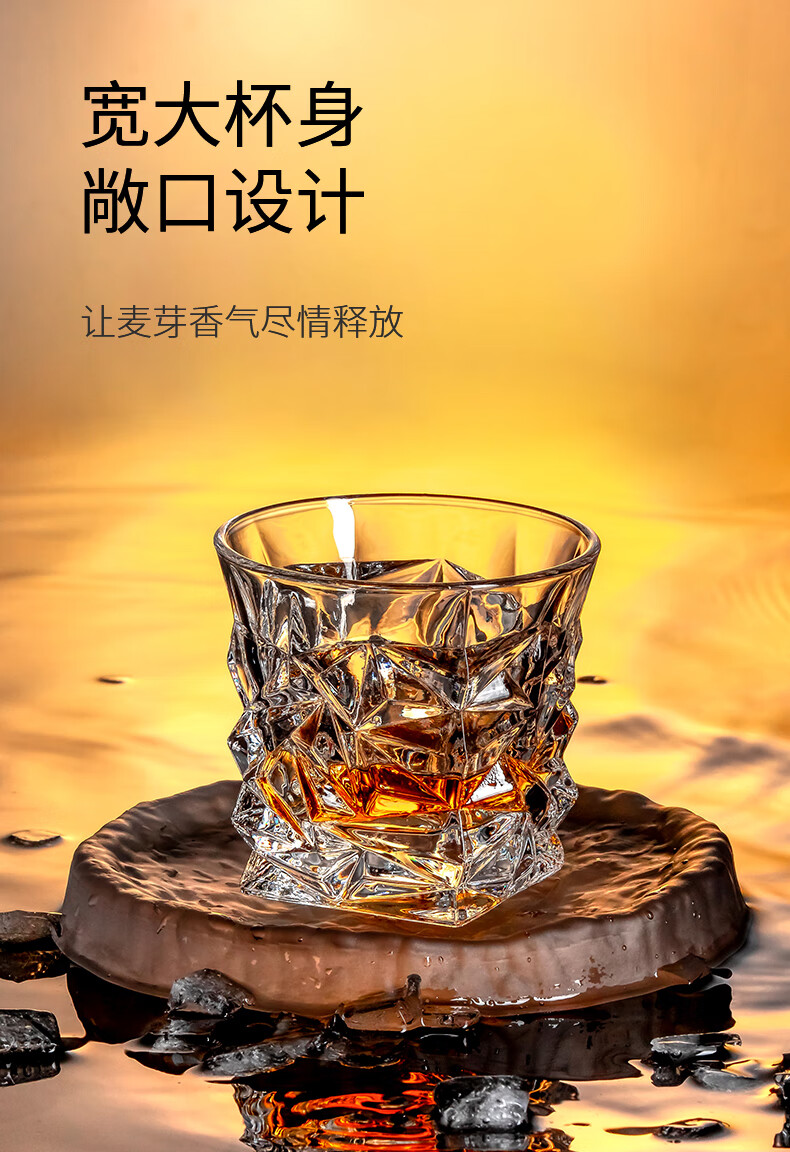 Whiskey glass, foreign wine glass, crystal glass, creative classical household beer, high-end high-end wine set, gold-painted Roman style 290ml 2 pieces