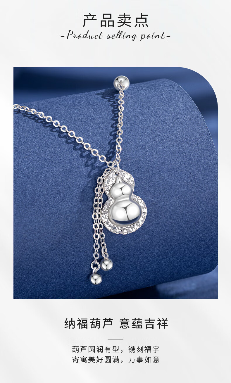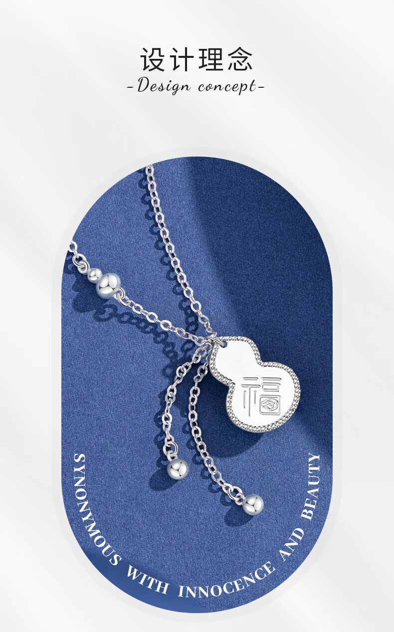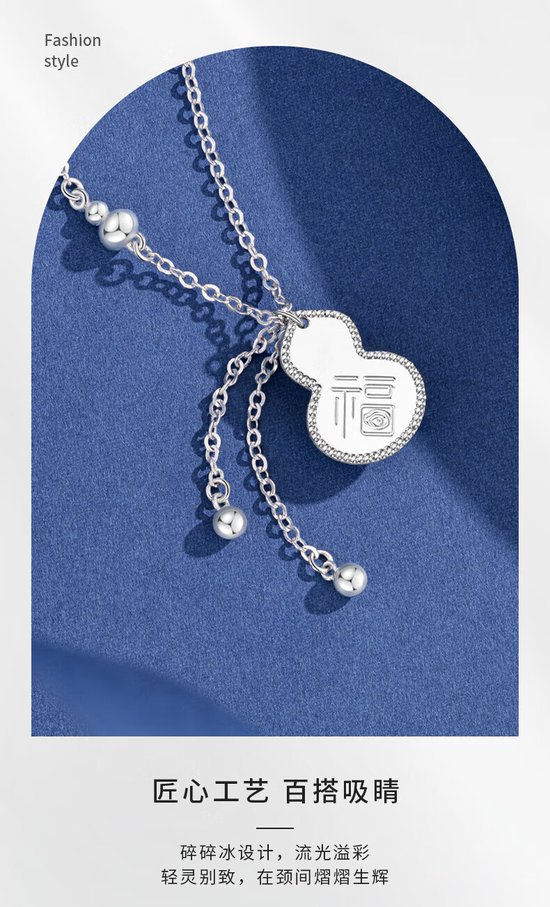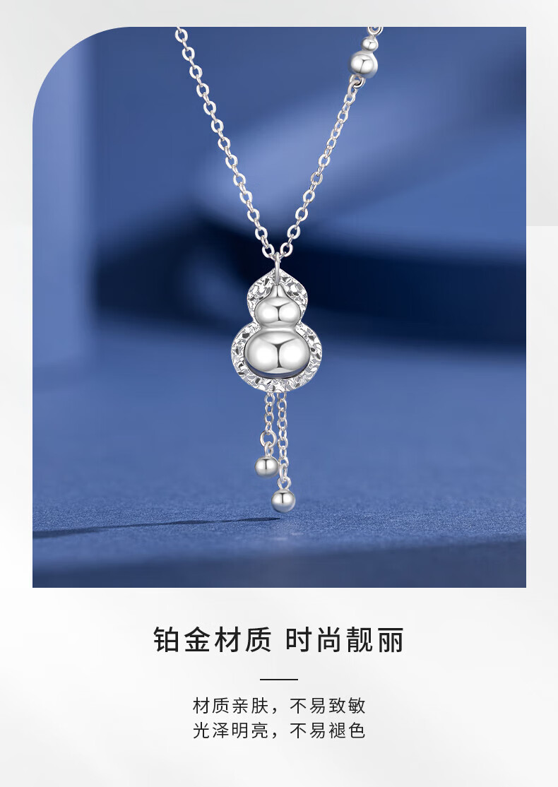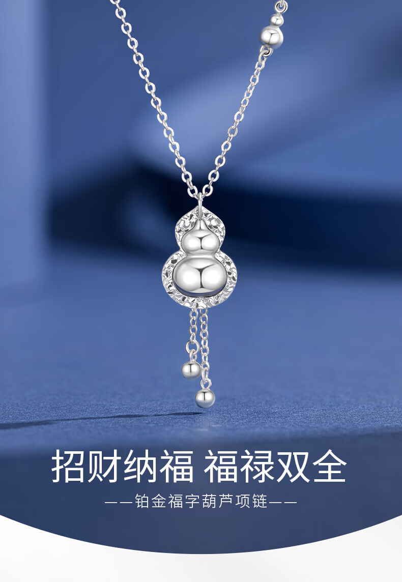 China Gold (CHINA GOLD) platinum necklace pt950 Fu character treasure gourd pendant Fulu set chain birthday Valentine's Day gift for girlfriend and wife about 8.3g