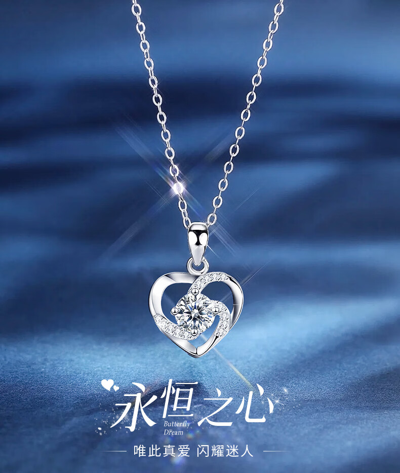 China Gold (CHINA GOLD) Love Platinum Necklace Women's Platinum Pendant Light Luxury Jewelry Birthday Gift Girlfriend Wife Wedding Anniversary Platinum Everlasting Love Pendant Free Silver Chain