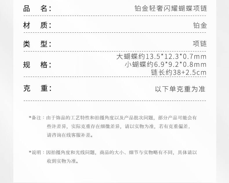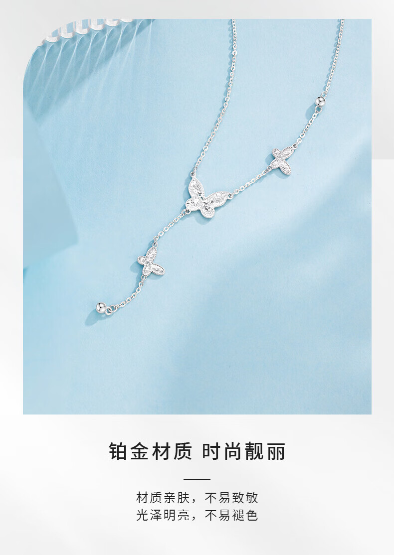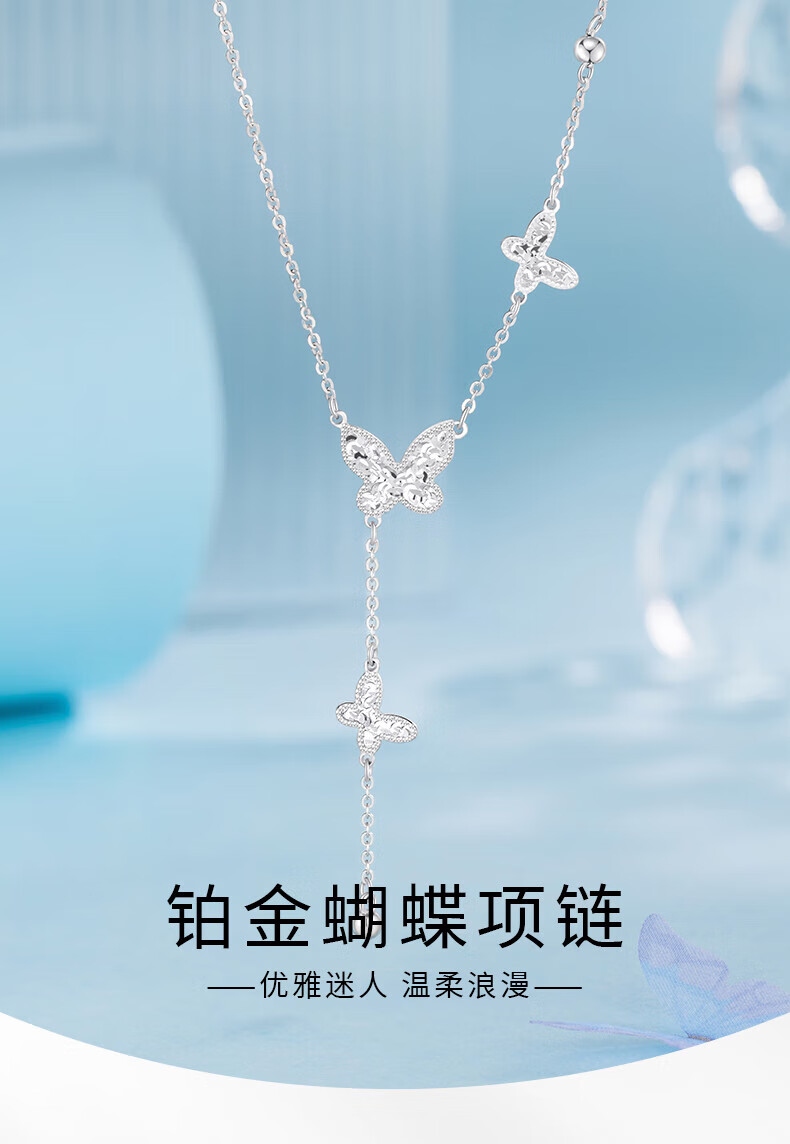 China Gold (CHINA GOLD) Platinum Necklace pt950 Light Luxury Sparkling Butterfly Set Chain Women's New Birthday and Valentine's Day Gift for Best Friend and Wife About 5g Crushed Ice Sparkling Butterfly Platinum Necklace