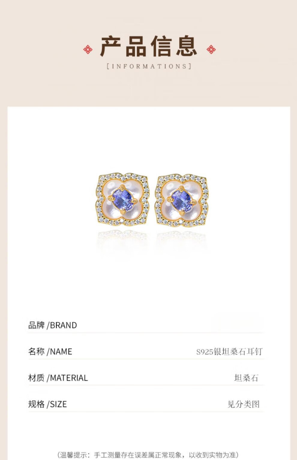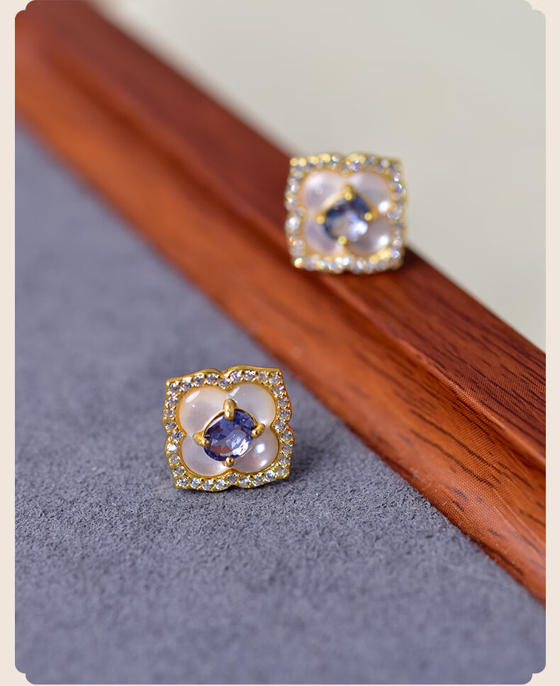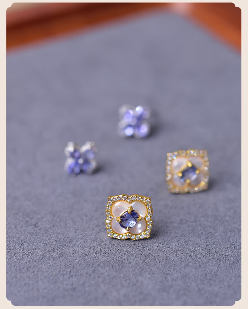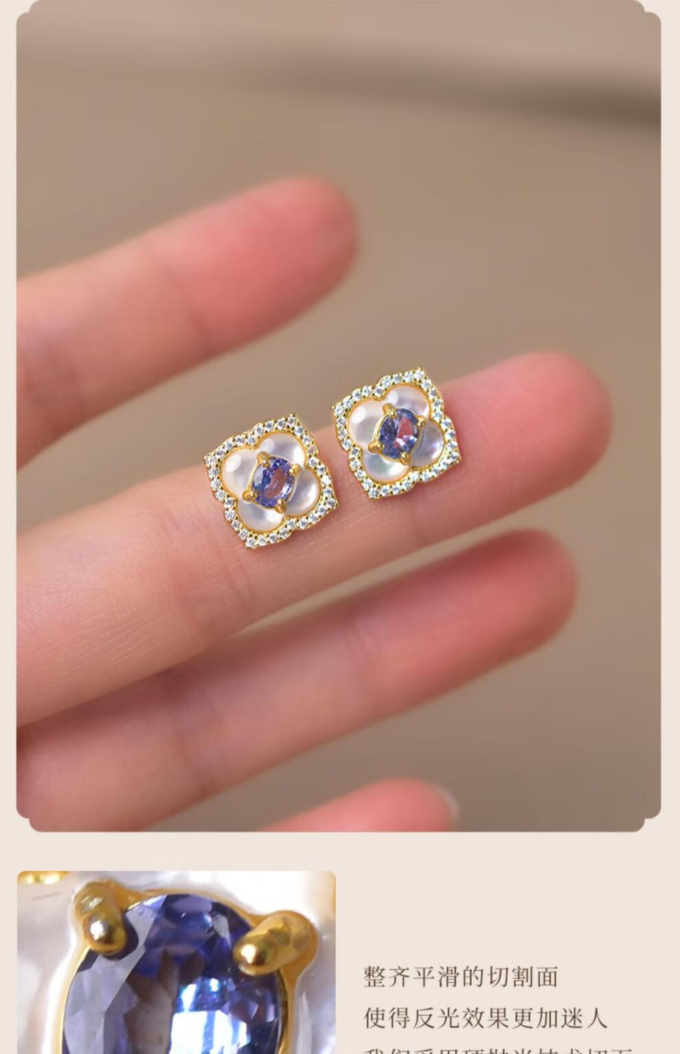 Xidian Tanzanite Earrings Women's s925 Silver National Trend Earrings East China Sea Crystal Autumn and Winter New Chinese Style Earrings Metaphysical Earrings 01#s925 Silver Tanzanite Earrings
