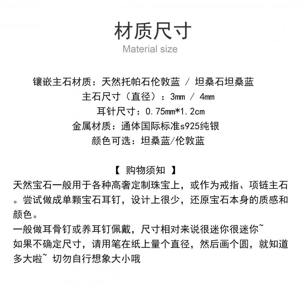 Xidian natural tanzanite 3mm sapphire earrings London blue topaz mini sterling silver ears for women Tanzanite blue 3mm | silver pair
