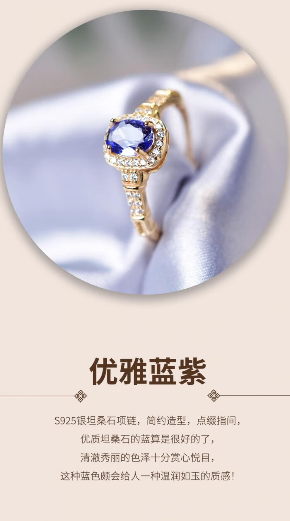Xidian Tanzanite Ring Women's s925 Silver Niche Design Ring Tanzanite Bare Stone Self-Discipline Couple Ring Index Finger Ring 01#s925 Silver Tanzanite Ring