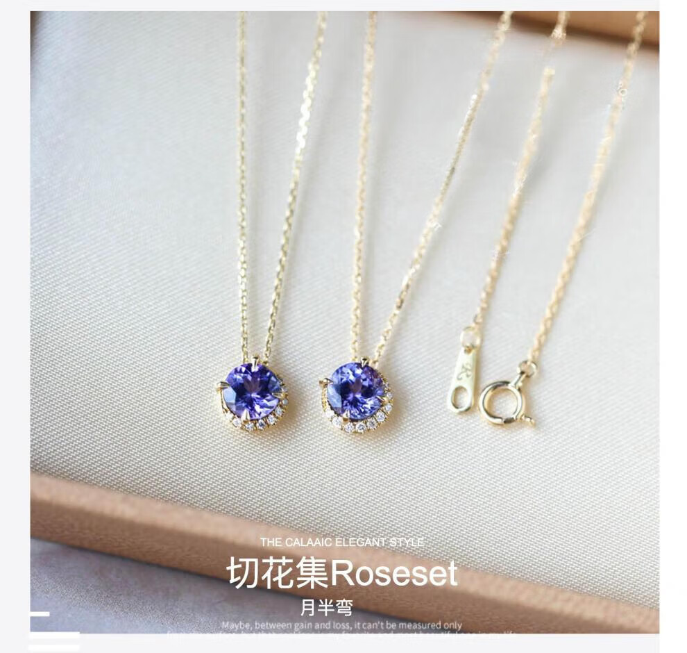 Xidian natural tanzanite 18K gold necklace light luxury amethyst fashion simple pendant for women as gifts for friends and relatives natural tanzanite necklace