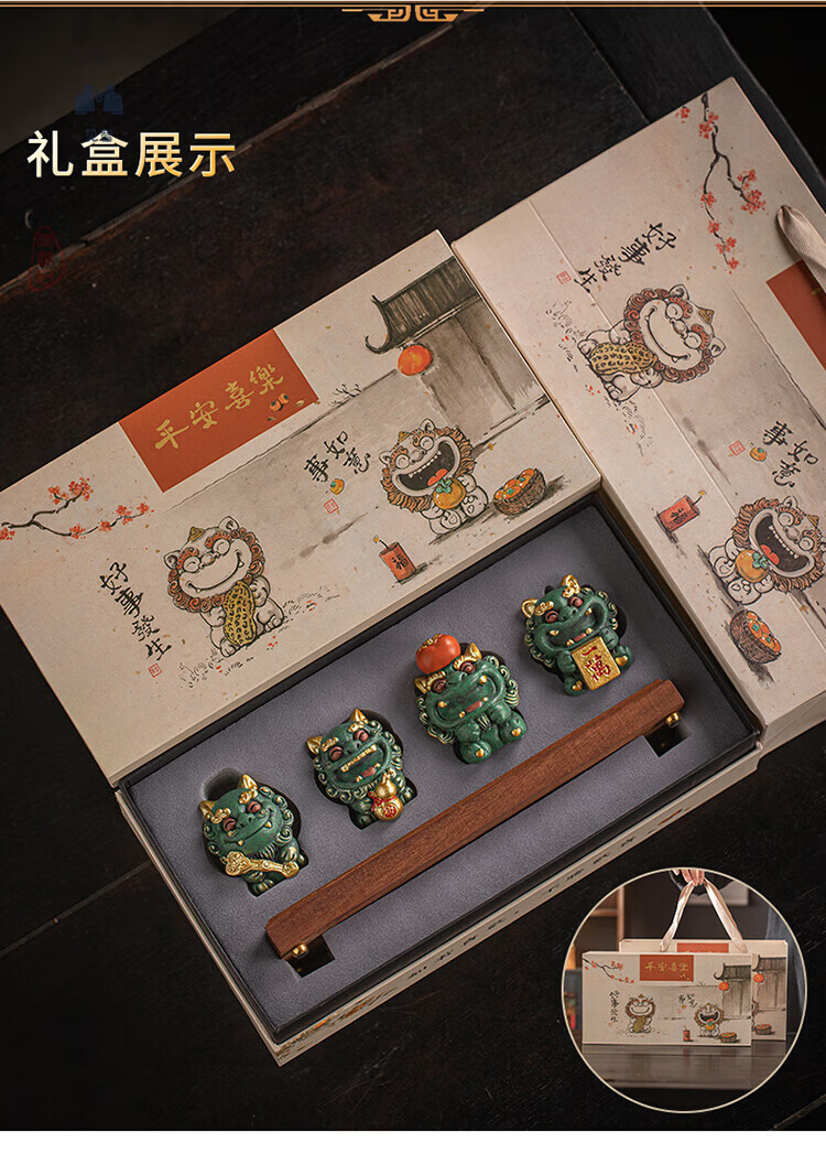 Jianzhi Guofeng creative cultural and creative tea pet ornaments to attract wealth and everything goes well for birthday office desktop station decorations bonus and everything goes well tea pet ornaments gift box packaging - shipped by SF Express