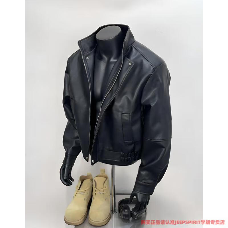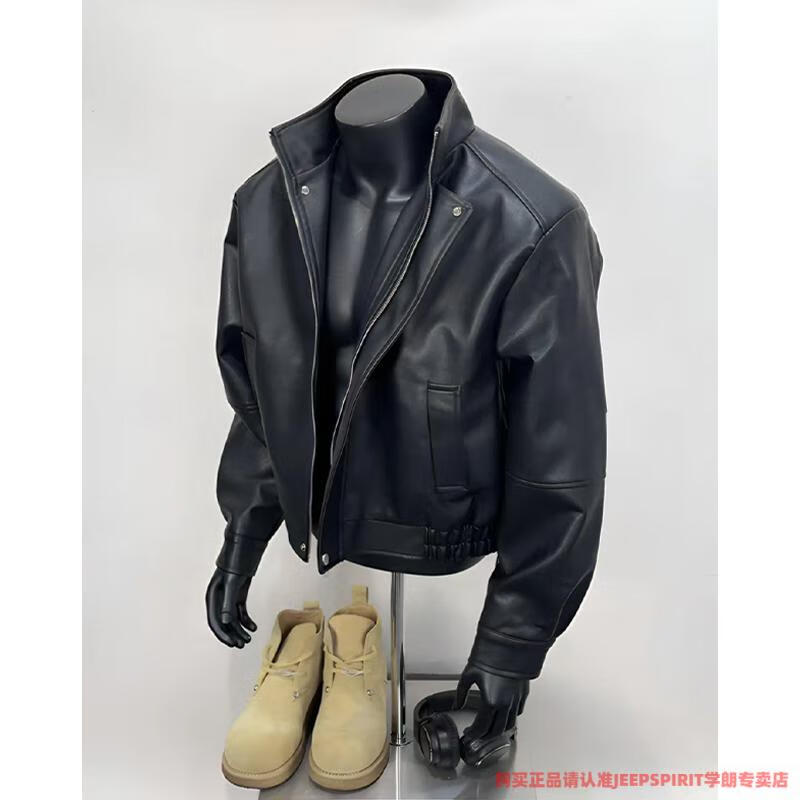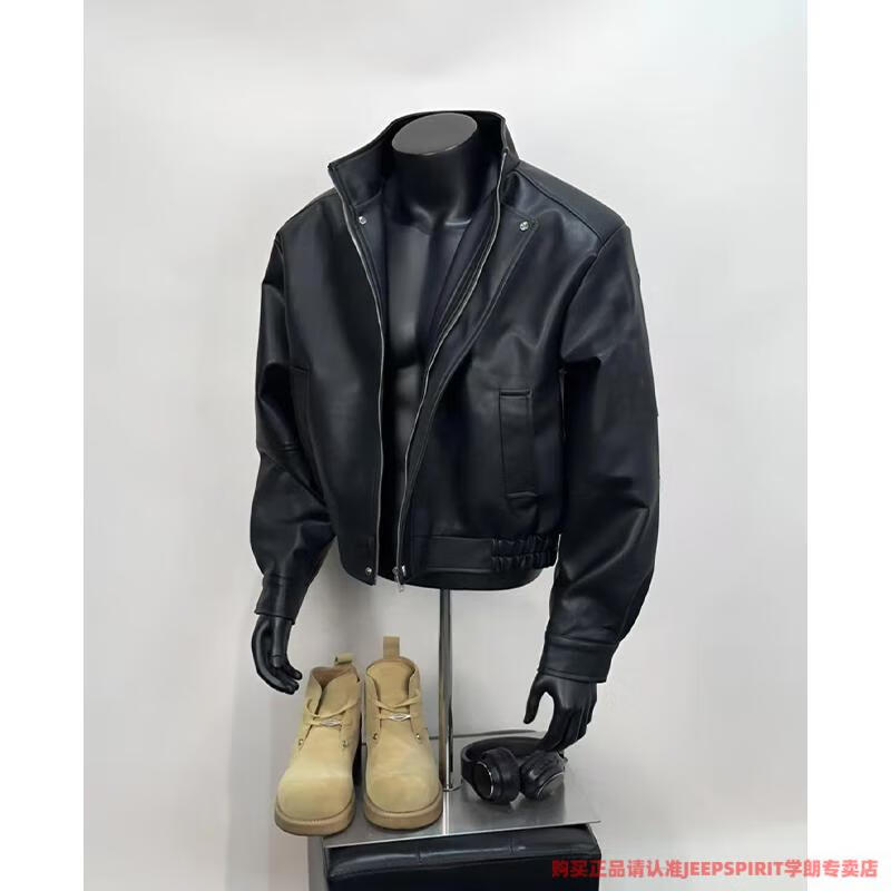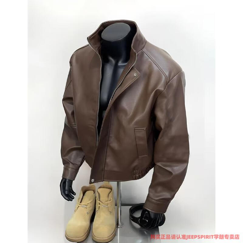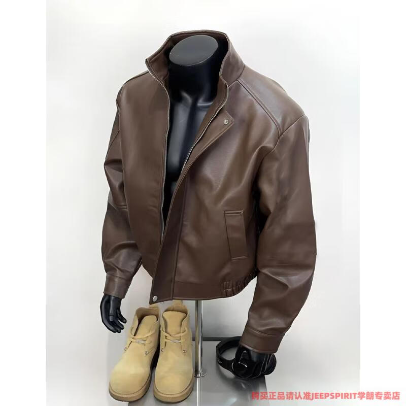 JEEP SPIRIT American retro brown leather jacket men's spring and autumn Maillard wear pu leather jacket short handsome motorcycle suit dark brown upgraded model 90 buyers choose M suitable for 105-120 Jin Jin equals 0.5 kg