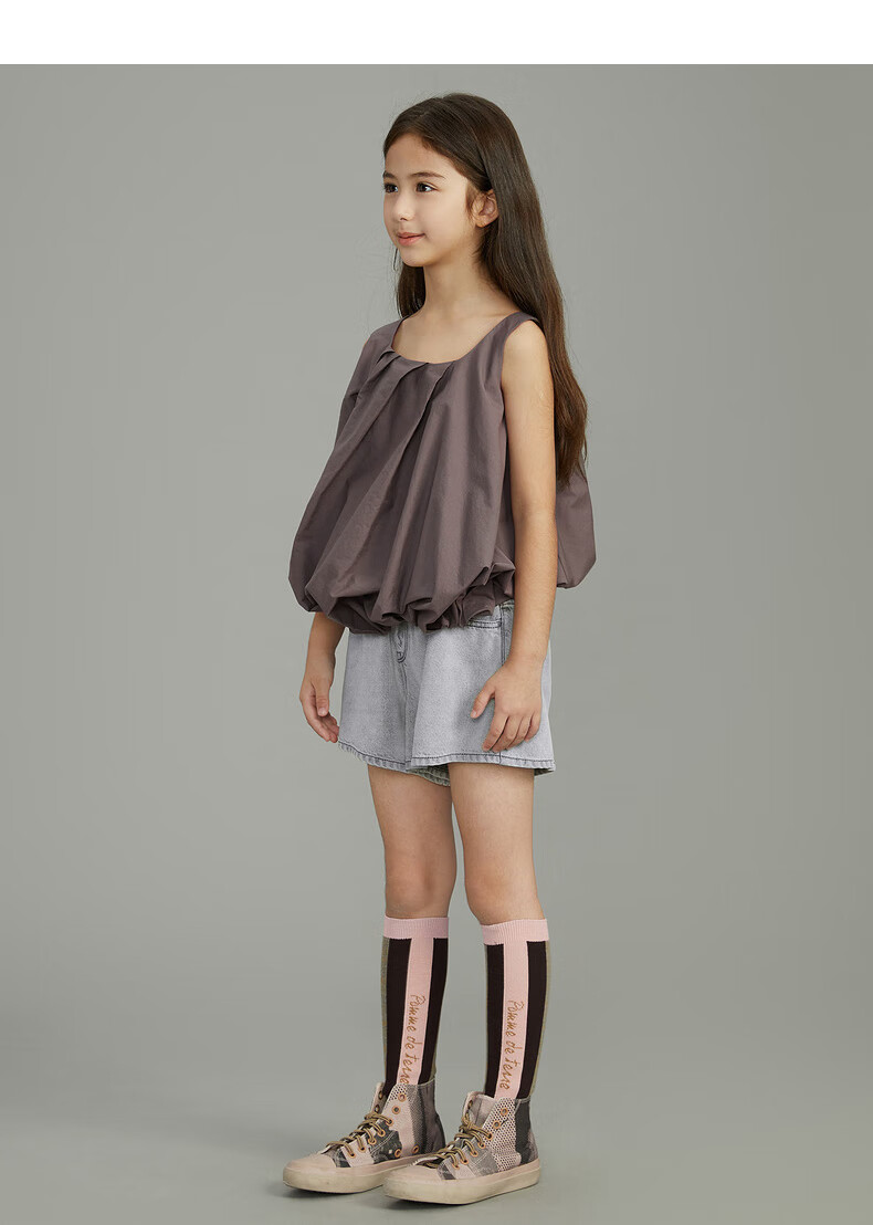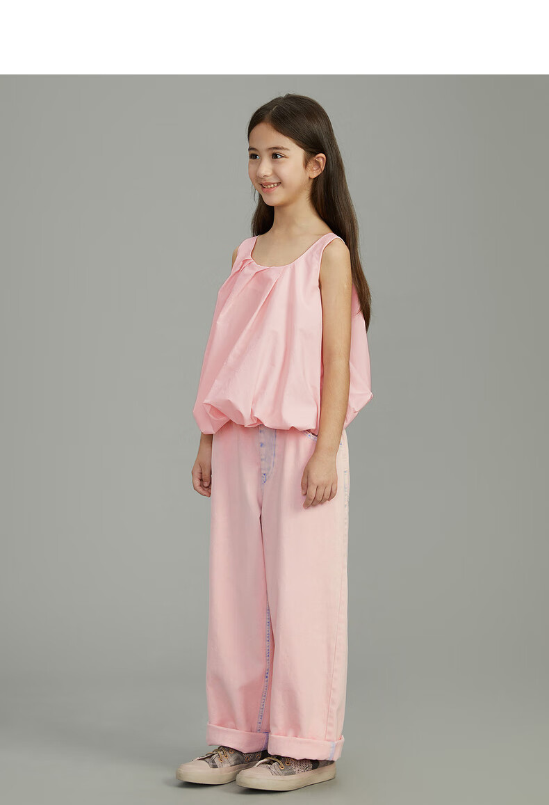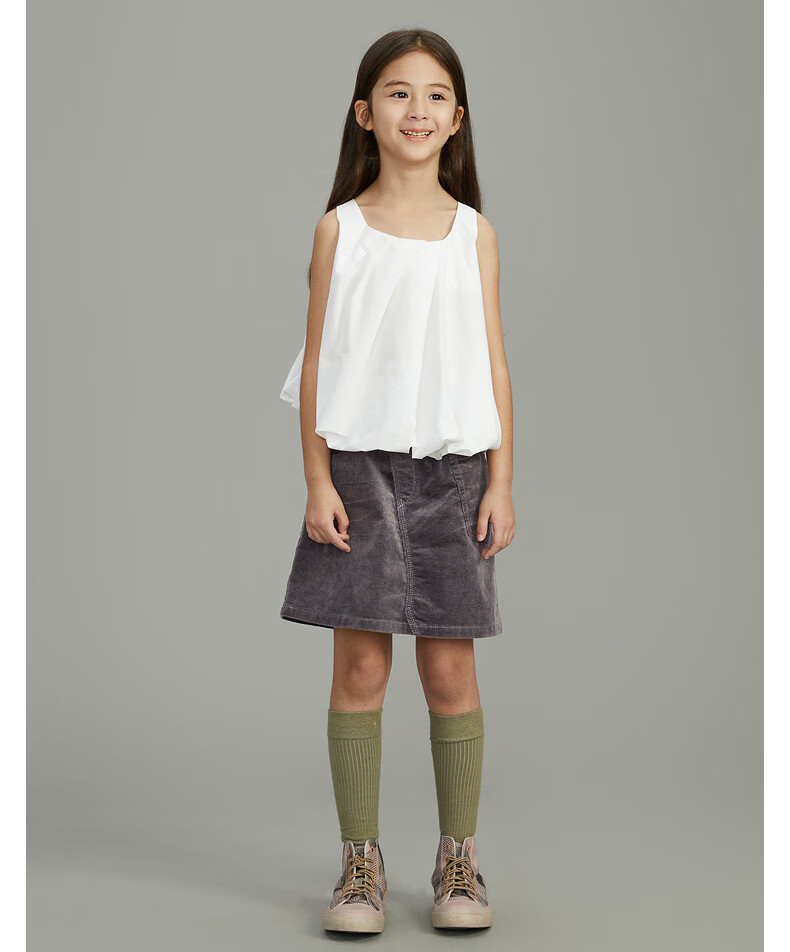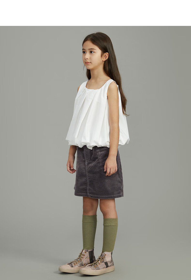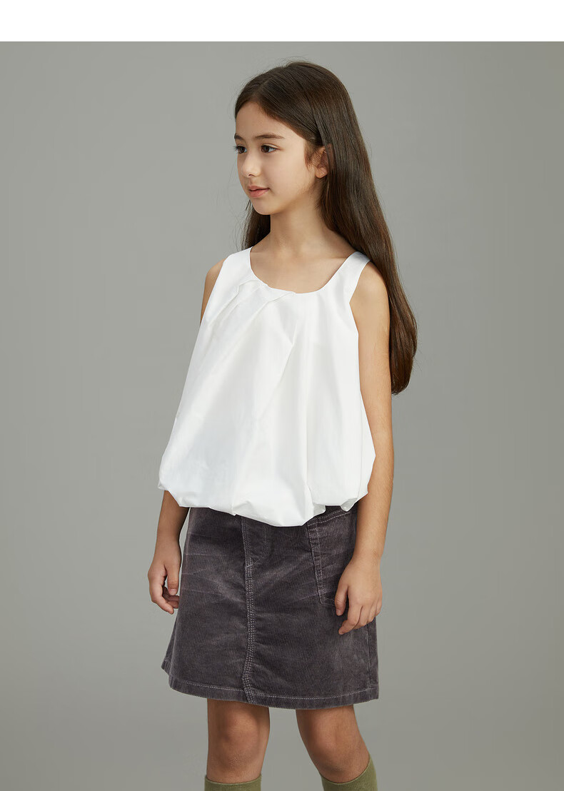 Pommedeterre big children's shirt sleeveless solid color lantern type cotton comfortable spring and summer clothing for girls AO6210750 101/bleached 150 cm