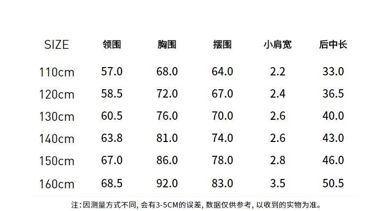 Size (cm) 42 44 46 48 50