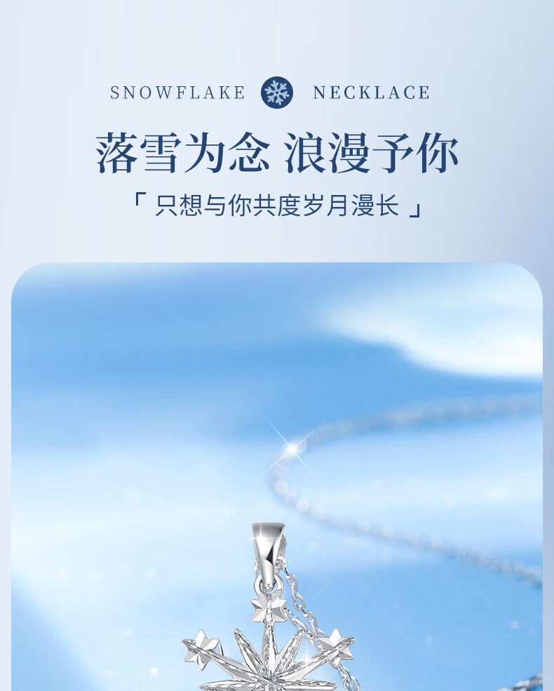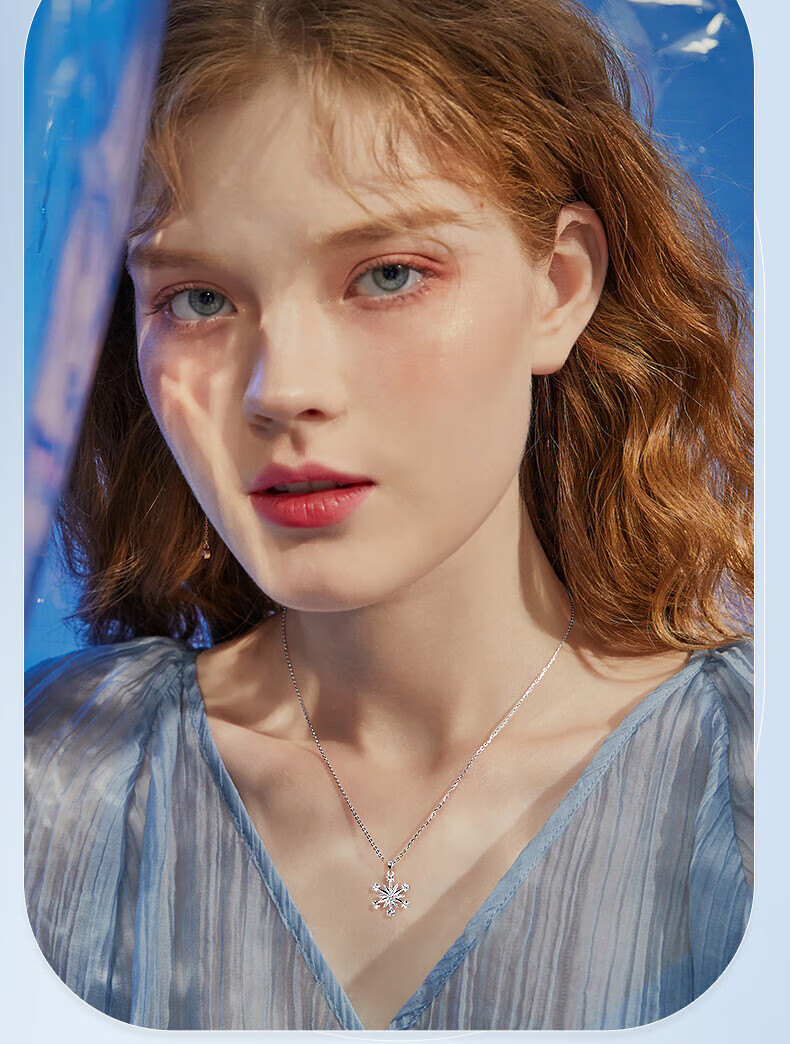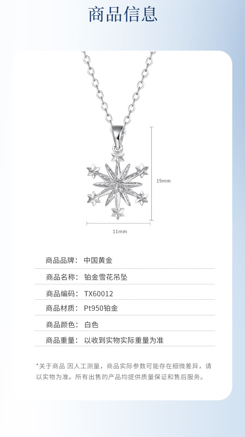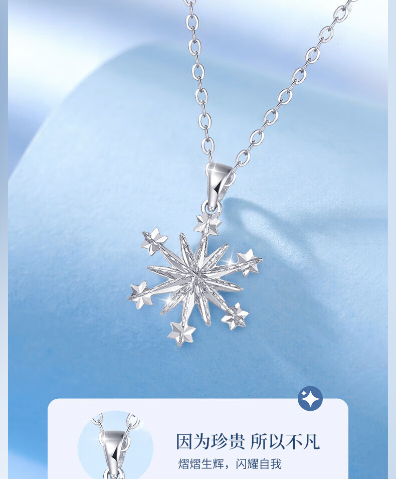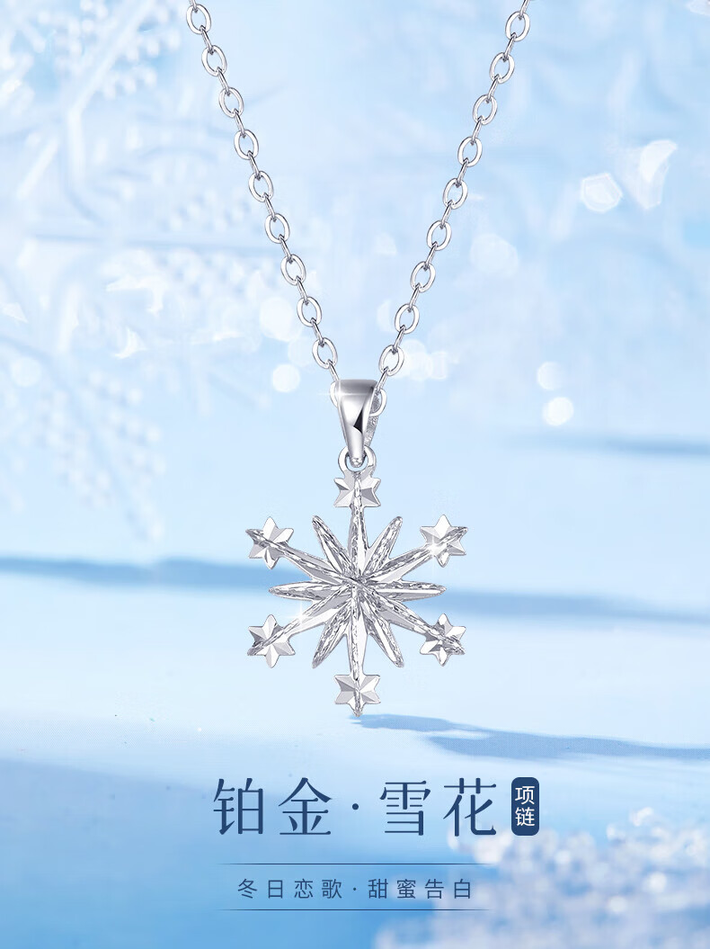 CHINA GOLD Small Snowflake Platinum Necklace Women's Platinum Pendant Light Luxury Necklace Birthday Gift for Girlfriend and Wife Wedding Anniversary Platinum Romantic Snowflake Pendant + Platinum Chain