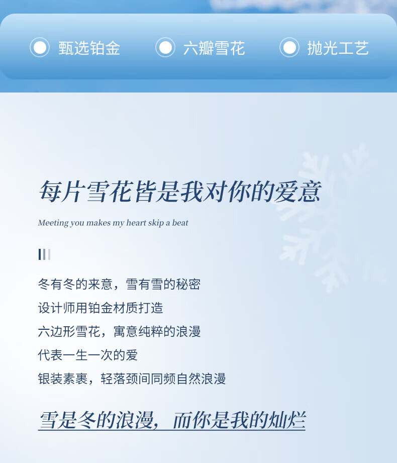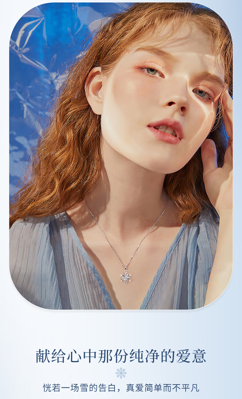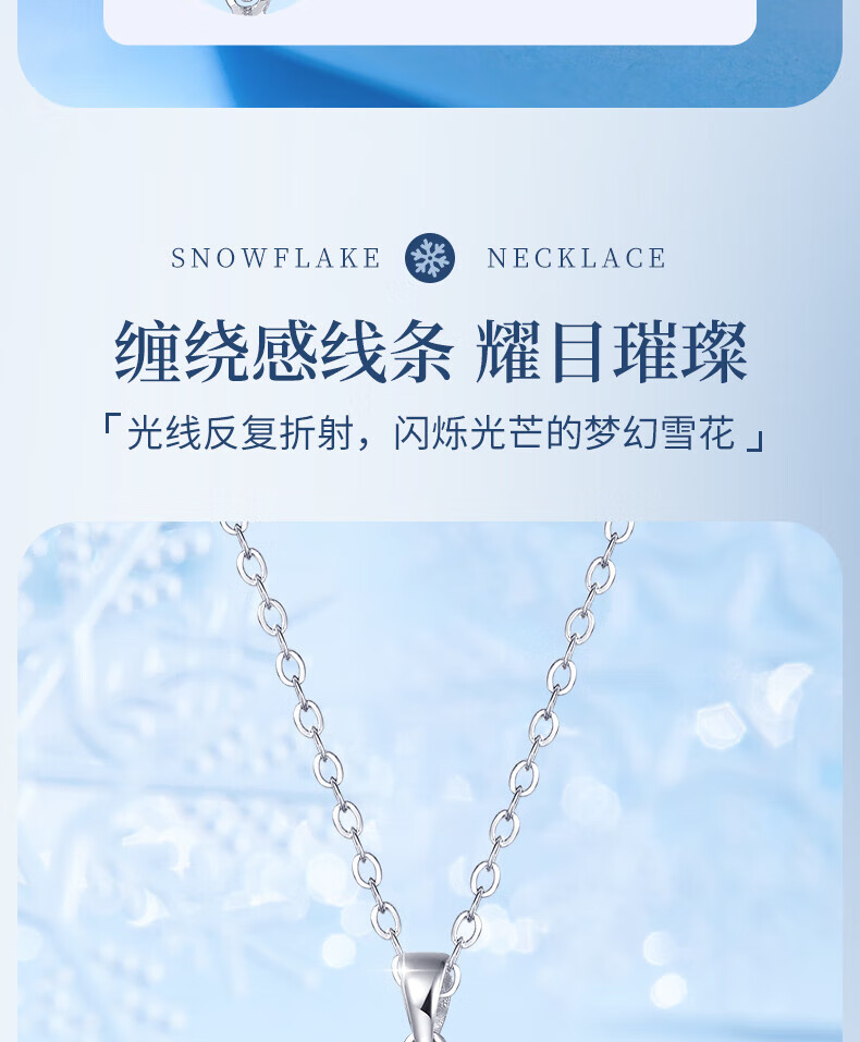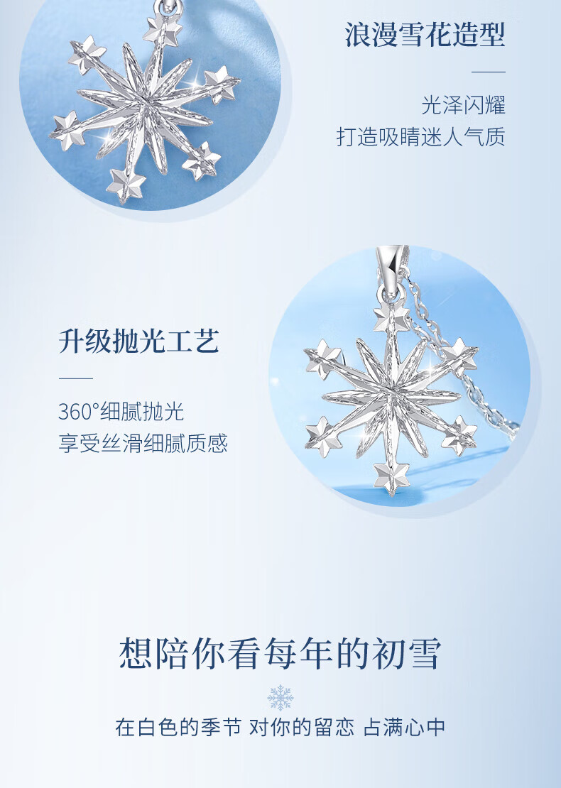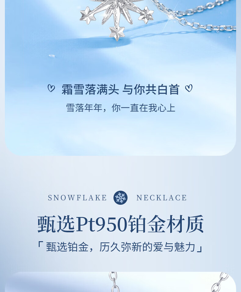 CHINA GOLD Small Snowflake Platinum Necklace Women's Platinum Pendant Light Luxury Necklace Birthday Gift for Girlfriend and Wife Wedding Anniversary Platinum Romantic Snowflake Pendant + Platinum Chain