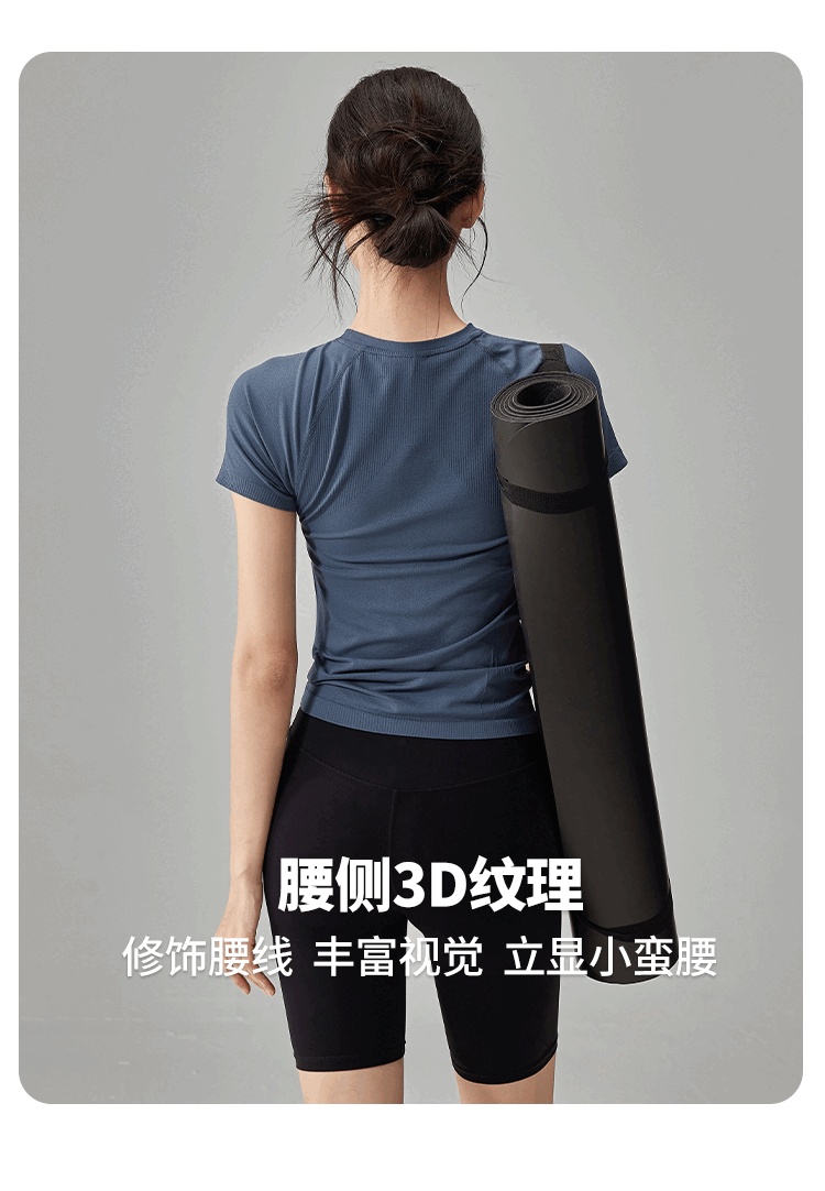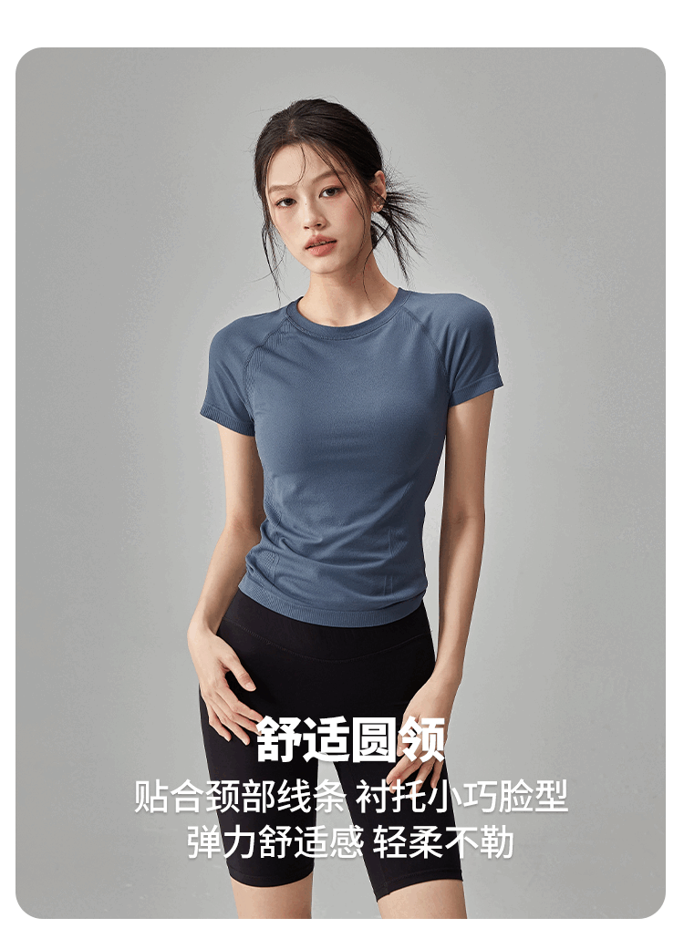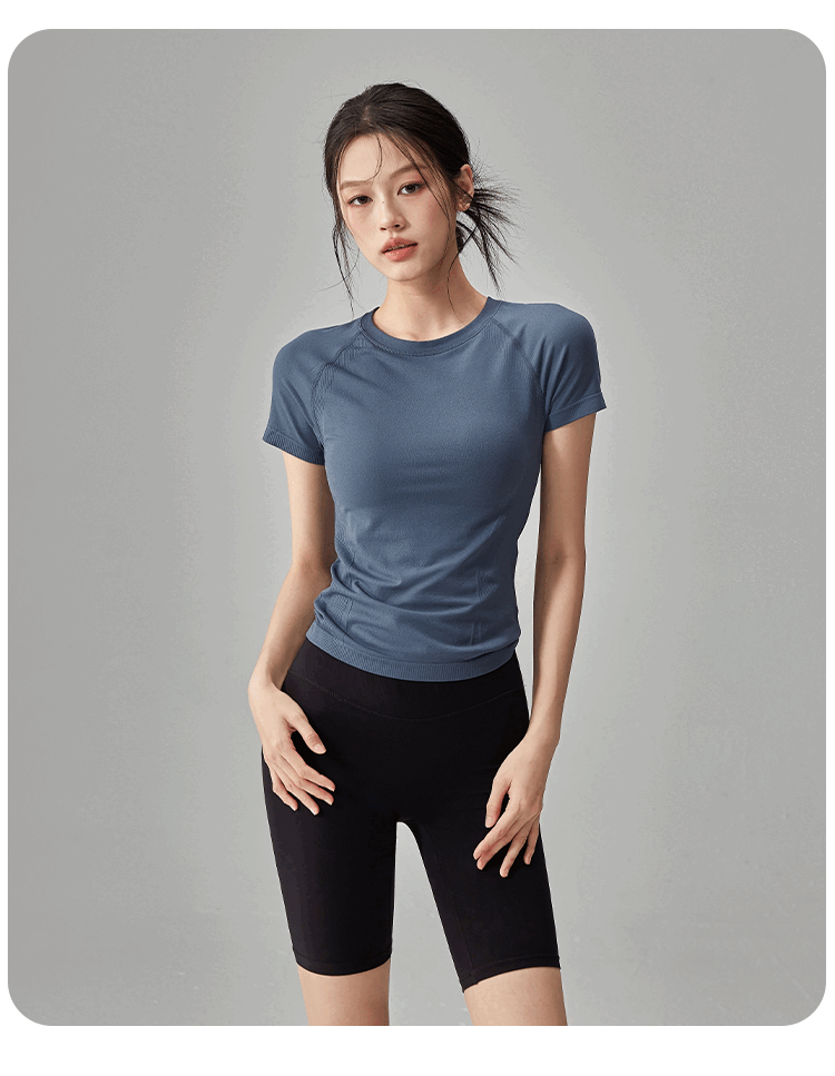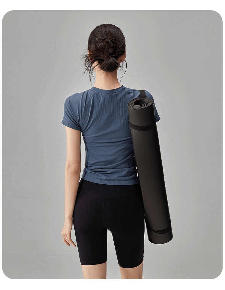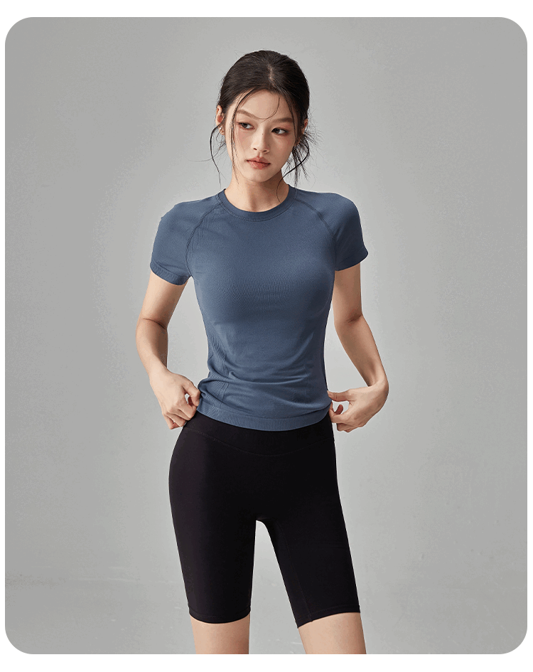 Quick-drying dry yoga clothes short-sleeved women's slimming breathable sports tops running Pilates professional fitness clothes T hemp gray A style S
