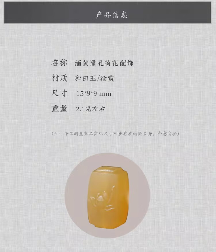 Natural Burmese Yellow Lotus Accessories Through Hole Back Cloud Bracelet Bracelet Toy with Beads Burmese Yellow