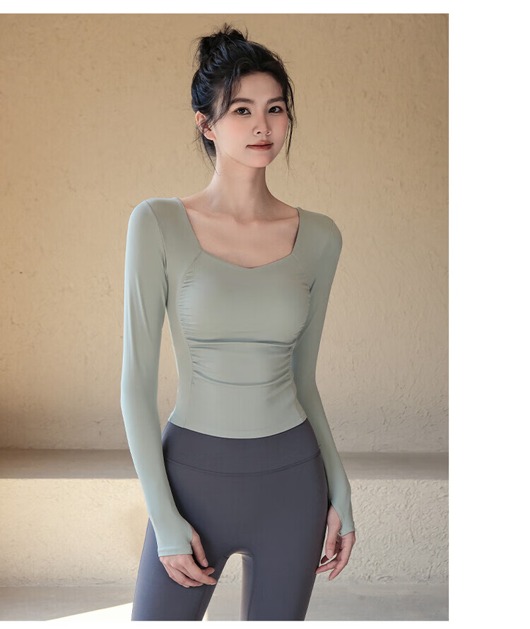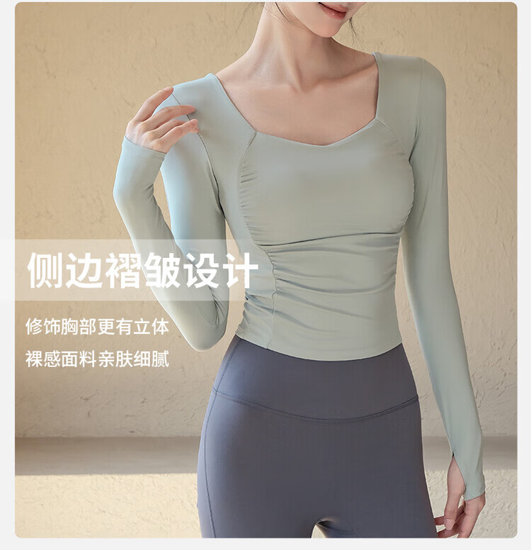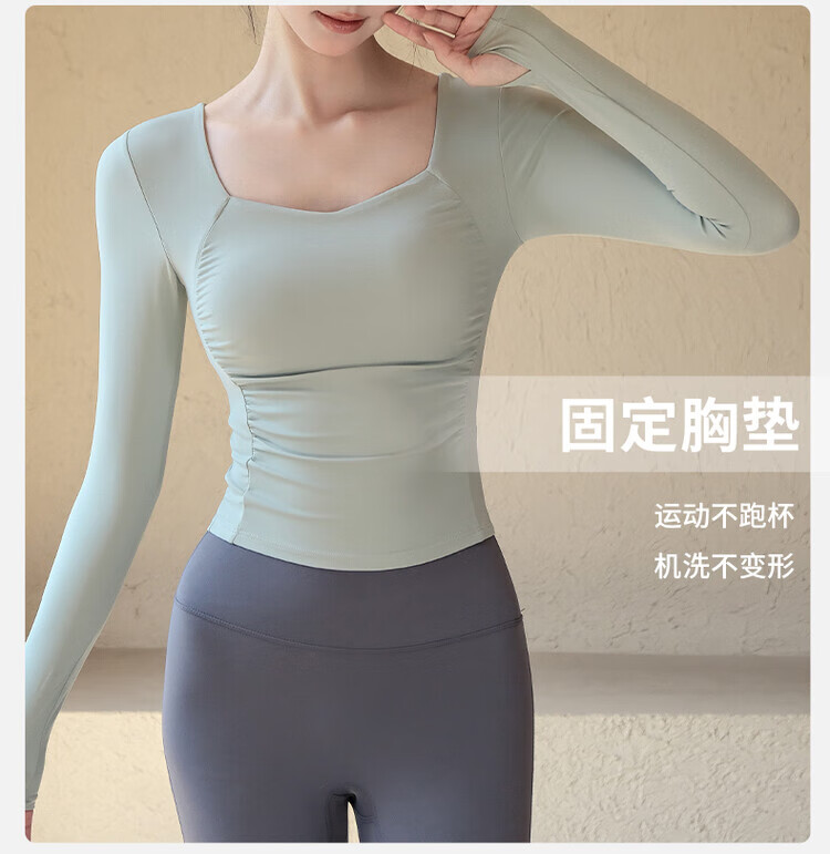 Ackdcs Yoga Wear Tops Women's Autumn and Winter New Sports Fitness Wear with Breast Pads Long Sleeve Pilates Training Set Dark Brown Velvet Style (Including Integrated Fixed Breast Pads) S