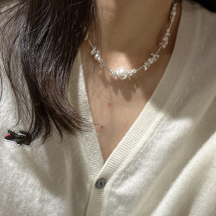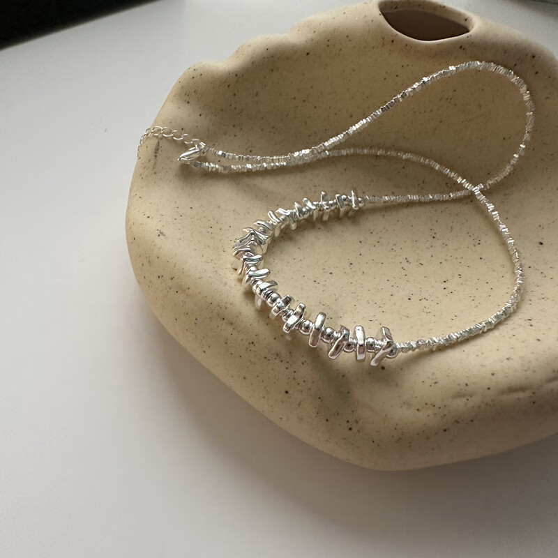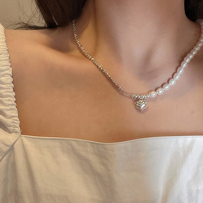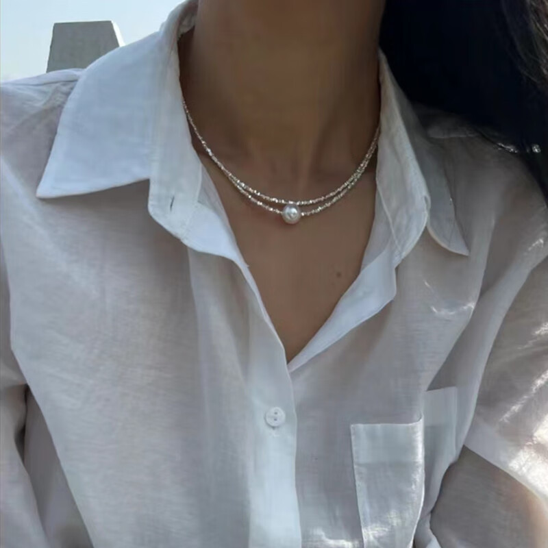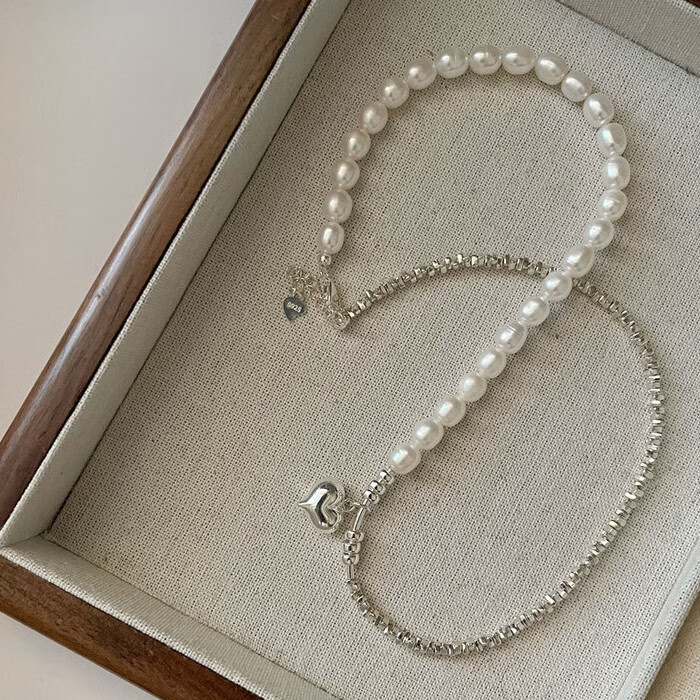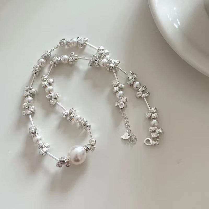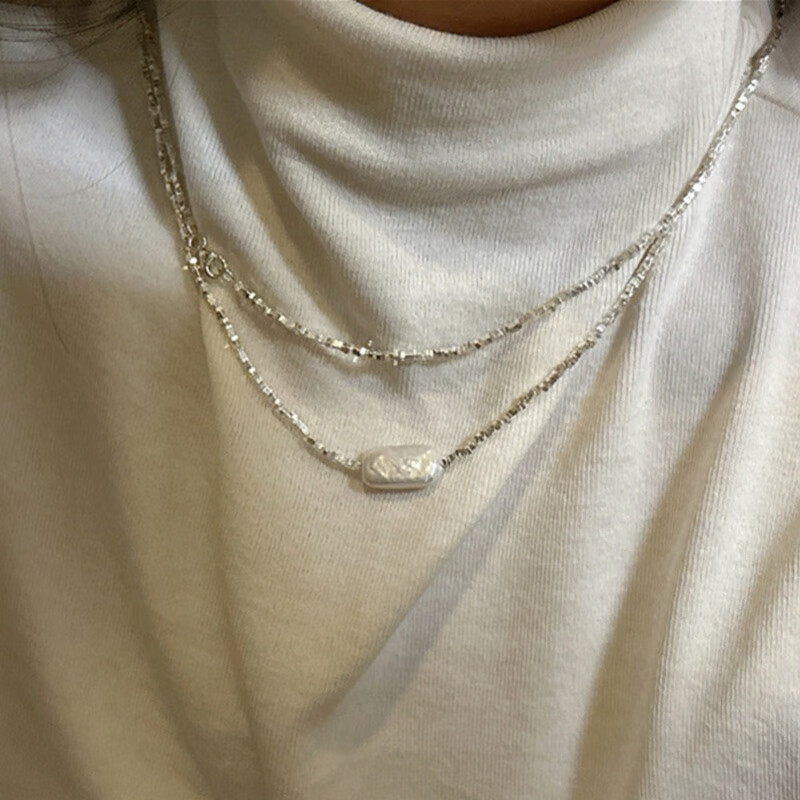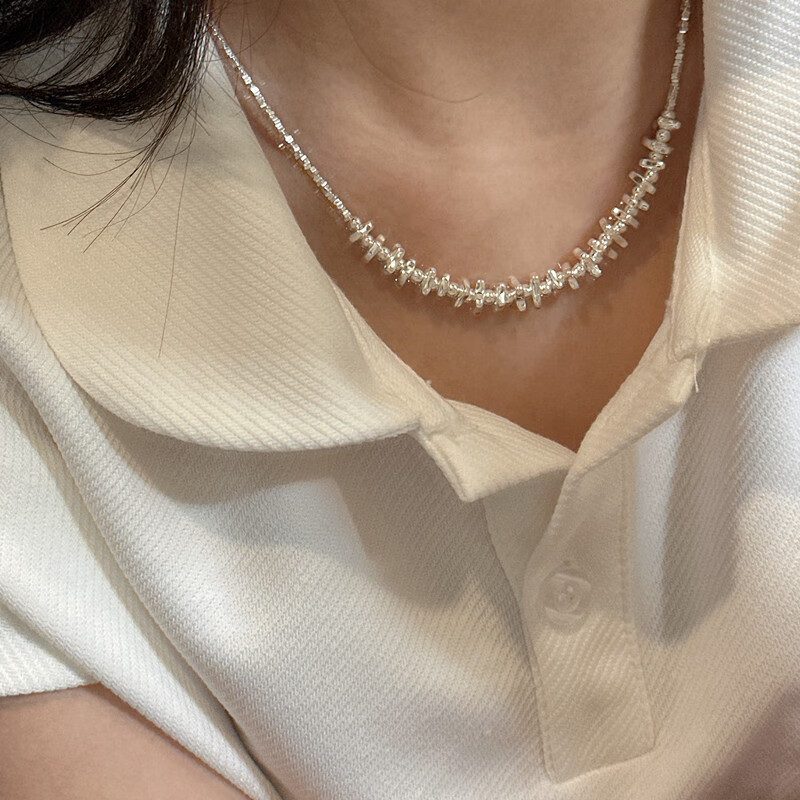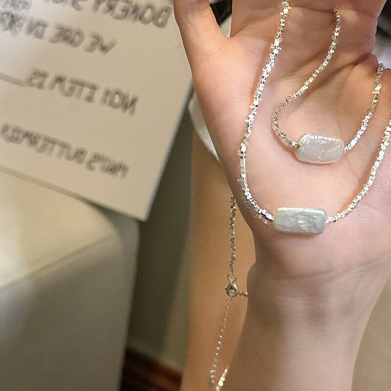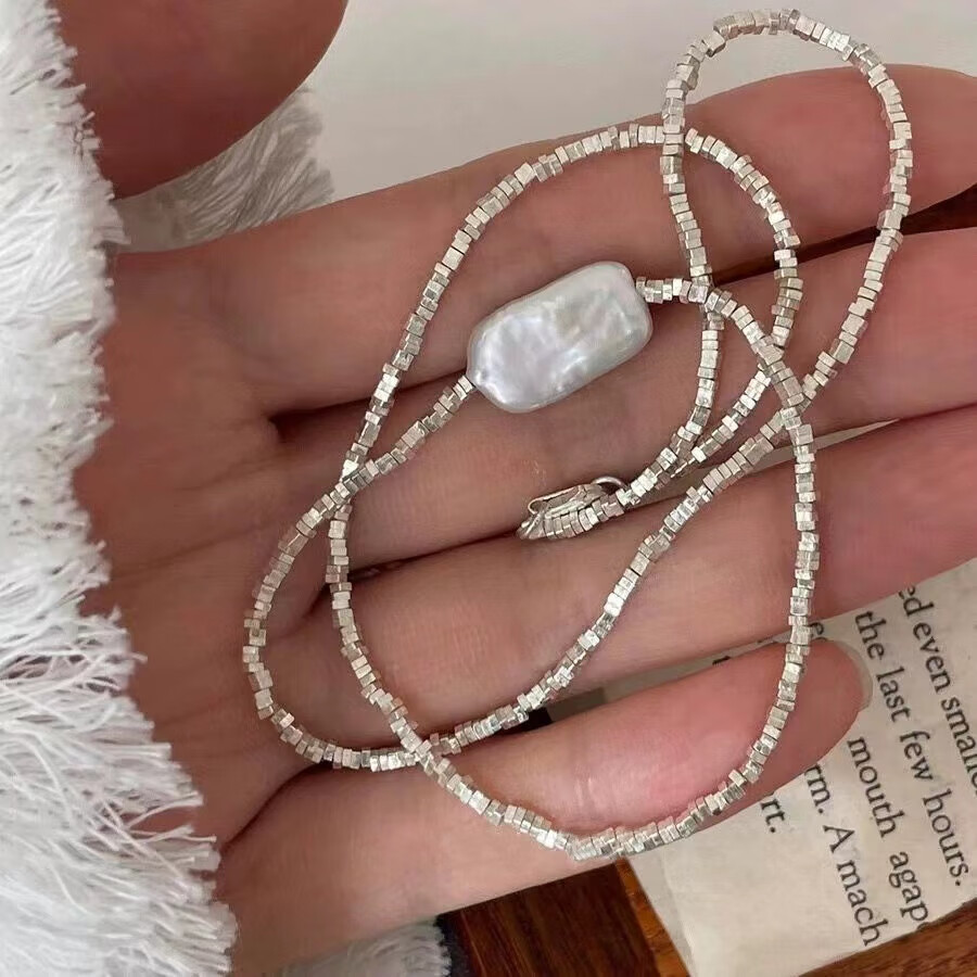 Baroque pearl necklace for women, sterling silver, a few taels of broken bone, niche design, powerful necklace