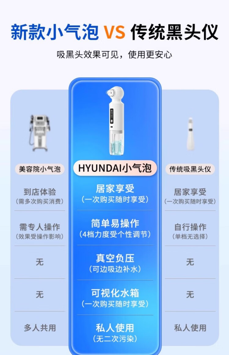 HYUNDAI small bubble blackhead absorber, electric blackhead absorber, beauty instrument, household facial pore cleaning extractor, gift box hot compress model, sewage separation + four types of adjustment + constant temperature hot compress Chinese Valentine's Day