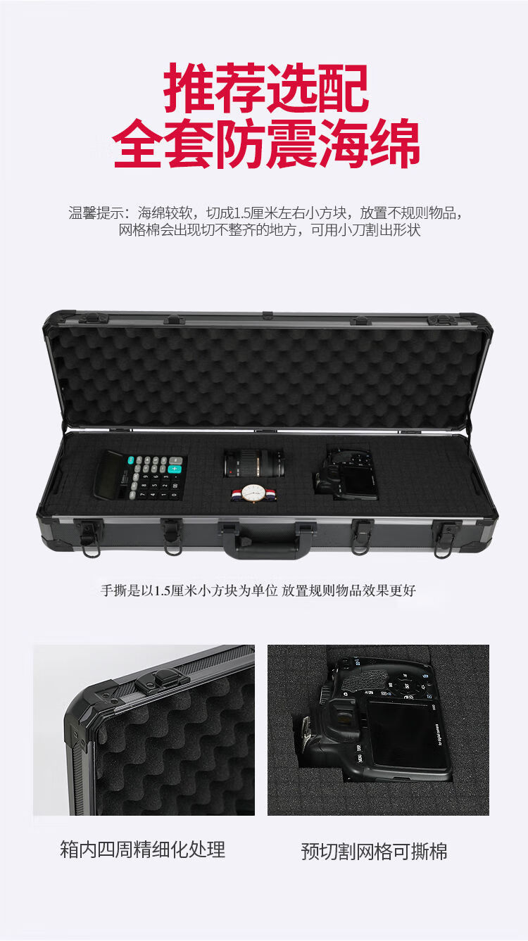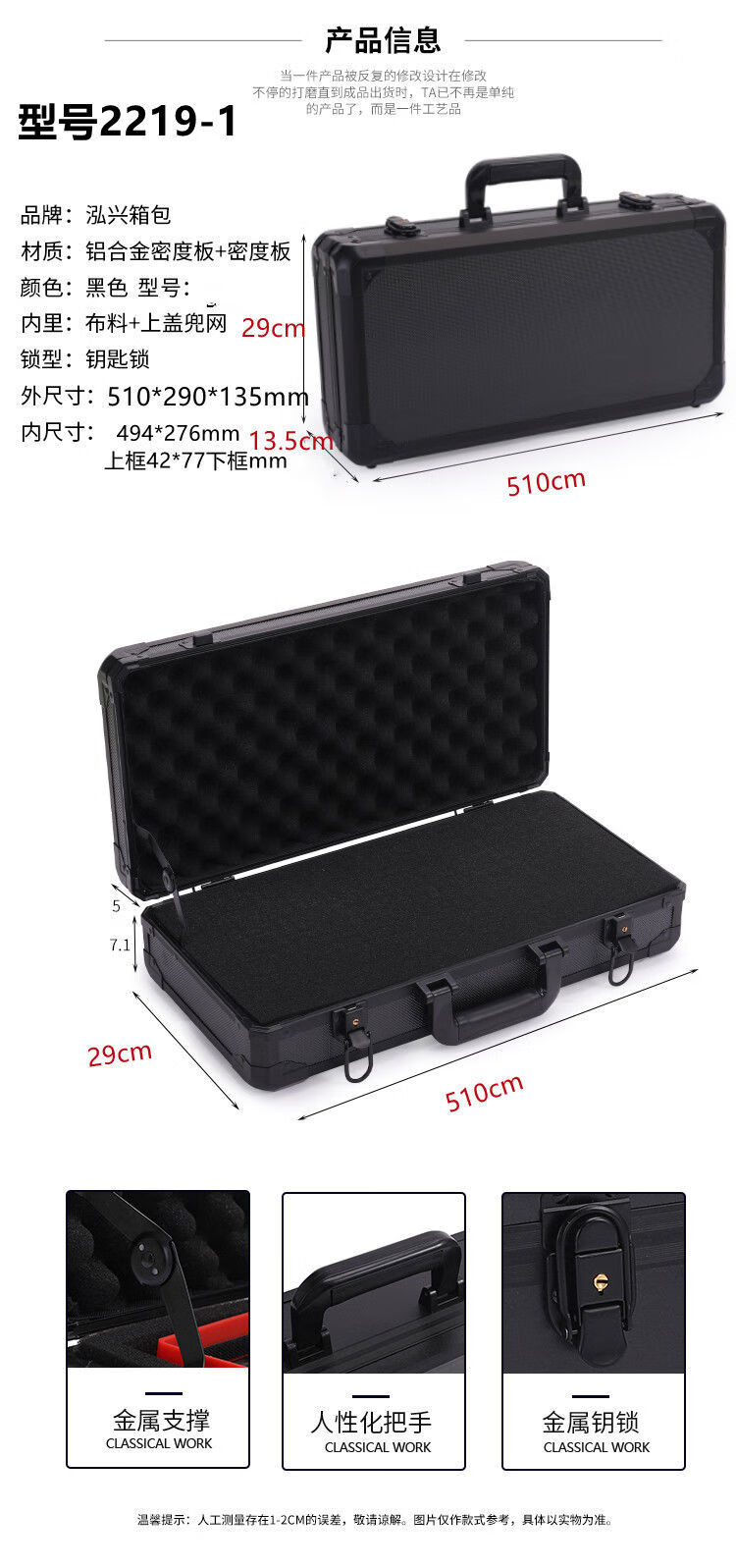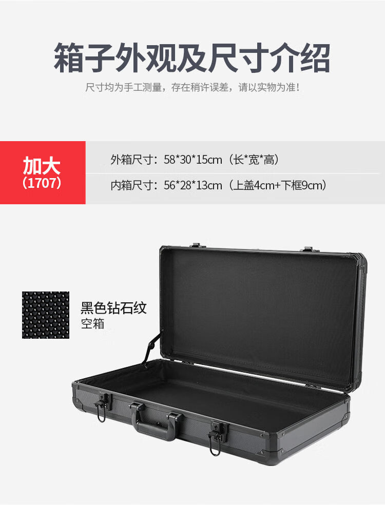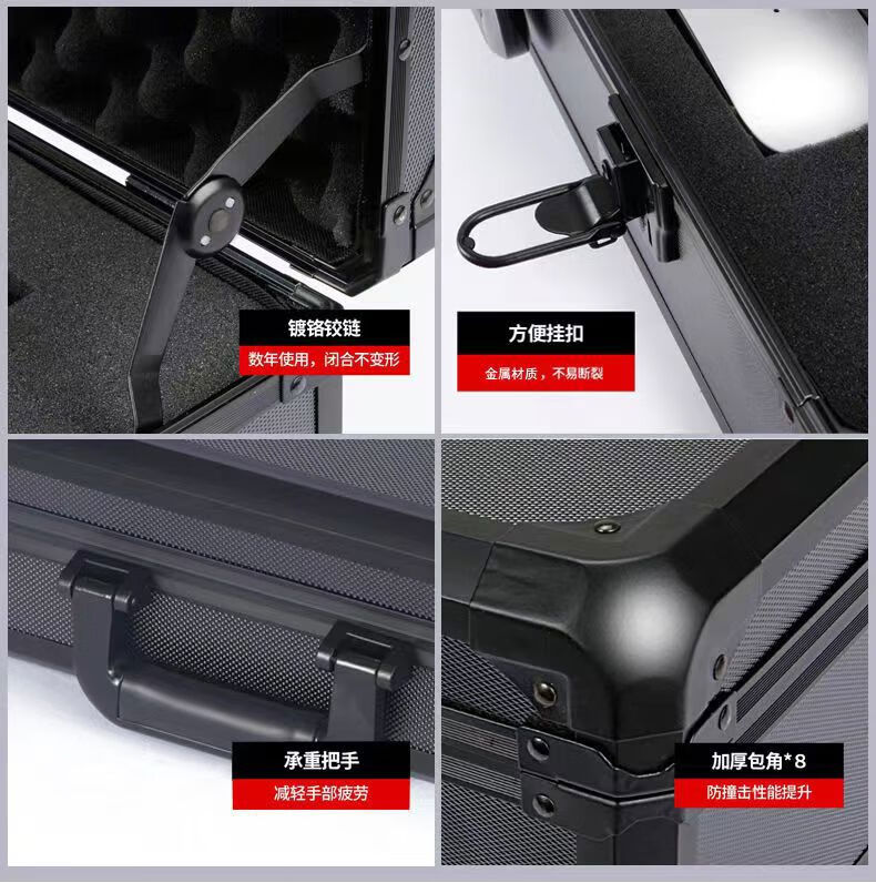 Box Yiju portable aluminum alloy tool box instrument equipment safety box model tool box fishing gear multi-functional storage box 154 pure black and cotton inner size 76*23 points 5*14 points 5cm