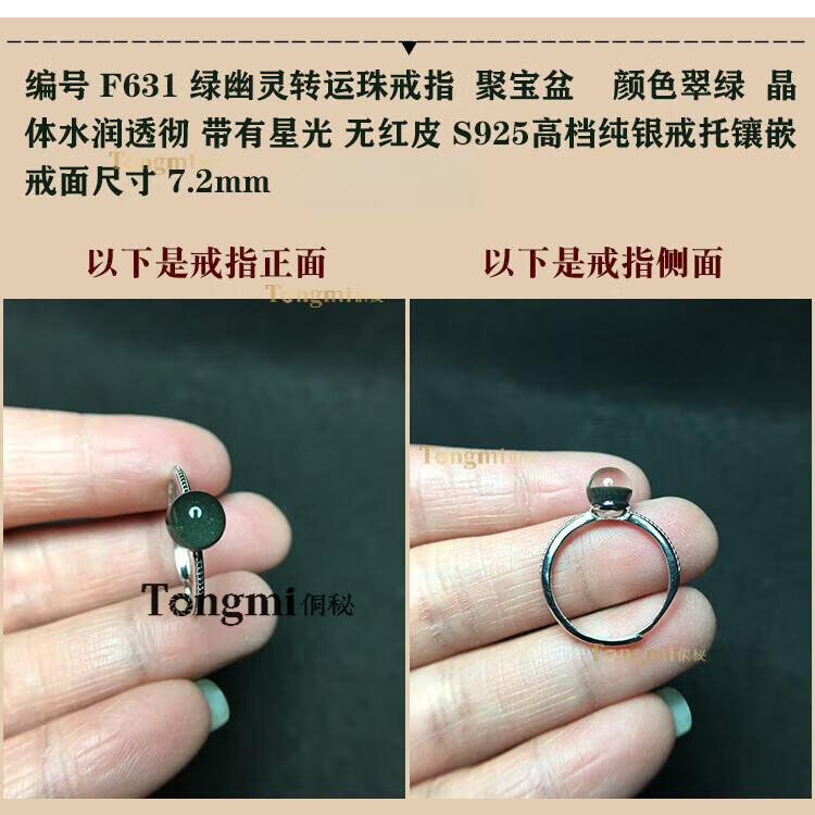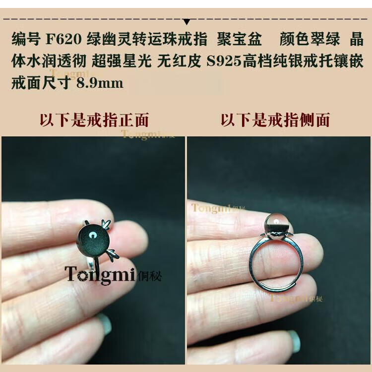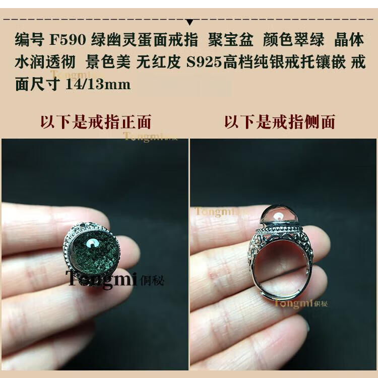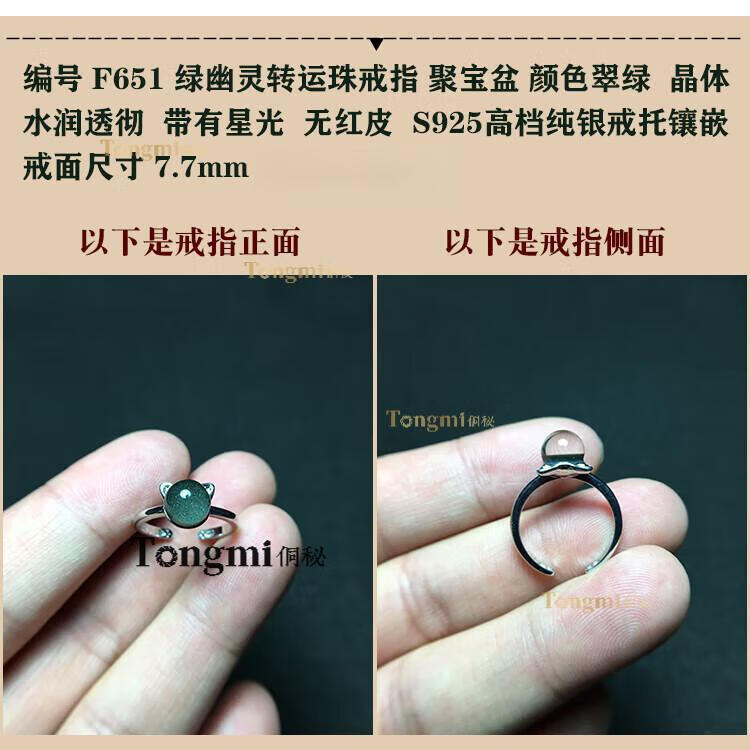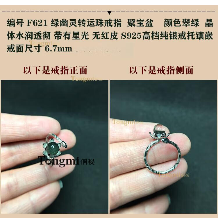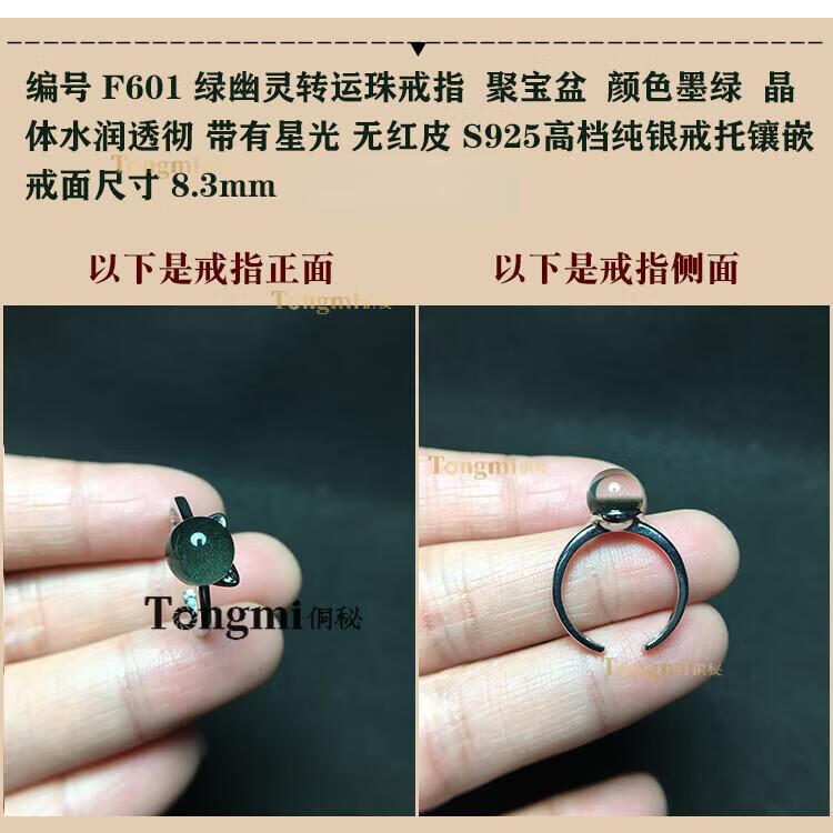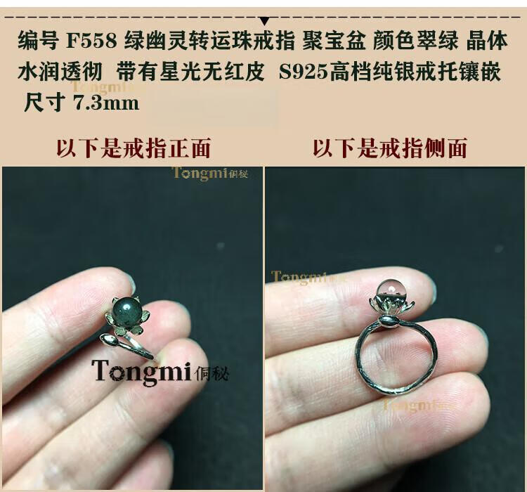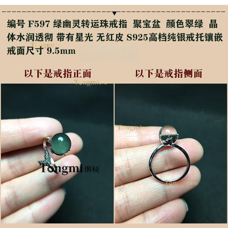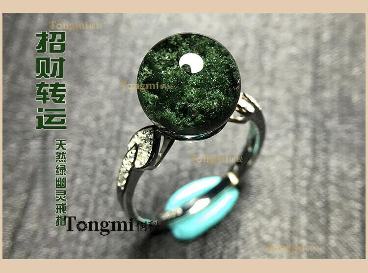 Dong secret natural green ghost ring for women, orphan silver cornucopia of baby's breath, thousands of layers of niche crystal single bead rough stone ring for men F558