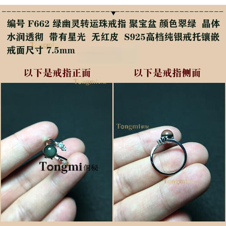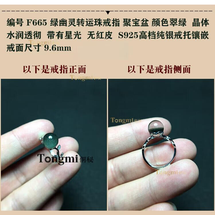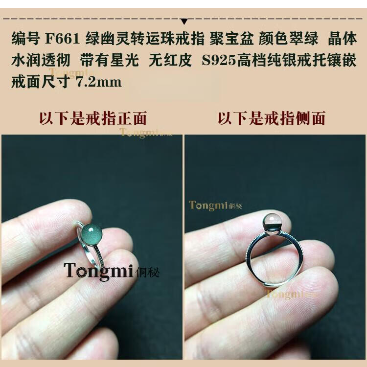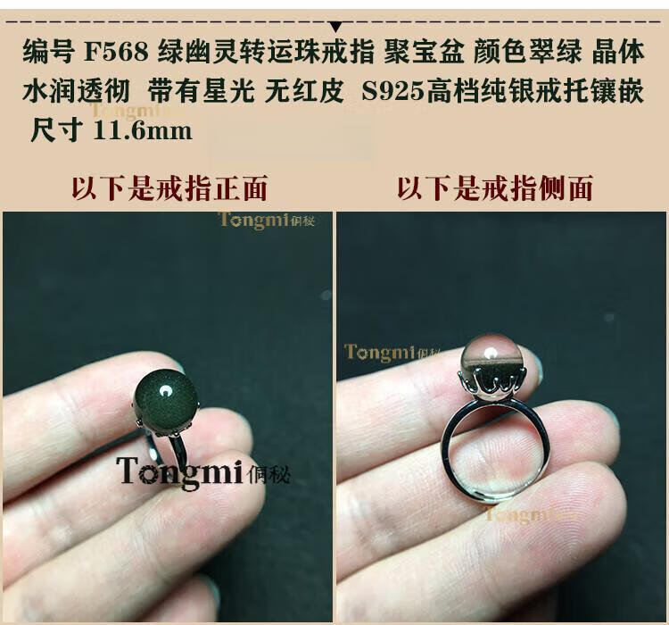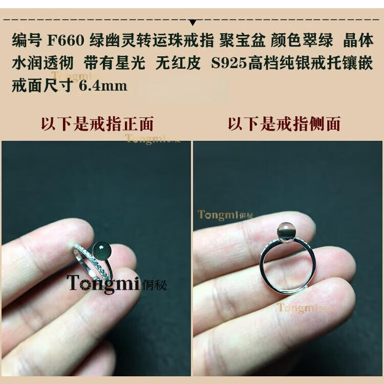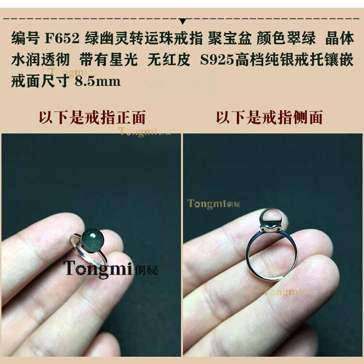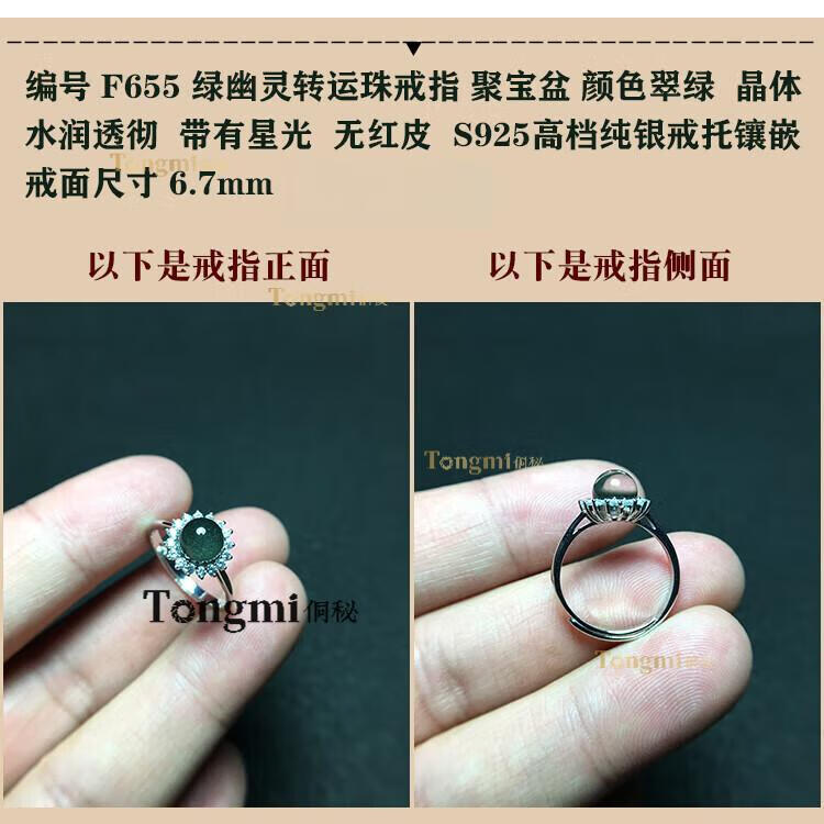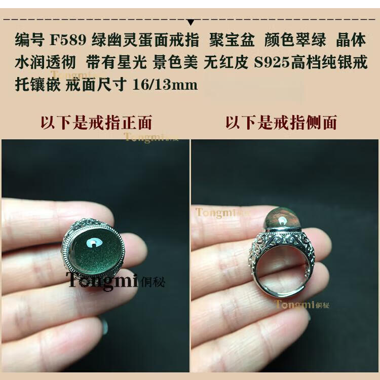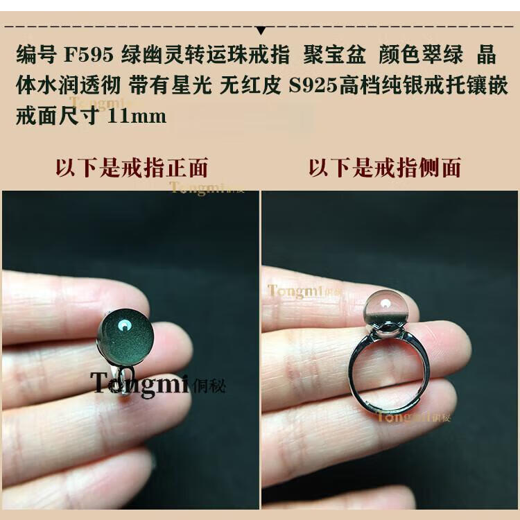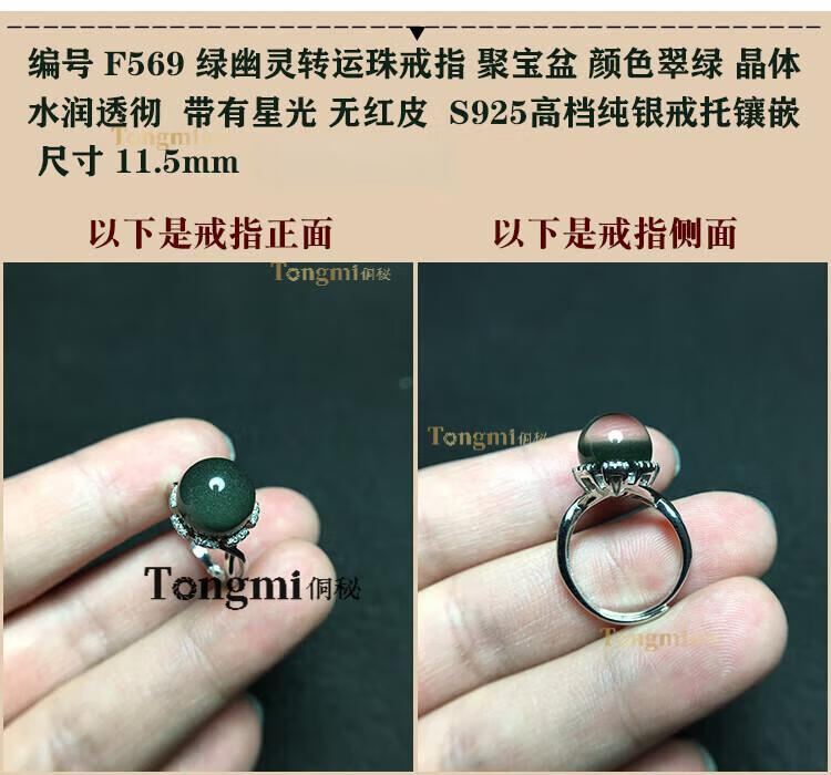 Dong secret natural green ghost ring for women, orphan silver cornucopia of baby's breath, thousands of layers of niche crystal single bead rough stone ring for men F558