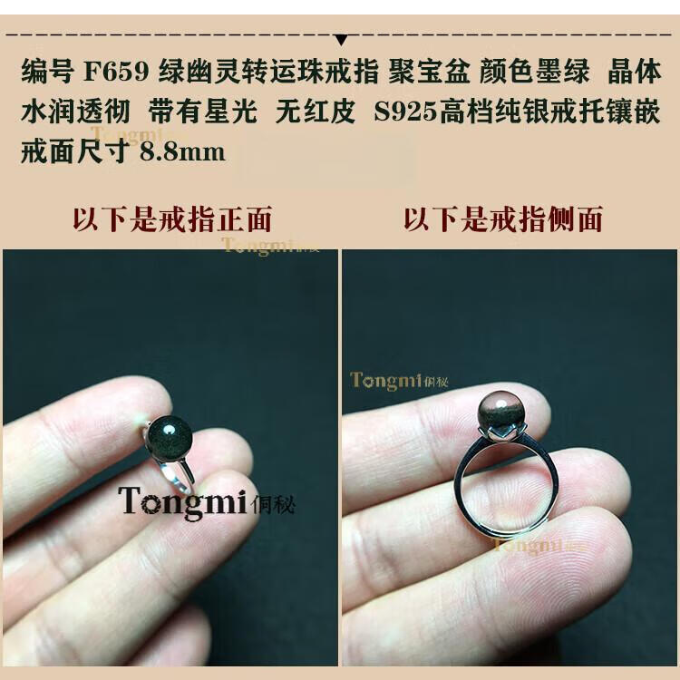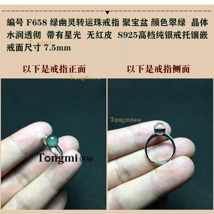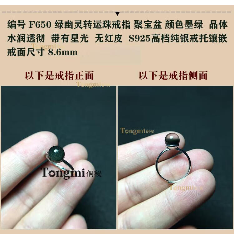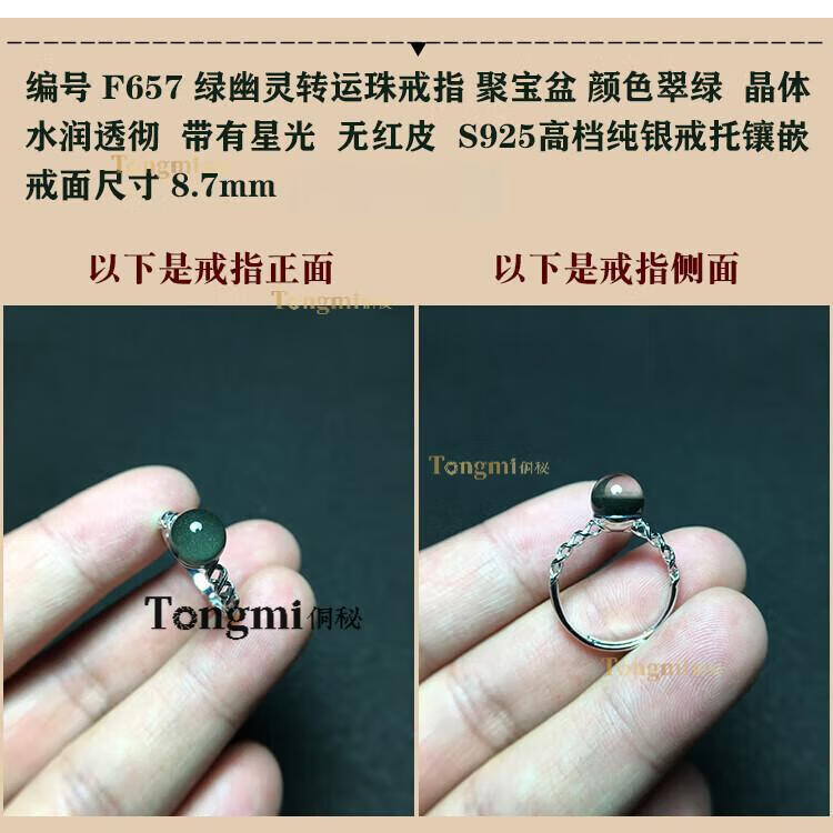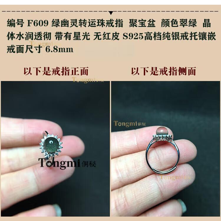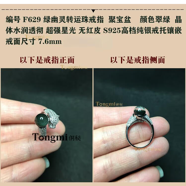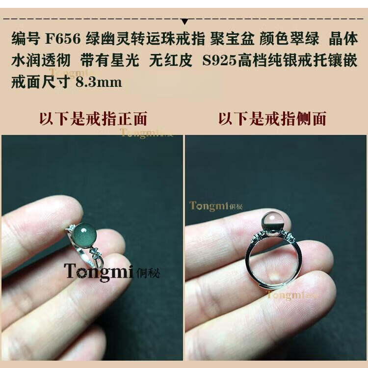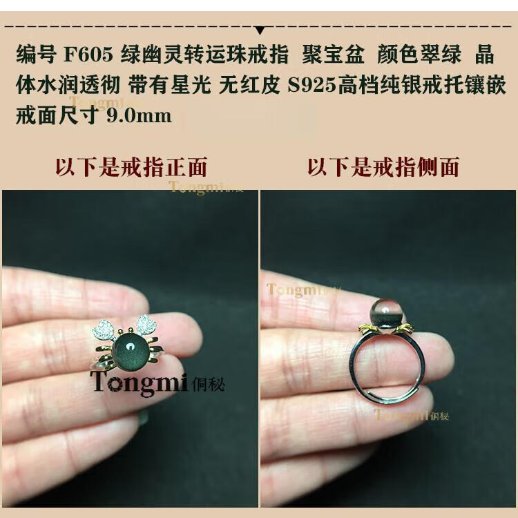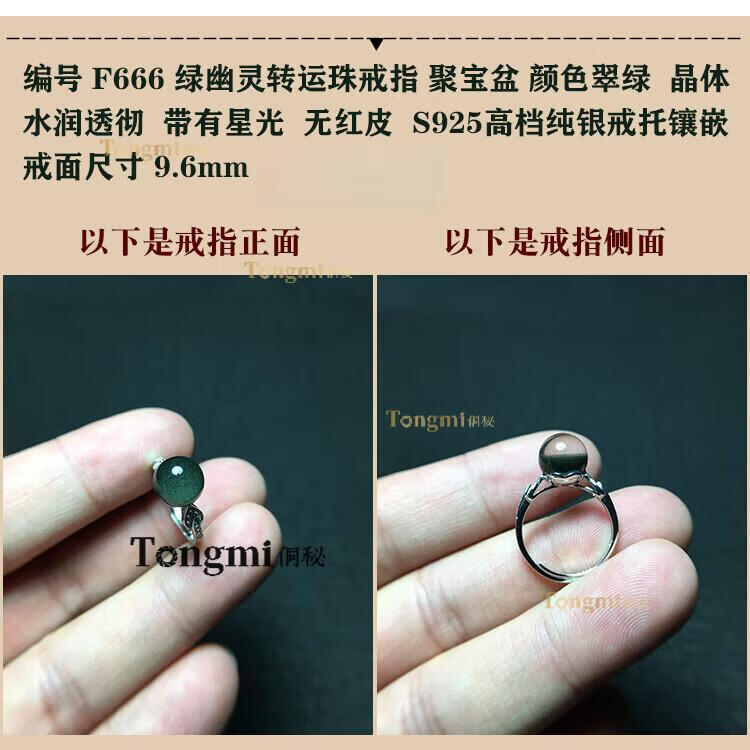 Dong secret natural green ghost ring for women, orphan silver cornucopia of baby's breath, thousands of layers of niche crystal single bead rough stone ring for men F558
