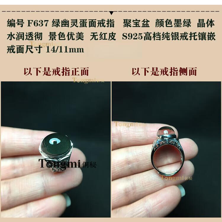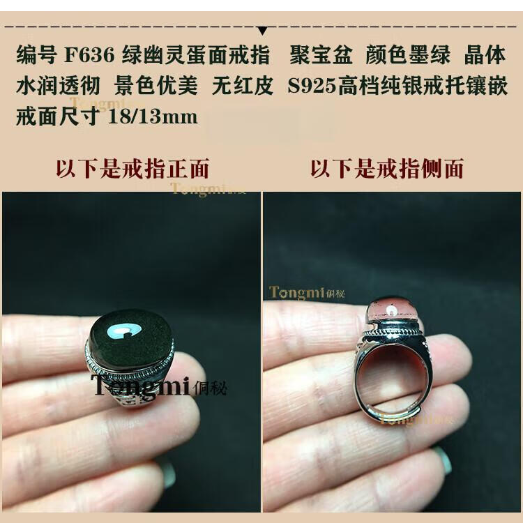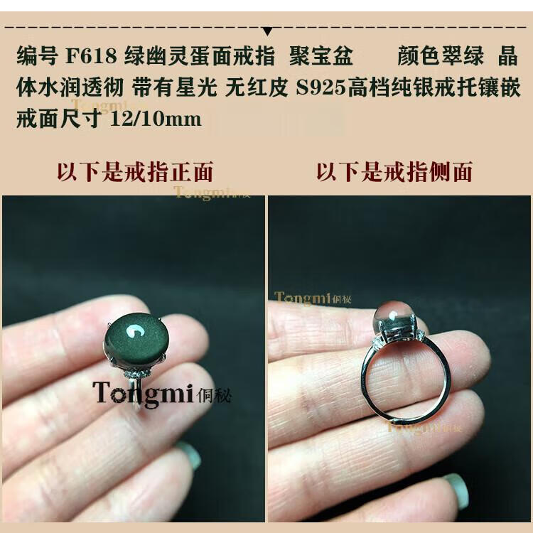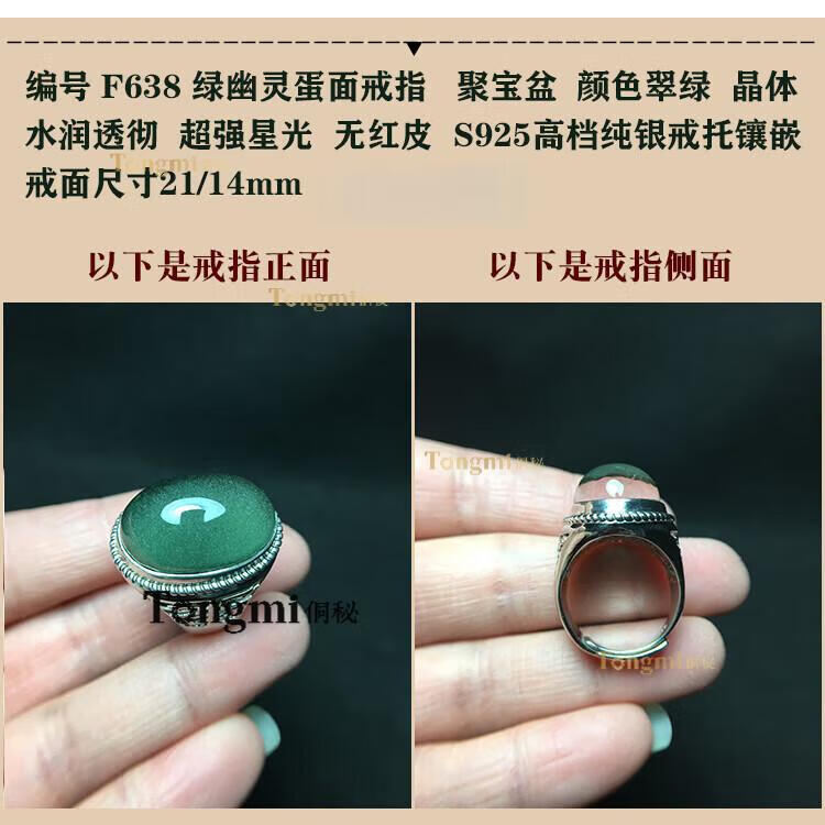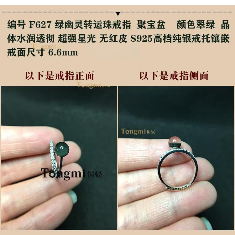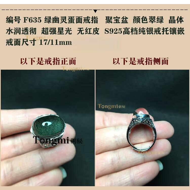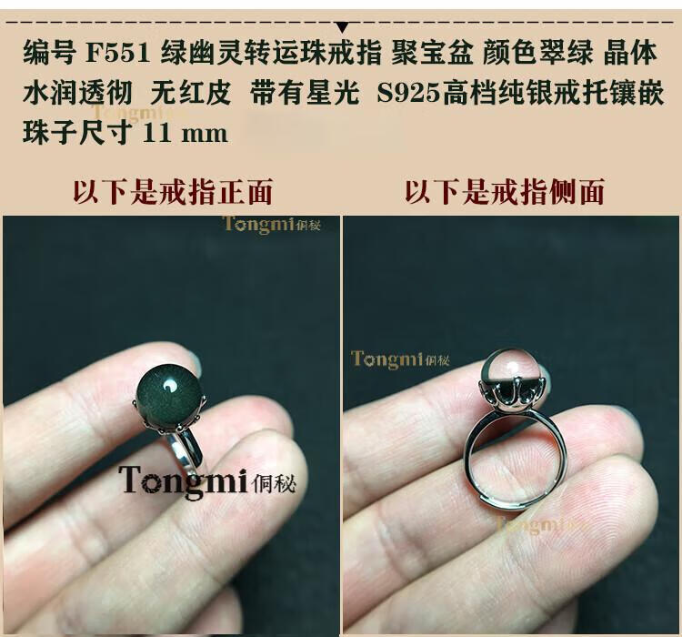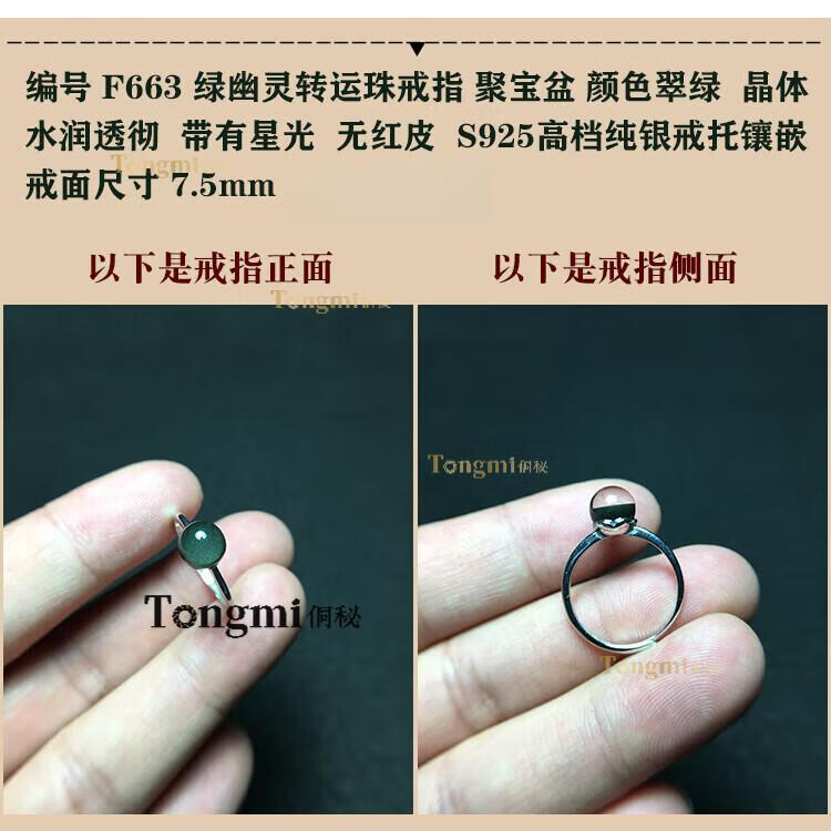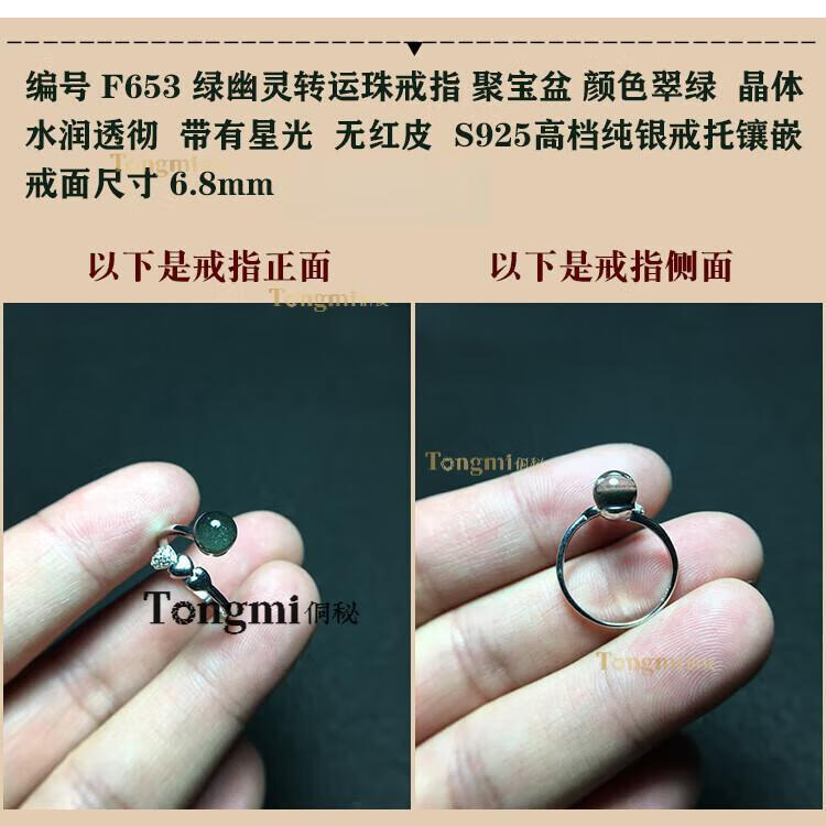 Dong secret natural green ghost ring for women, orphan silver cornucopia of baby's breath, thousands of layers of niche crystal single bead rough stone ring for men F558