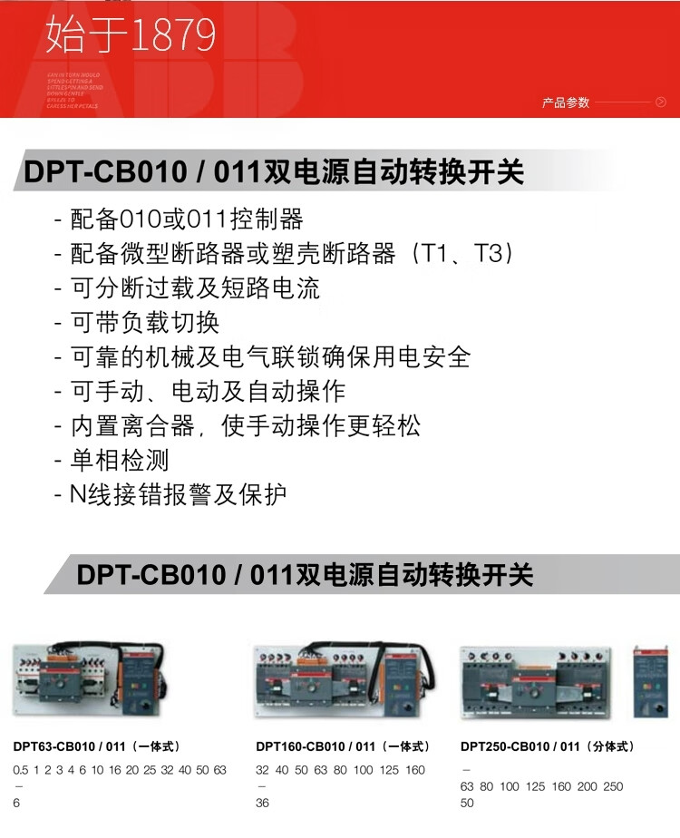 ABB dual power supply DPT-CB010 DPT-CB011 series automatic transfer switch CB level DPT63-CB010C322P