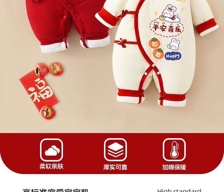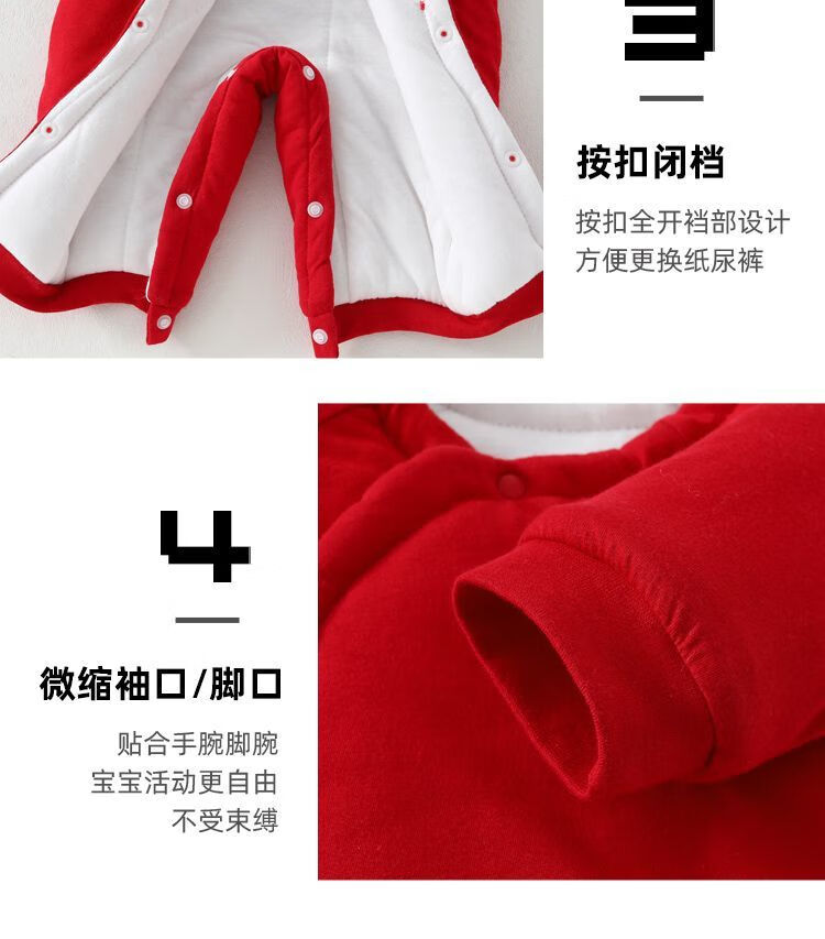 G.duck red festive cotton jumpsuit newborn clothes winter full-month baby cotton long-sleeved baby clothes for 100 days red peace and joy 5 hooded socks 56cm 59 suitable for height 52- 7-12Jin Jin is equal to 0.5 kg