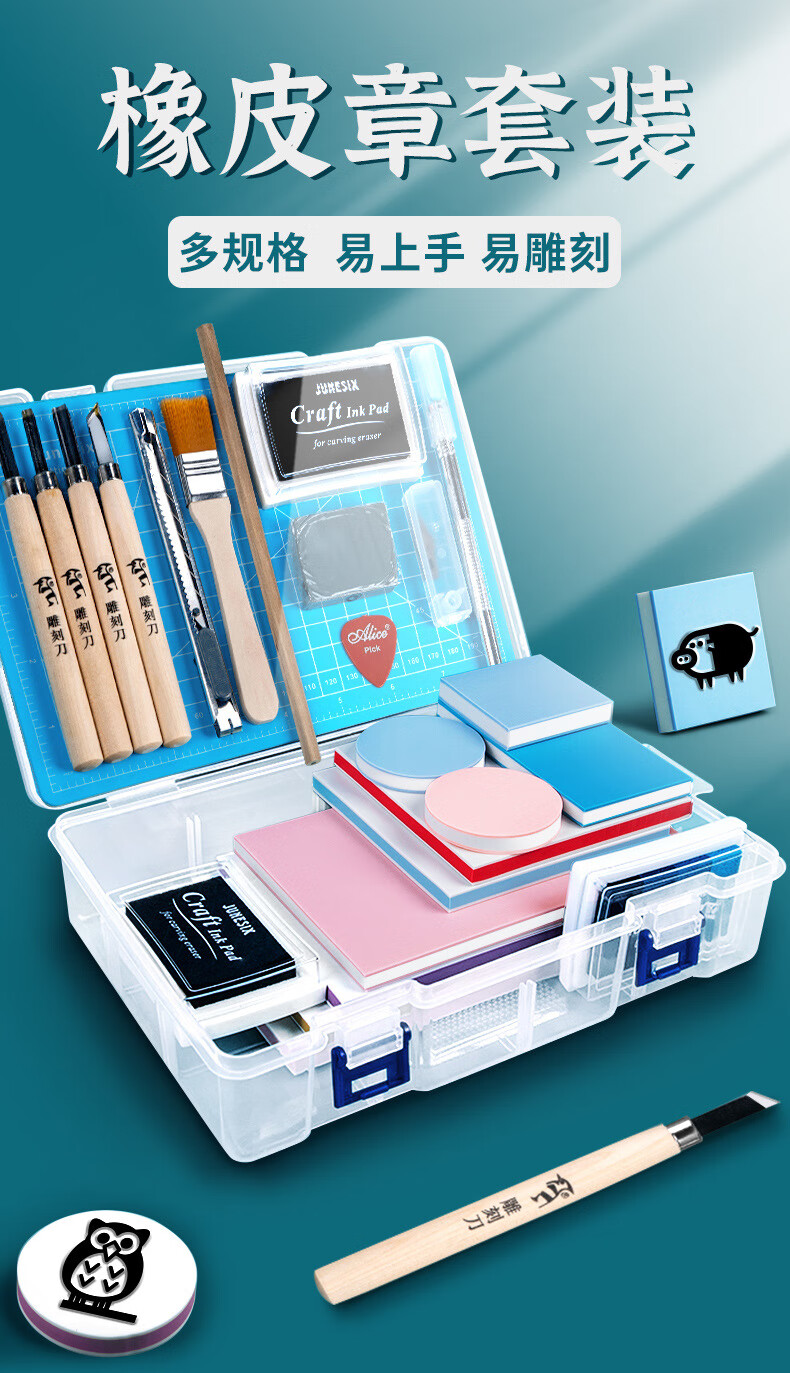 Rubber stamp engraving set for beginners, handmade diy transfer water material, art sulfuric acid paper printmaking seal mud, commonly recommended 16-piece set 16-piece set (activity type)