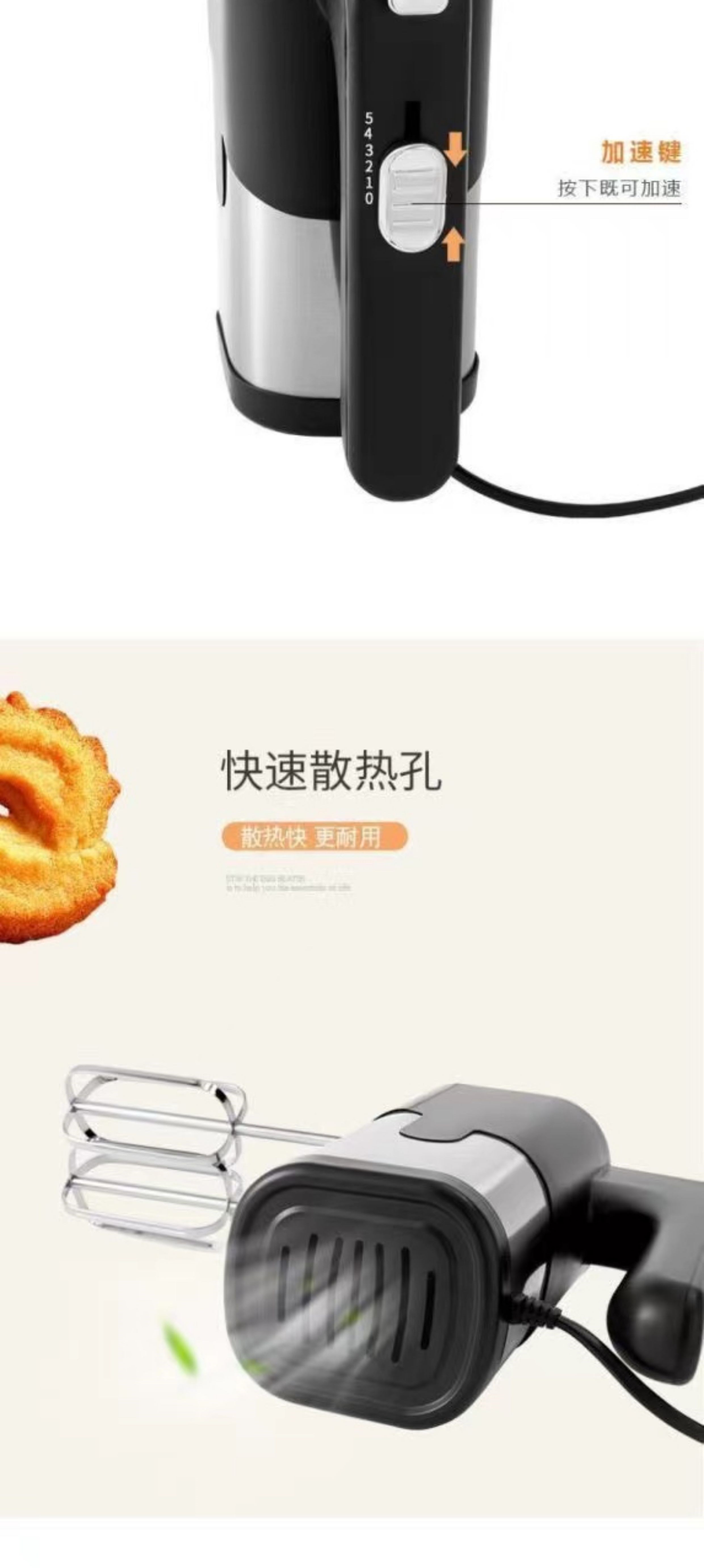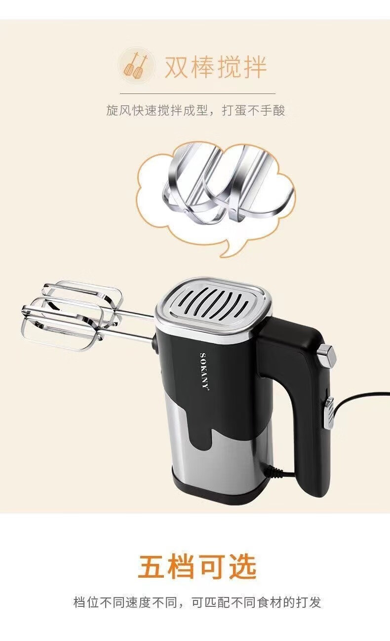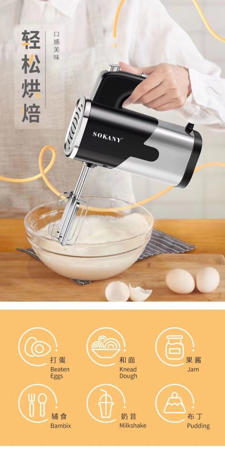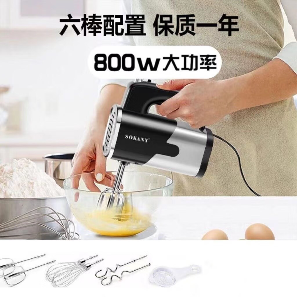 Tuojin 800W egg beater high-power electric household baking small hand-held cream and dough mixing whisk commercial export European standard 800W high power with four stick heads