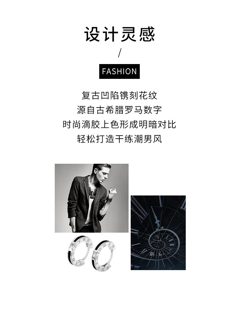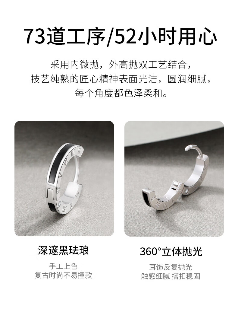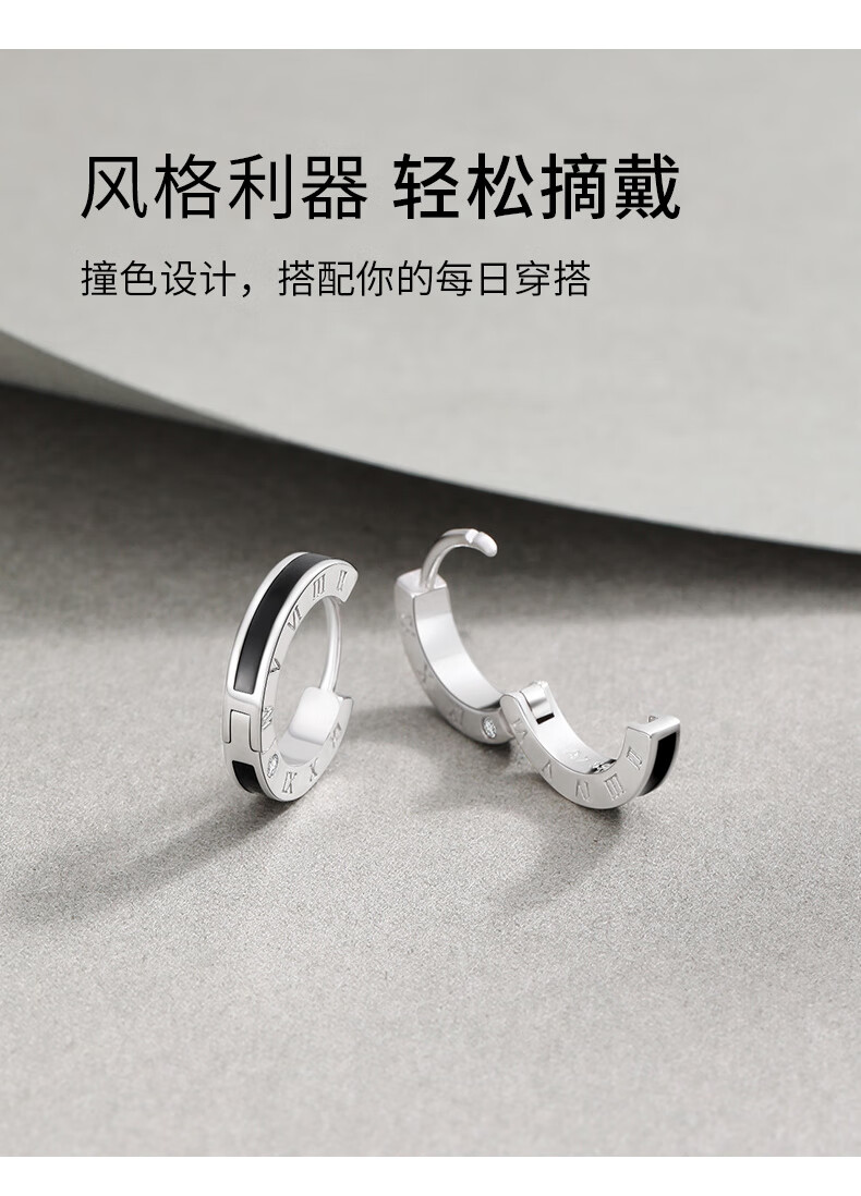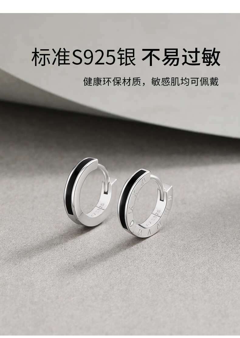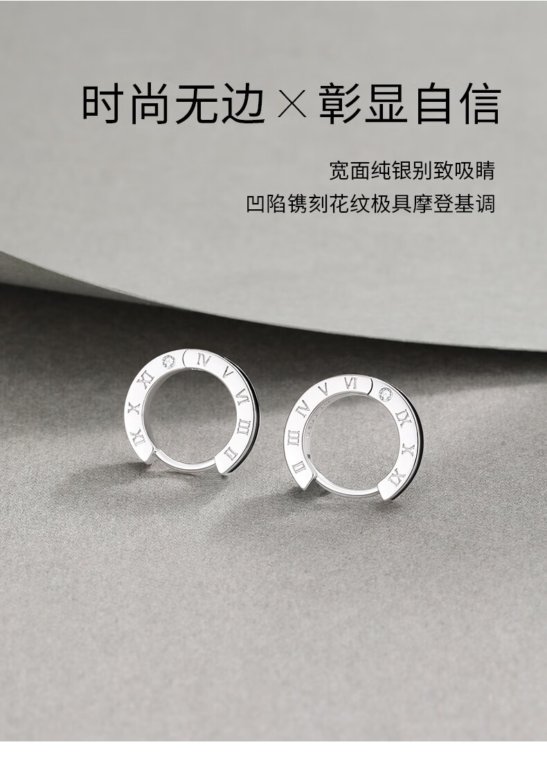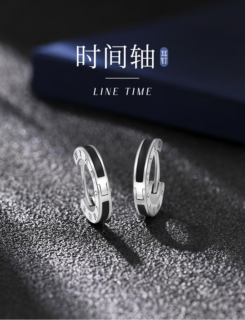 China Gold S925 Silver Roman Timeline Stud Earrings Men's Trendy Fashion Single Earring Practical Birthday Gift for Boyfriend Roman Timeline Earrings Brand Gift Box Display