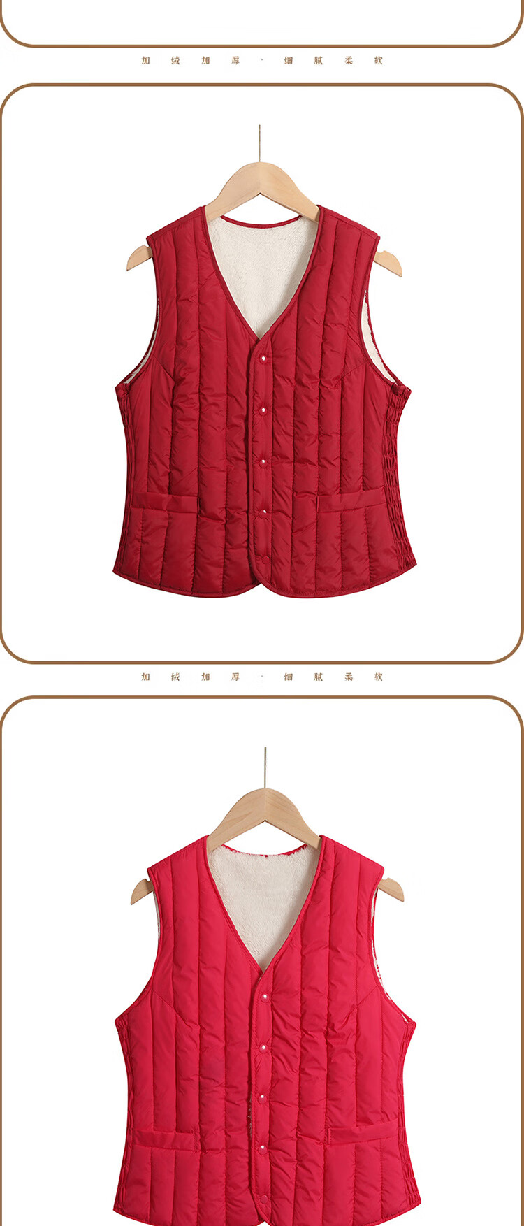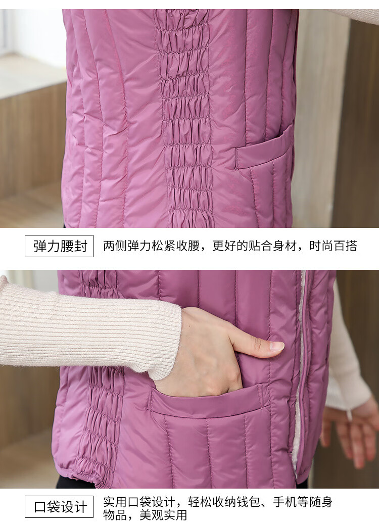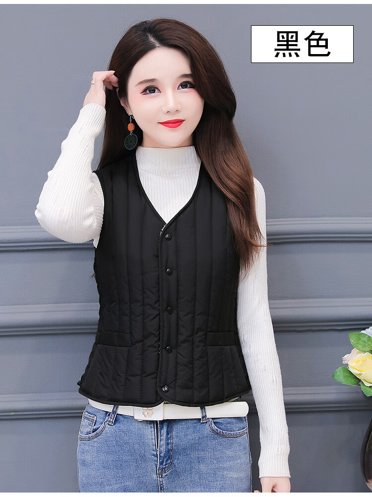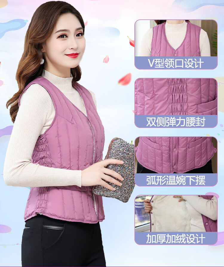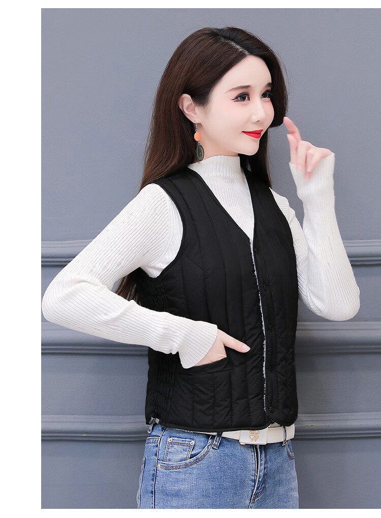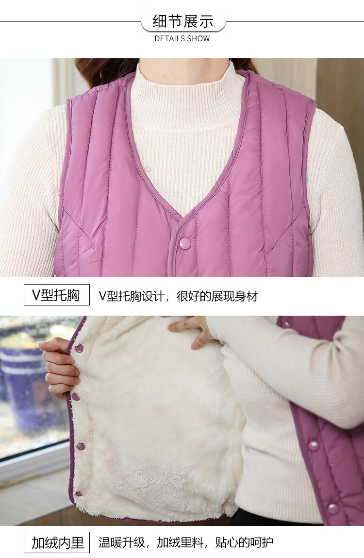 Woodpecker 2025 New Autumn and Winter Down Cotton Vest Women's Plush Warm Vest Short Middle-aged and Elderly Vest Slim Liner Black XL Recommended 95-105Jin Jin equals 0.5 kg