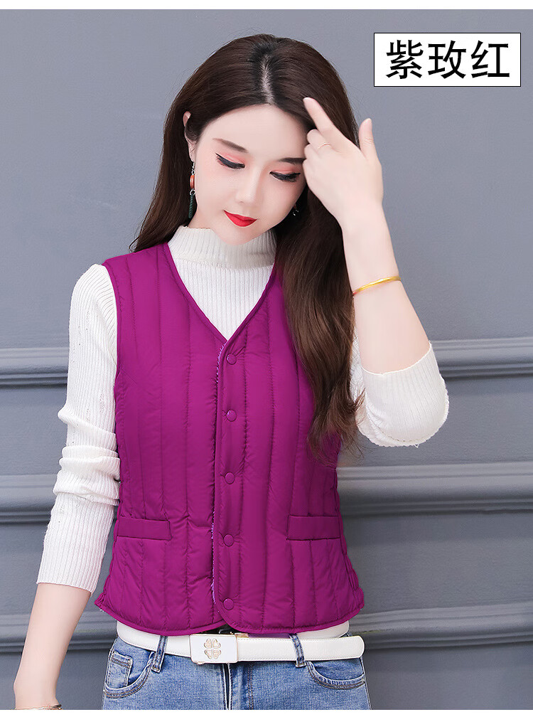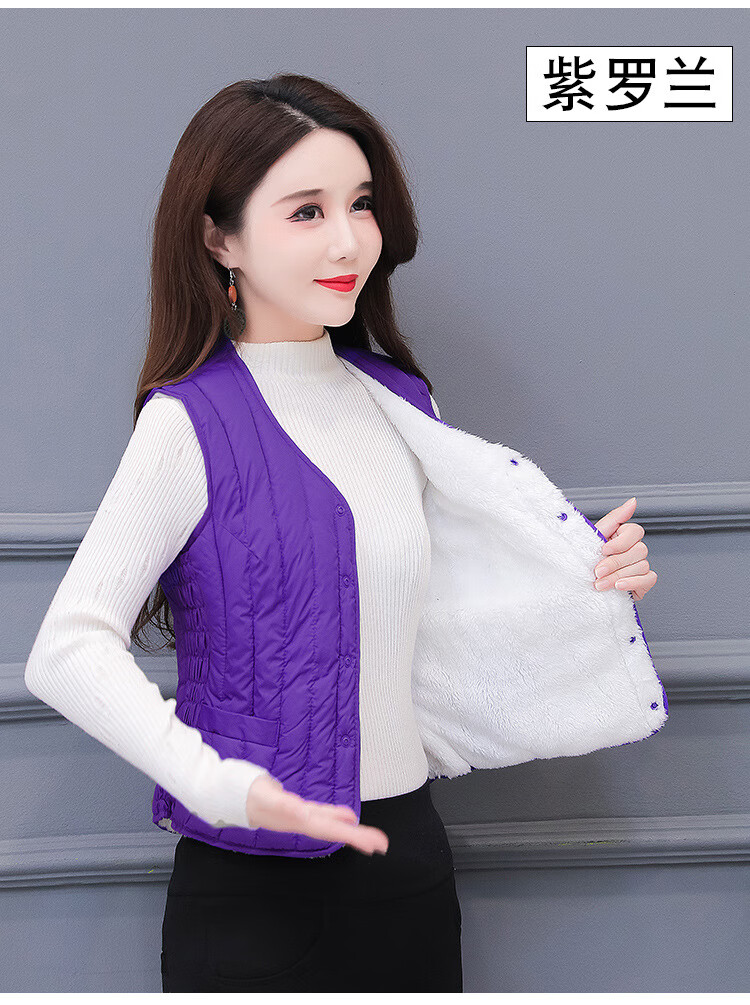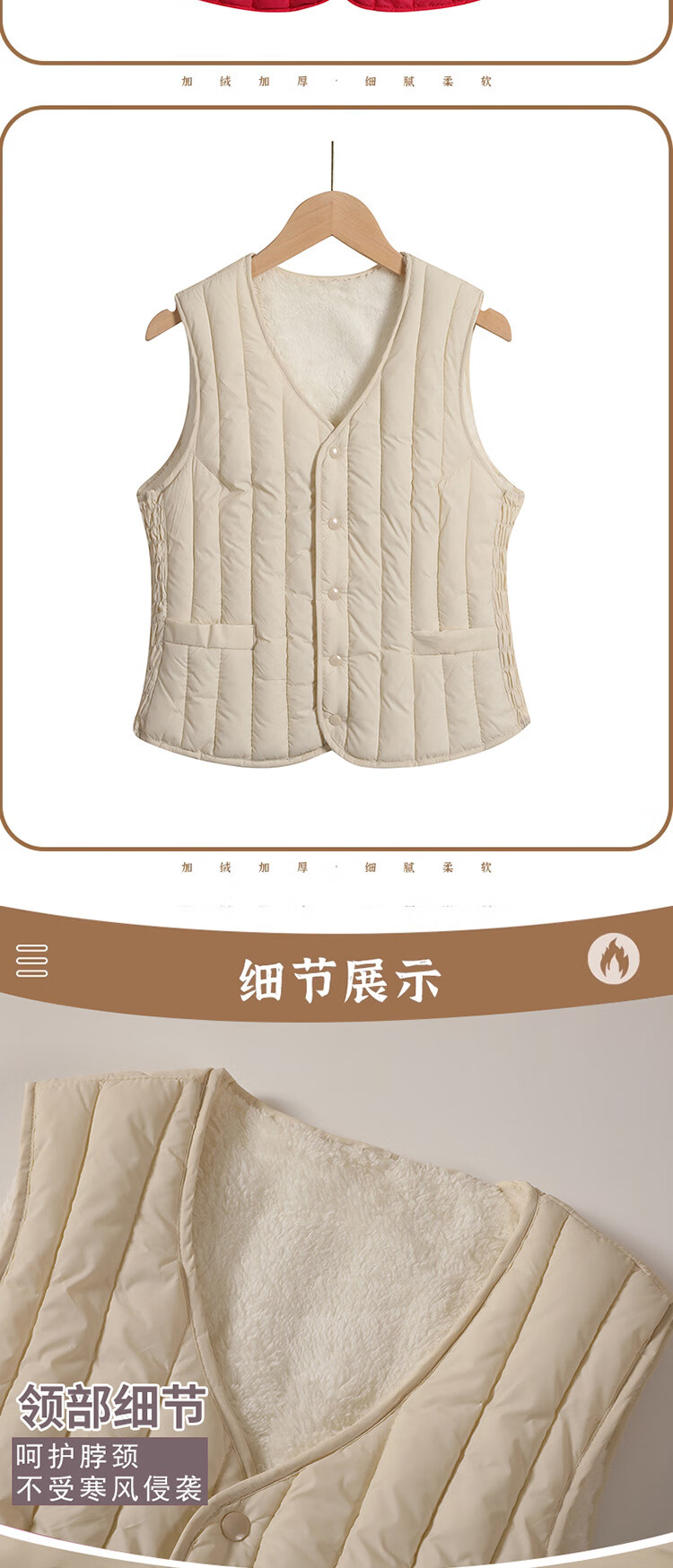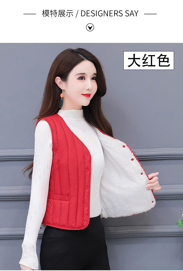 Woodpecker 2025 New Autumn and Winter Down Cotton Vest Women's Plush Warm Vest Short Middle-aged and Elderly Vest Slim Liner Black XL Recommended 95-105Jin Jin equals 0.5 kg