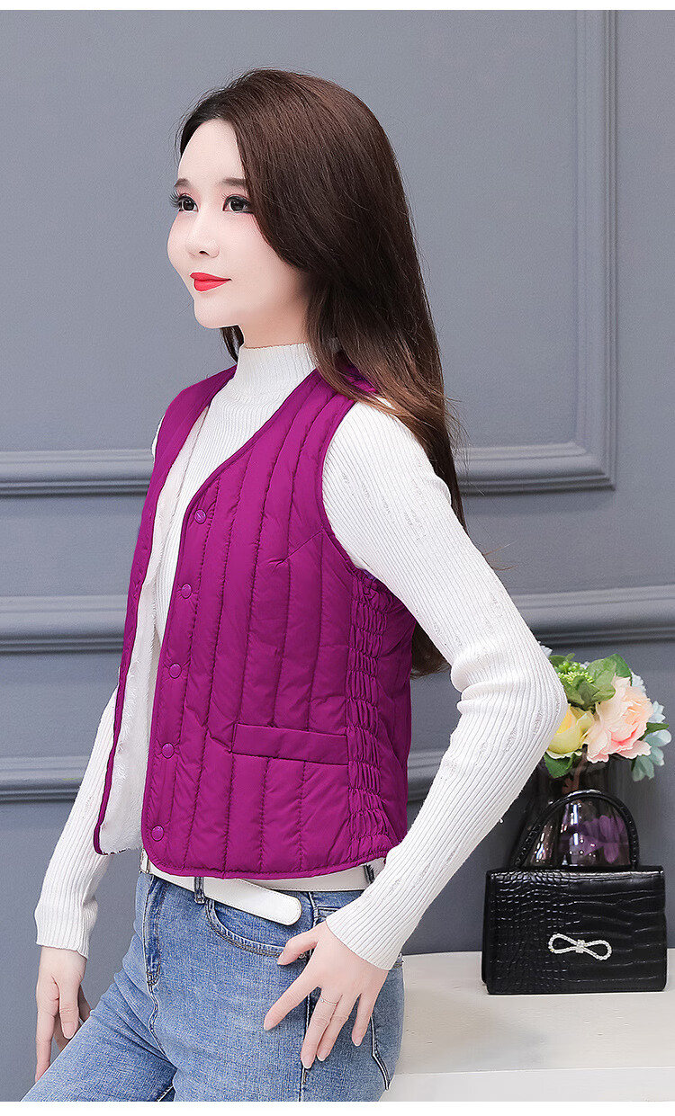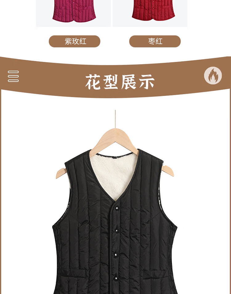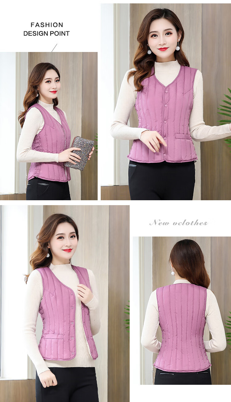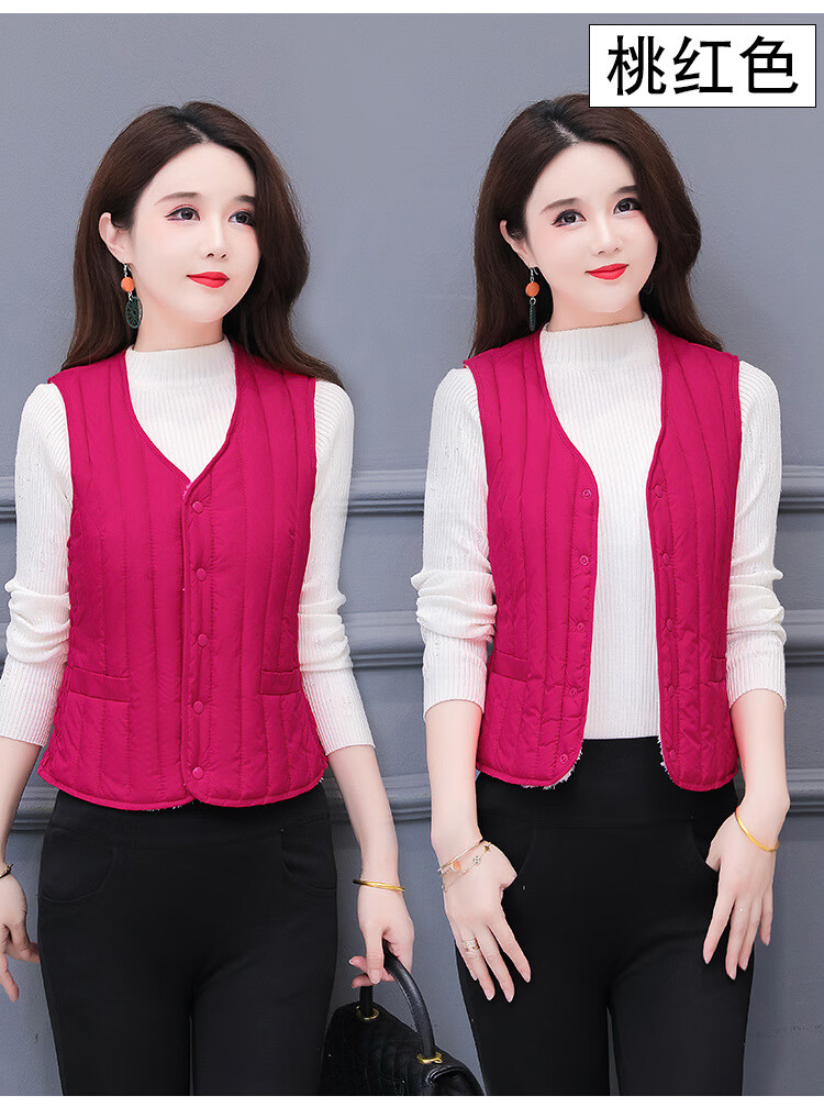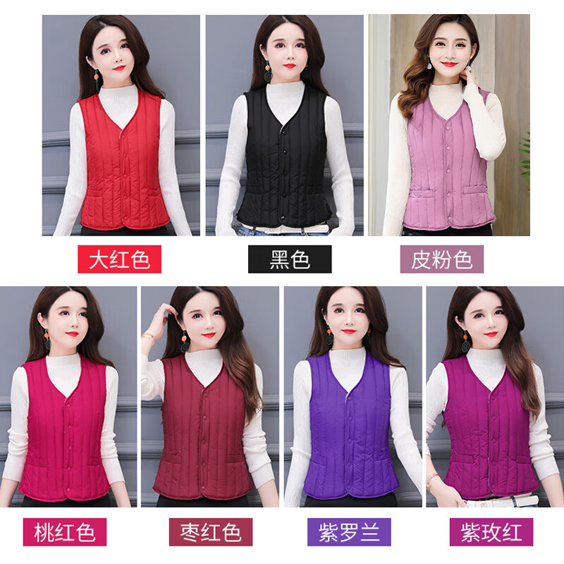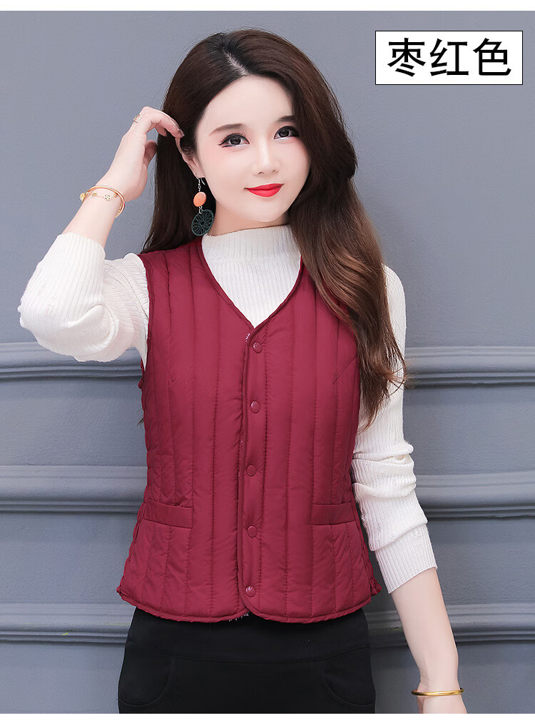 Woodpecker 2025 New Autumn and Winter Down Cotton Vest Women's Plush Warm Vest Short Middle-aged and Elderly Vest Slim Liner Black XL Recommended 95-105Jin Jin equals 0.5 kg