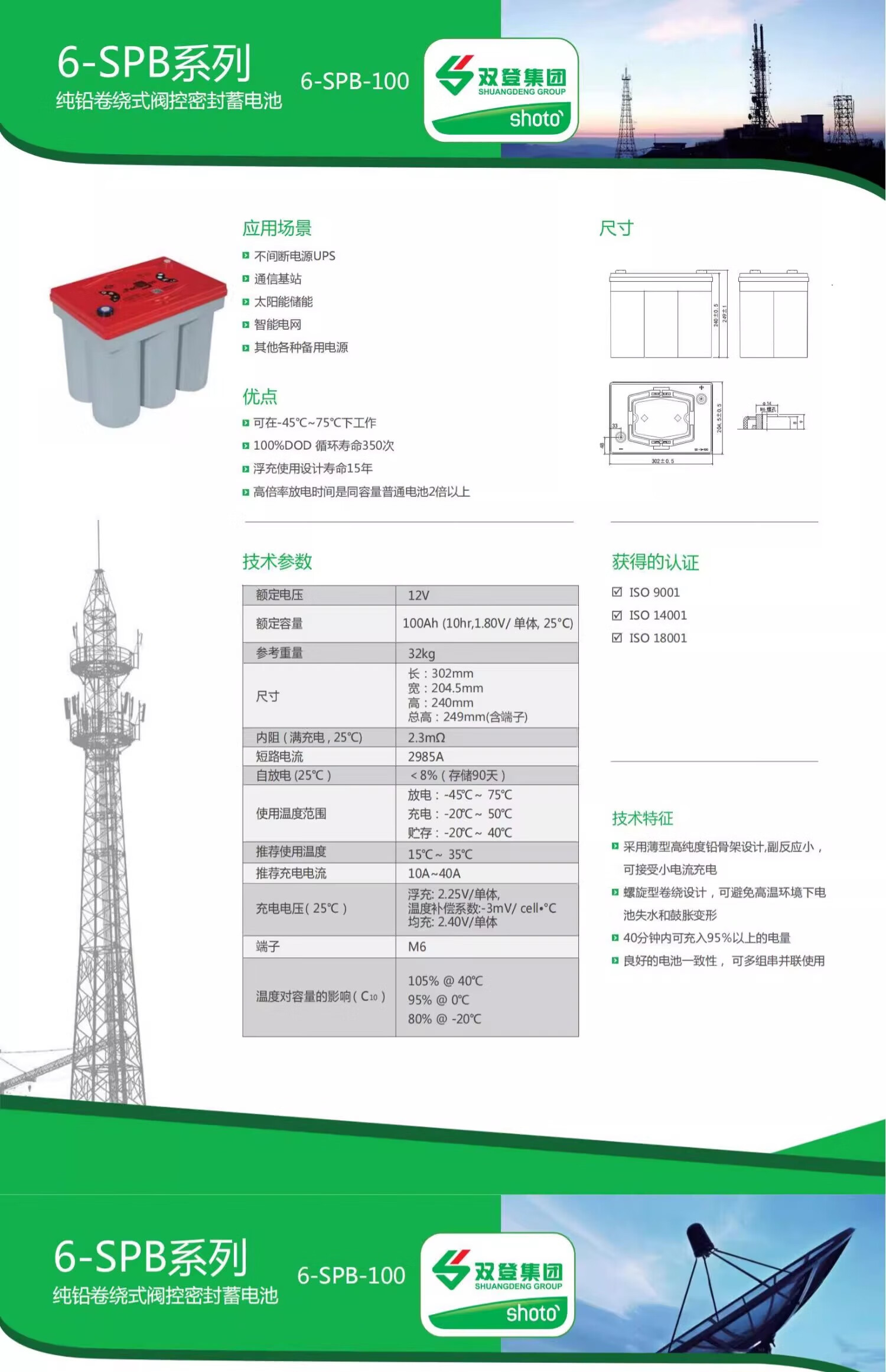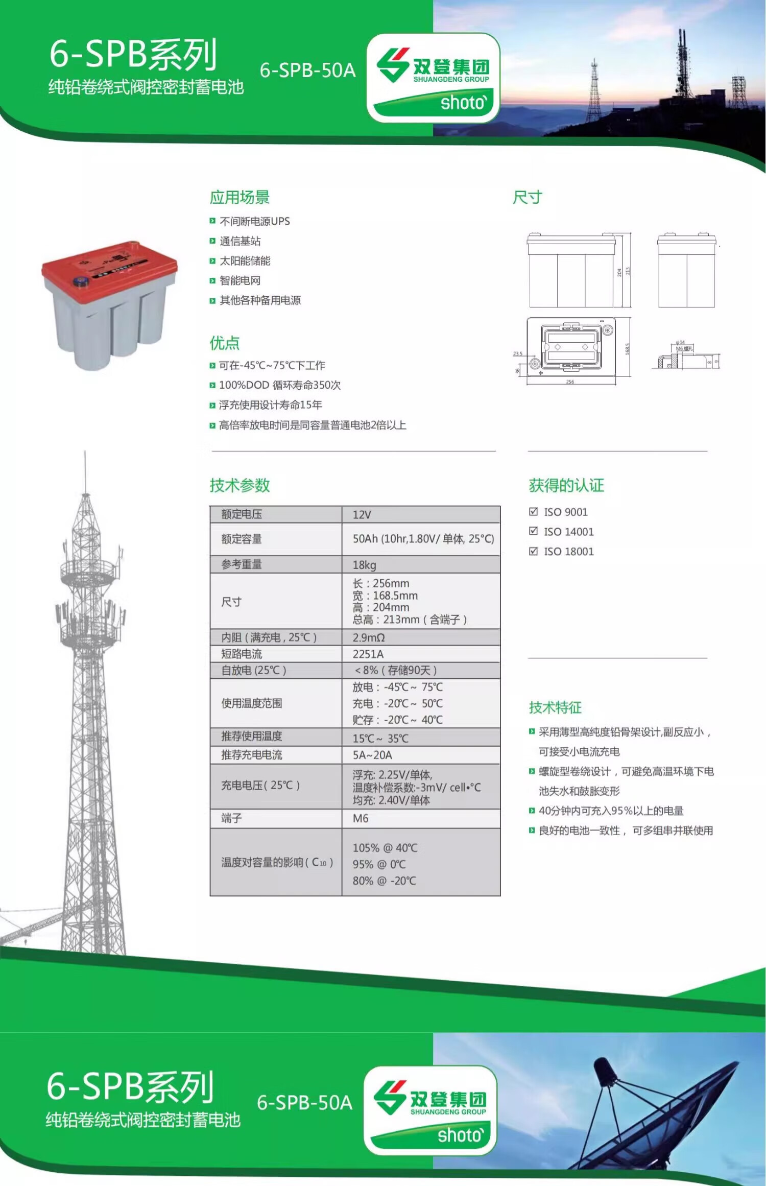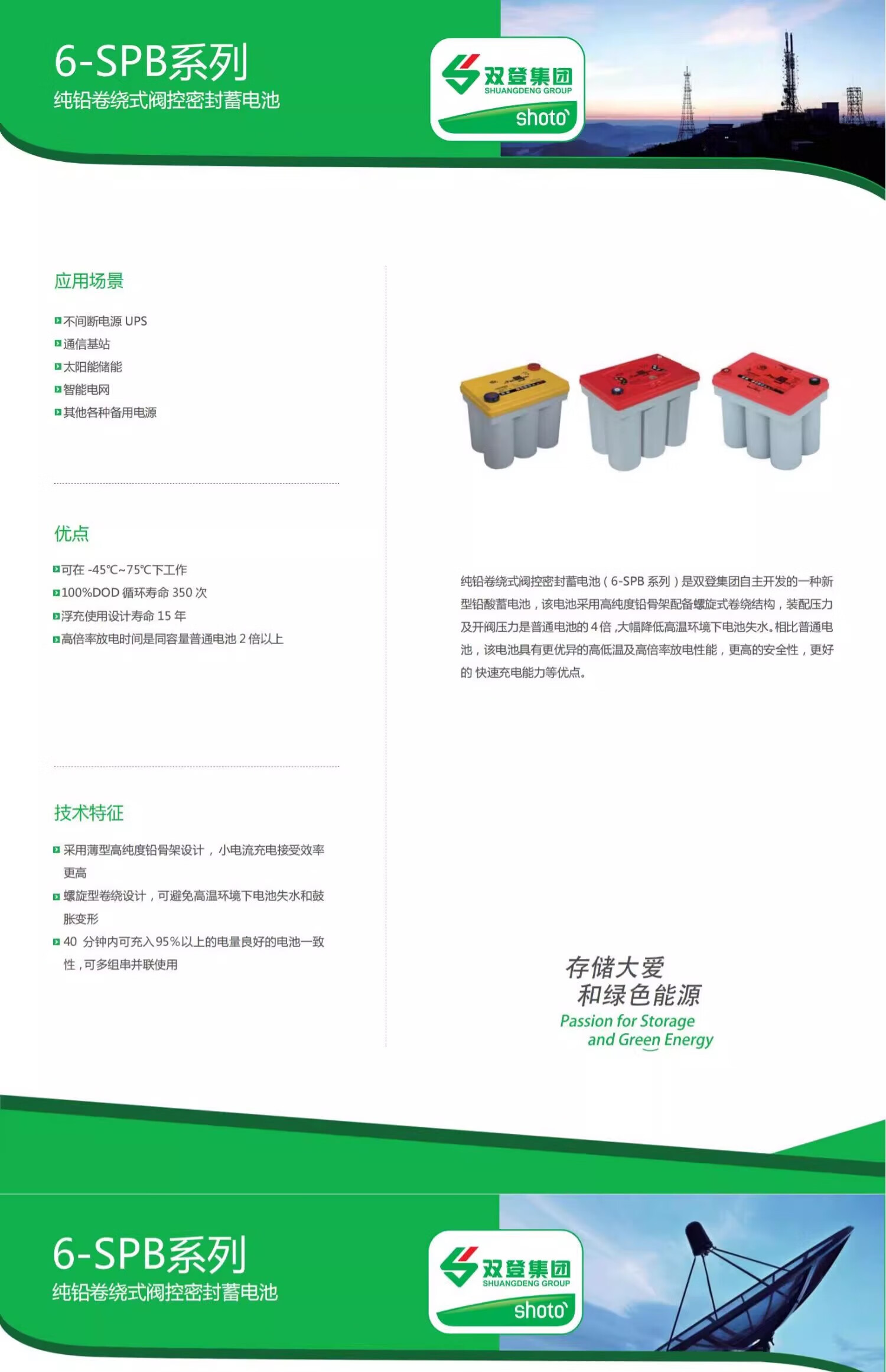 双登卷绕蓄电池12V启动储能两用6-SPB-25/40/50/75/100AH免维护耐低温 6-SPB-50B铅端子12V55AH