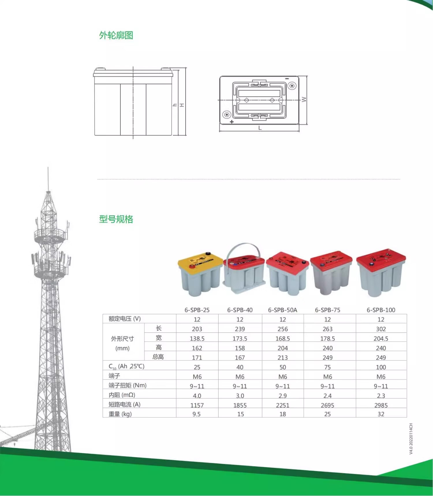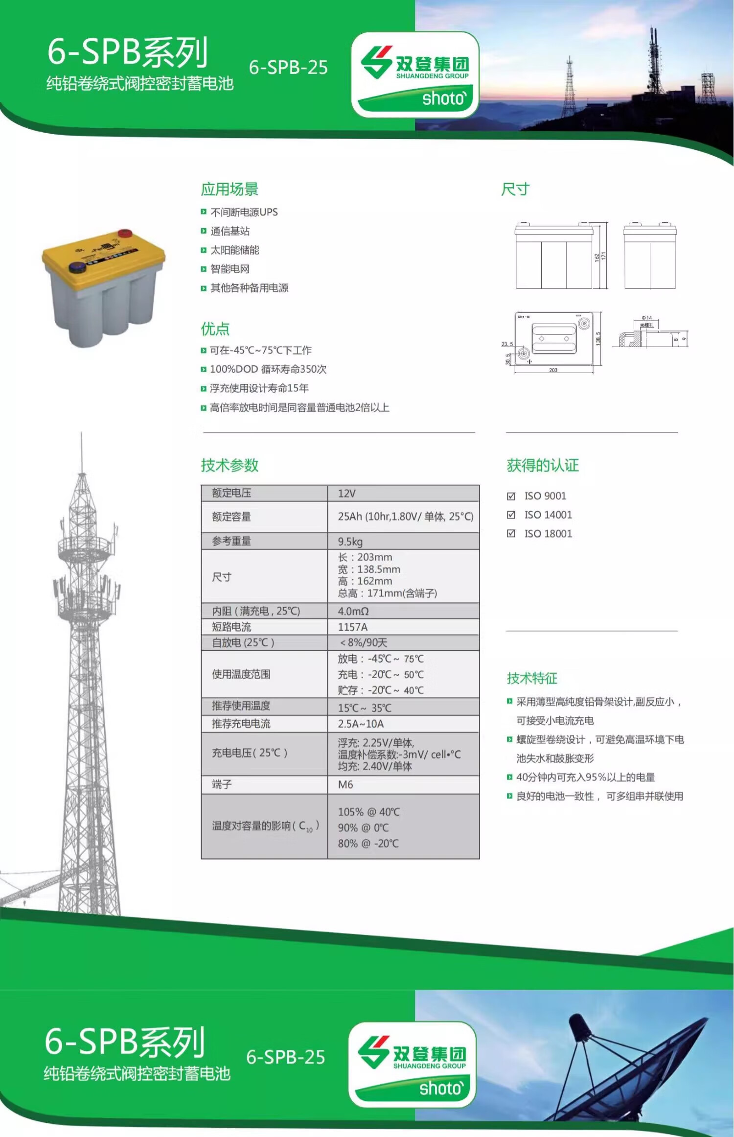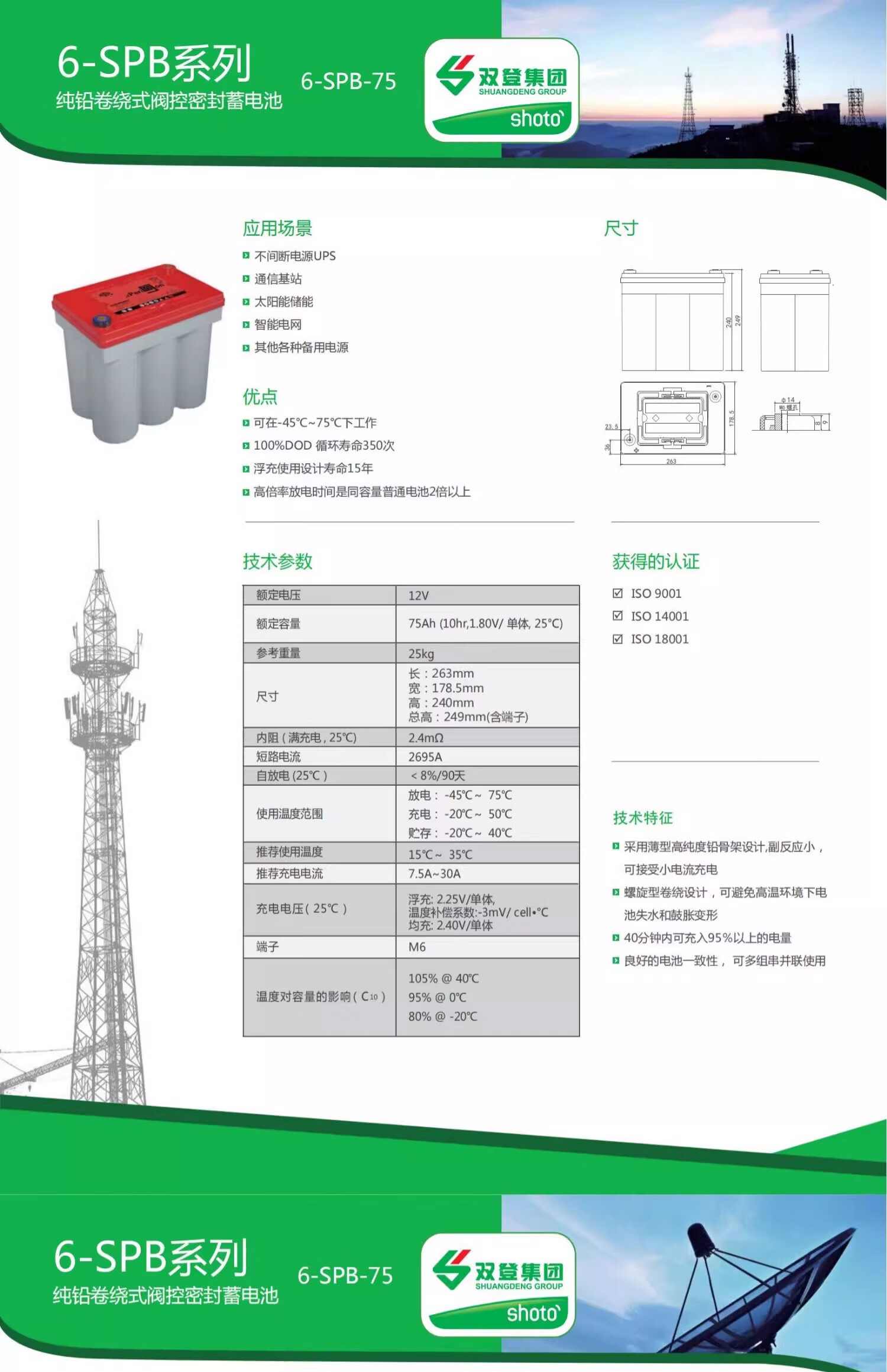 双登卷绕蓄电池12V启动储能两用6-SPB-25/40/50/75/100AH免维护耐低温 6-SPB-50B铅端子12V55AH