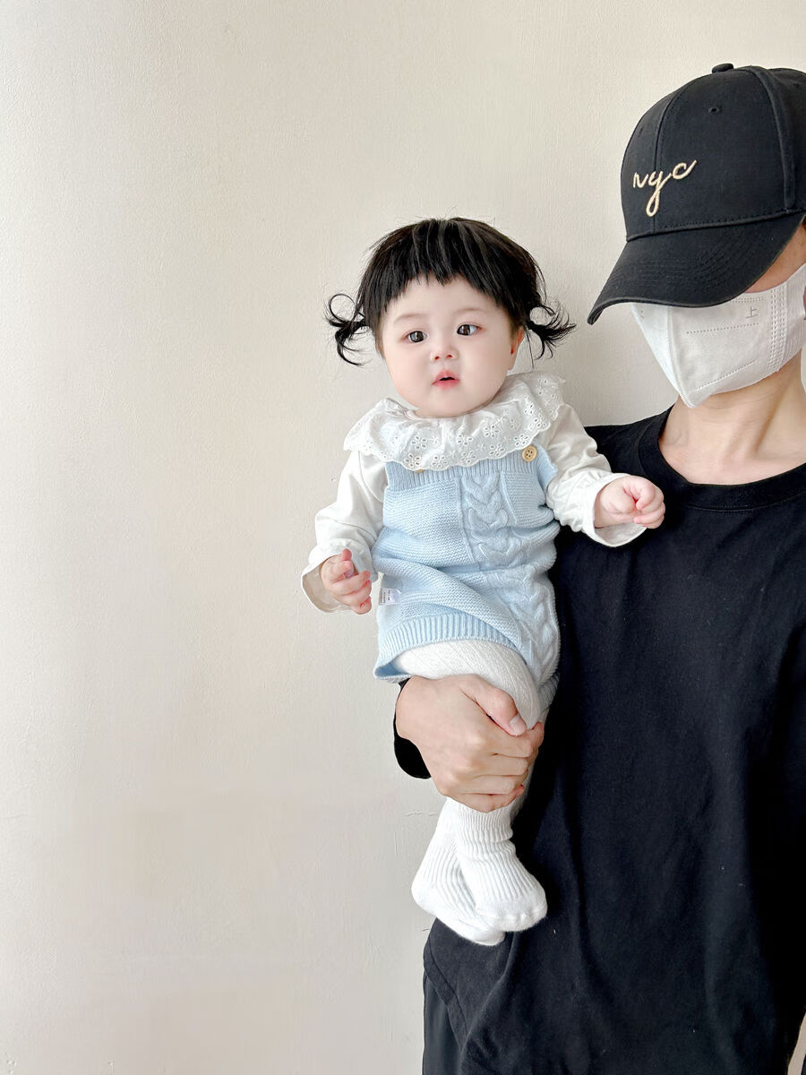 Wujiang Miaopin Baby Onesie, Cute and Super Cute overalls, bag and fart suit for baby girl, knitted cable-knitted sweater, blue cable-knitted jacket, 66cm 66cm* about 1-4 months, 10-14Jin Jin is equal to 0.5kg