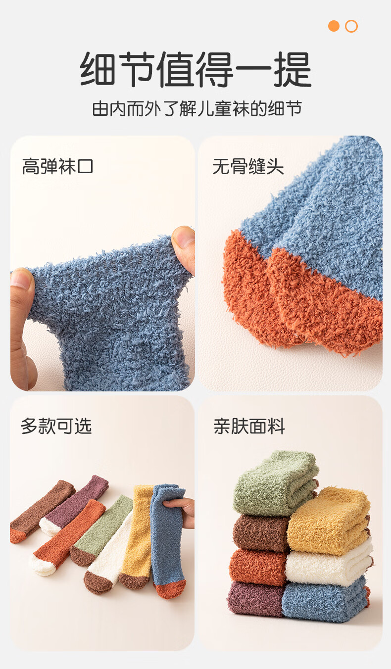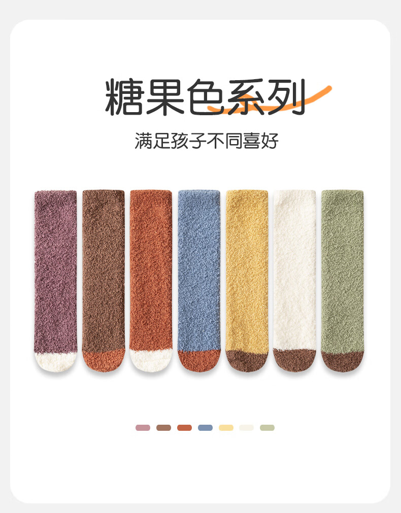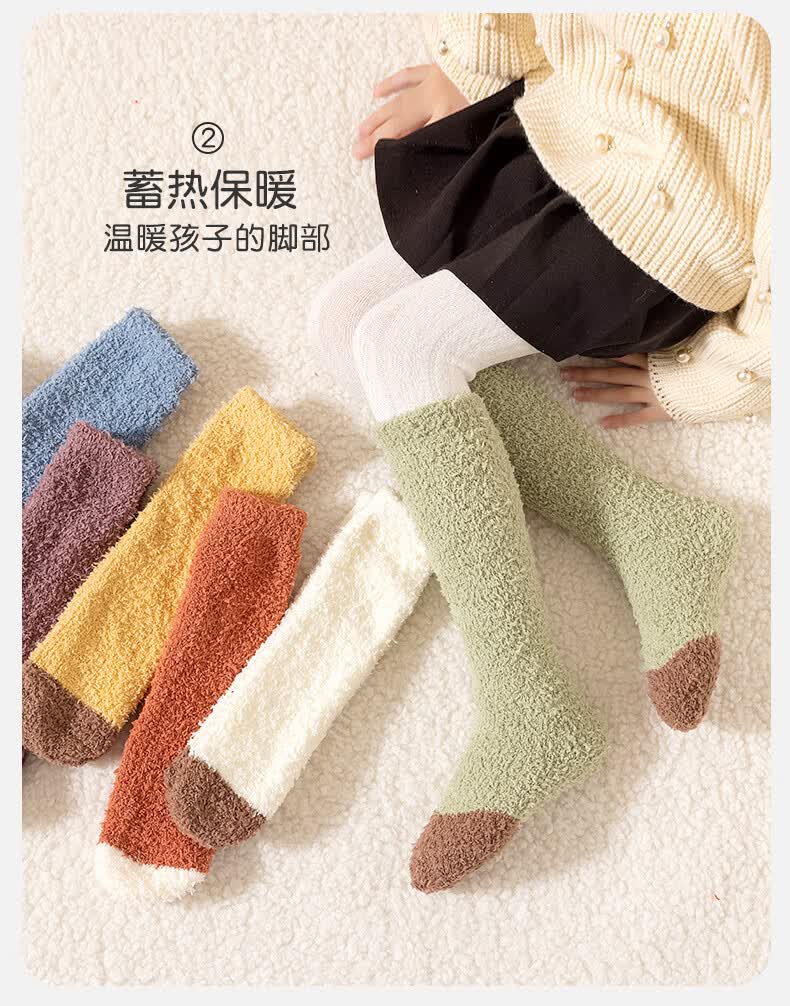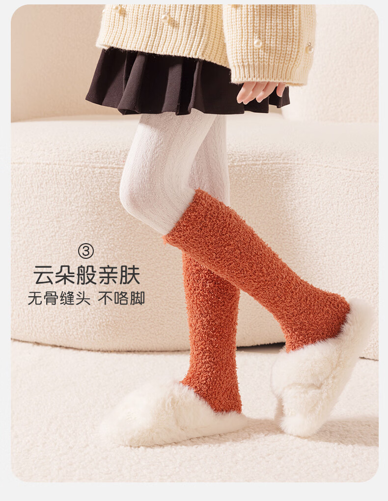 儿童秋冬长筒袜子男童女童珊瑚绒过膝加厚保暖护腿袜睡眠袜 咖色拼色 均码 均码3-15岁