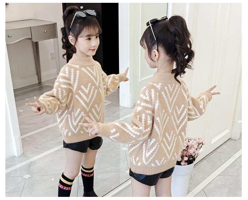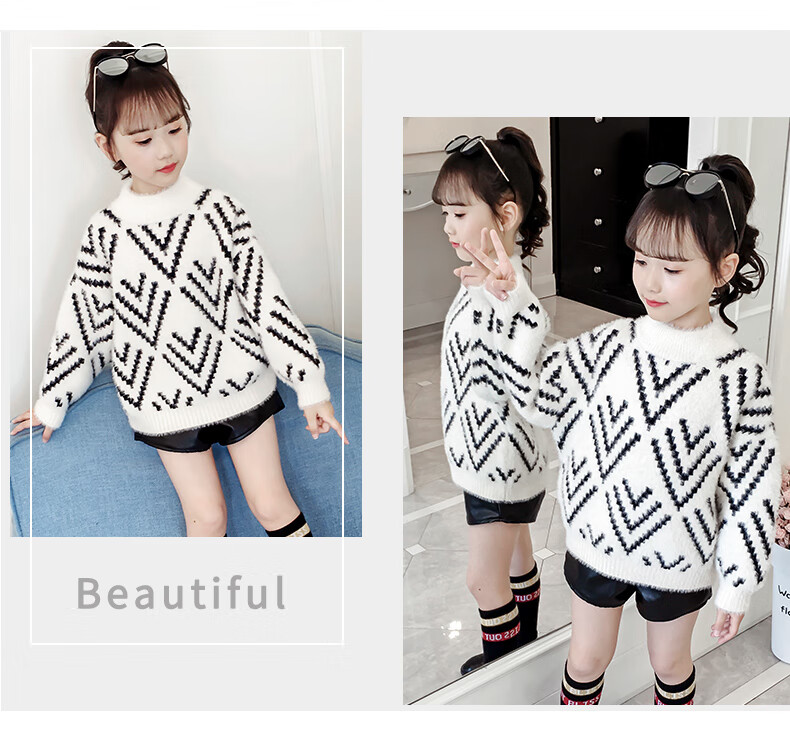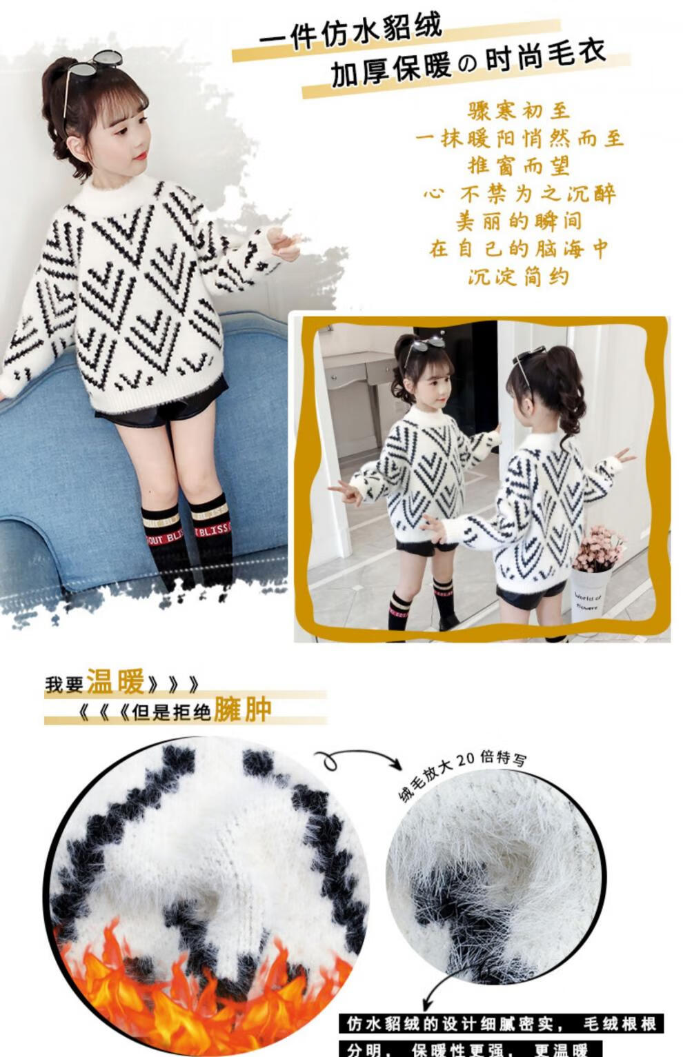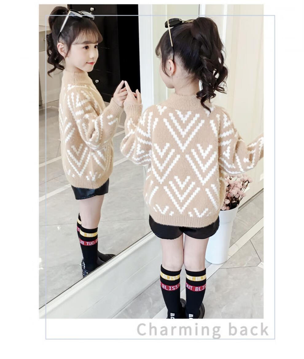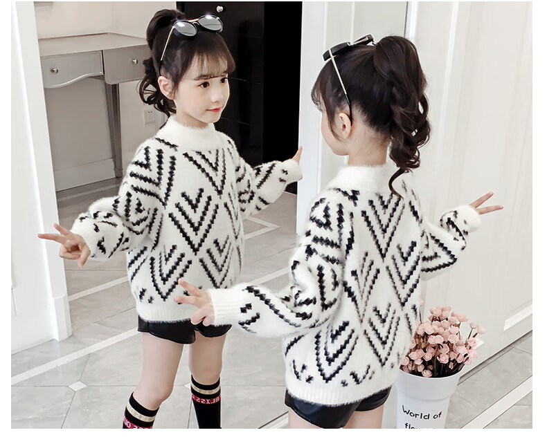 Jingkodi Japanese winter girls sweater 2025 new autumn and winter clothing, fashionable children's clothing, big children's winter plus off-white 110 cm
